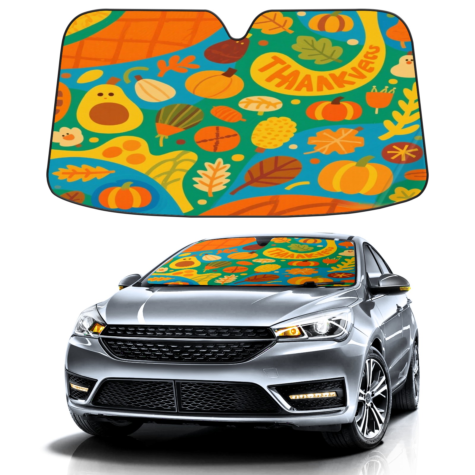 Foldable Aluminum Foil Polyester Car Sunshade Pad | 99% Heat Insulation & Sun Protection | Transparent Number Pocket | Lightweight & Portable | Fits Cars/SUVs/Trucks 13392790200321101