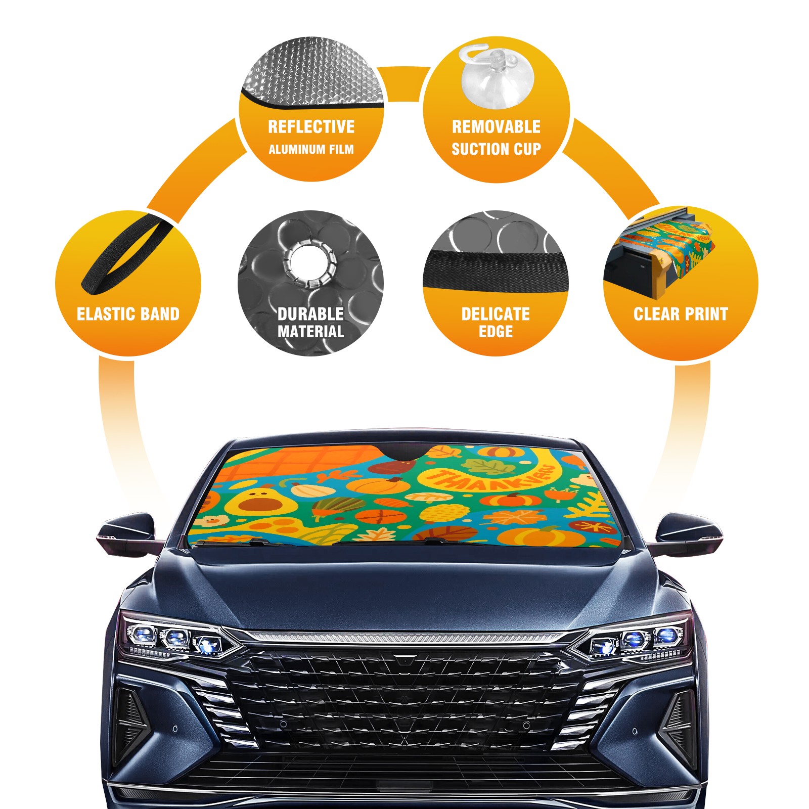 • <p>This sunshade pad is made of aluminum foil and polyester material, paired with high-quality aluminum foil bubbles, which can efficiently block ultraviolet rays, provide strong insulation and cooling, easily reduce the temperature inside the car, and save fuel when turning on the air conditioning, keeping the car cool at all times. Processed with transparent adhesive technology, the material is sturdy and durable, capable of long-term protection of the car dashboard, steering wheel, and seats, and is not afraid of sunlight erosion. The transparent pocket in the bottom right corner of the front is convenient for placing contact phone cards, and temporary parking with a number is no longer a hassle. Foldable design combined with compact size, lightweight and portable, does not take up interior space after storage, making it easy to carry for daily commuting or outdoor travel. There is no need to worry about cleaning, it is recommended to wash by hand. Regular cleaning can keep the sunshade pad clean as new and provide long-lasting protection.</p>