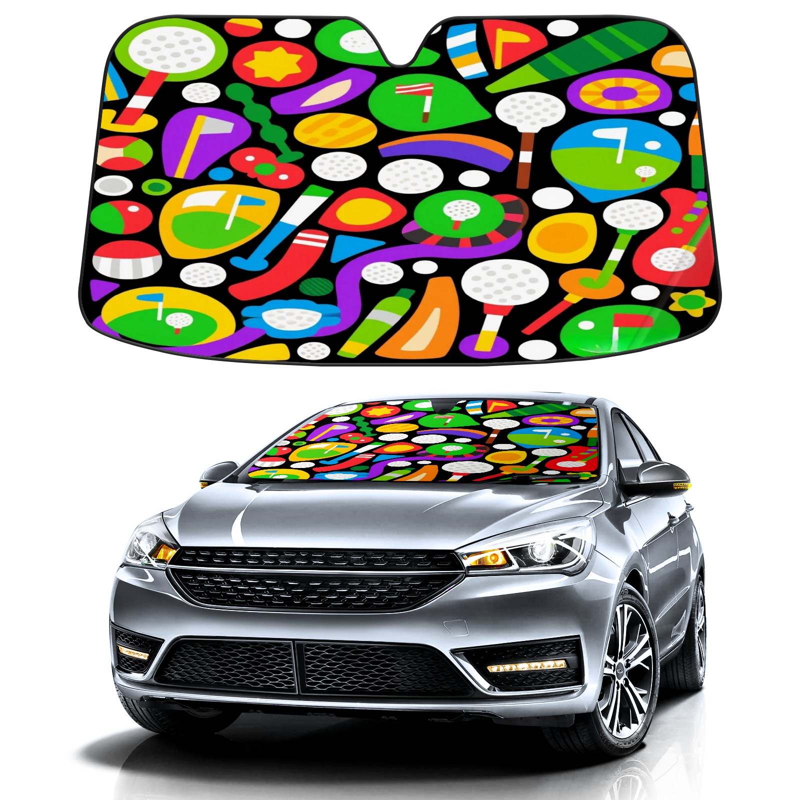 Foldable Aluminum Foil Polyester Car Sunshade Pad | 99% Heat Insulation & Sun Protection | Transparent Number Pocket | Lightweight & Portable | Fits Cars/SUVs/Trucks 13392789425924827