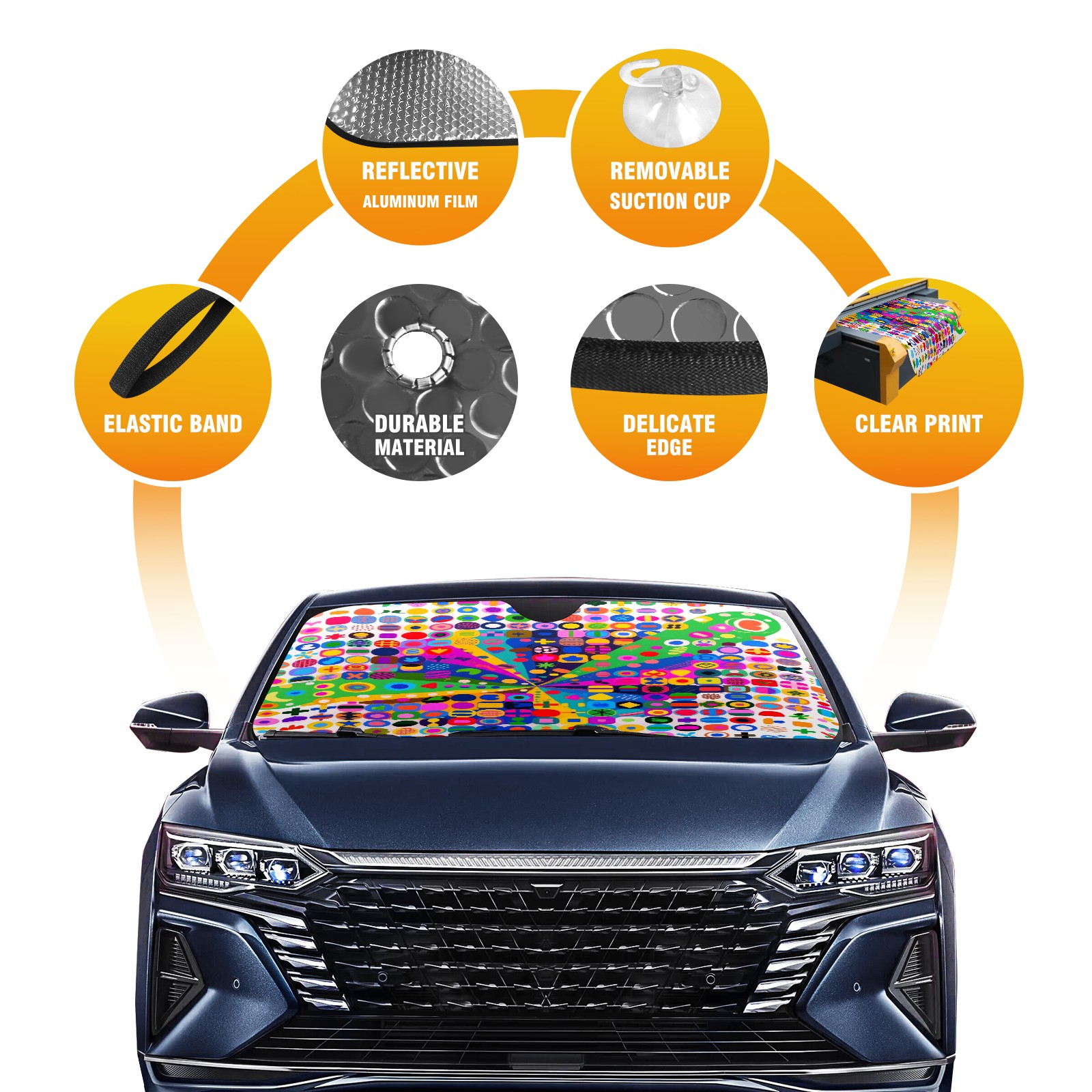 Foldable Aluminum Foil Polyester Car Sunshade Pad | 99% Heat Insulation & Sun Protection | Transparent Number Pocket | Lightweight & Portable | Fits Cars/SUVs/Trucks 13392789250206028