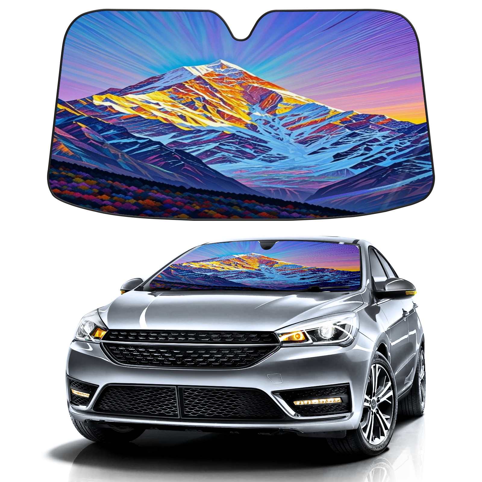Foldable Aluminum Foil Polyester Car Sunshade Pad | 99% Heat Insulation & Sun Protection | Transparent Number Pocket | Lightweight & Portable | Fits Cars/SUVs/Trucks 13392788953176609