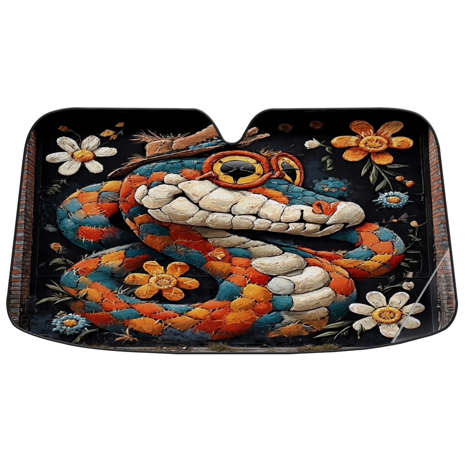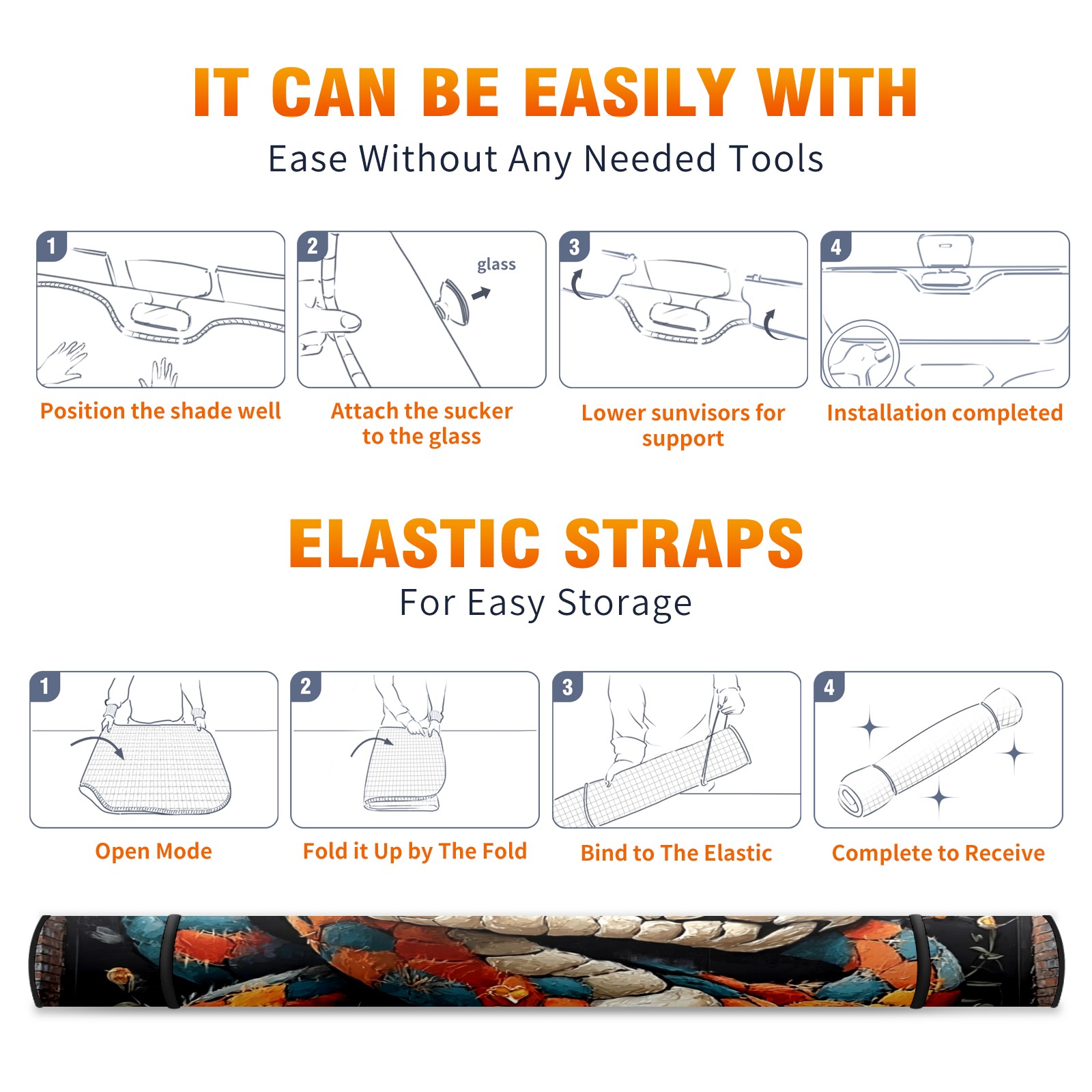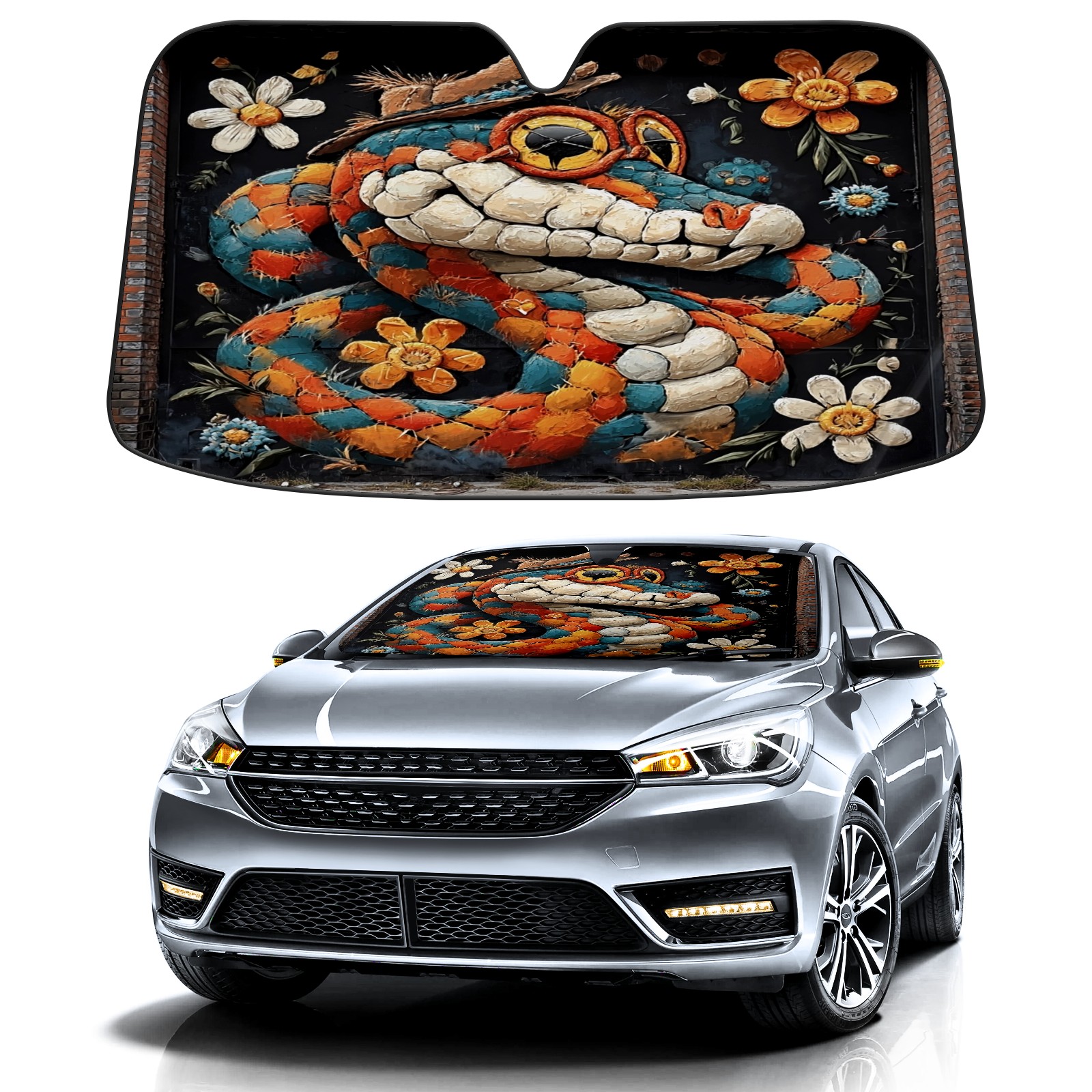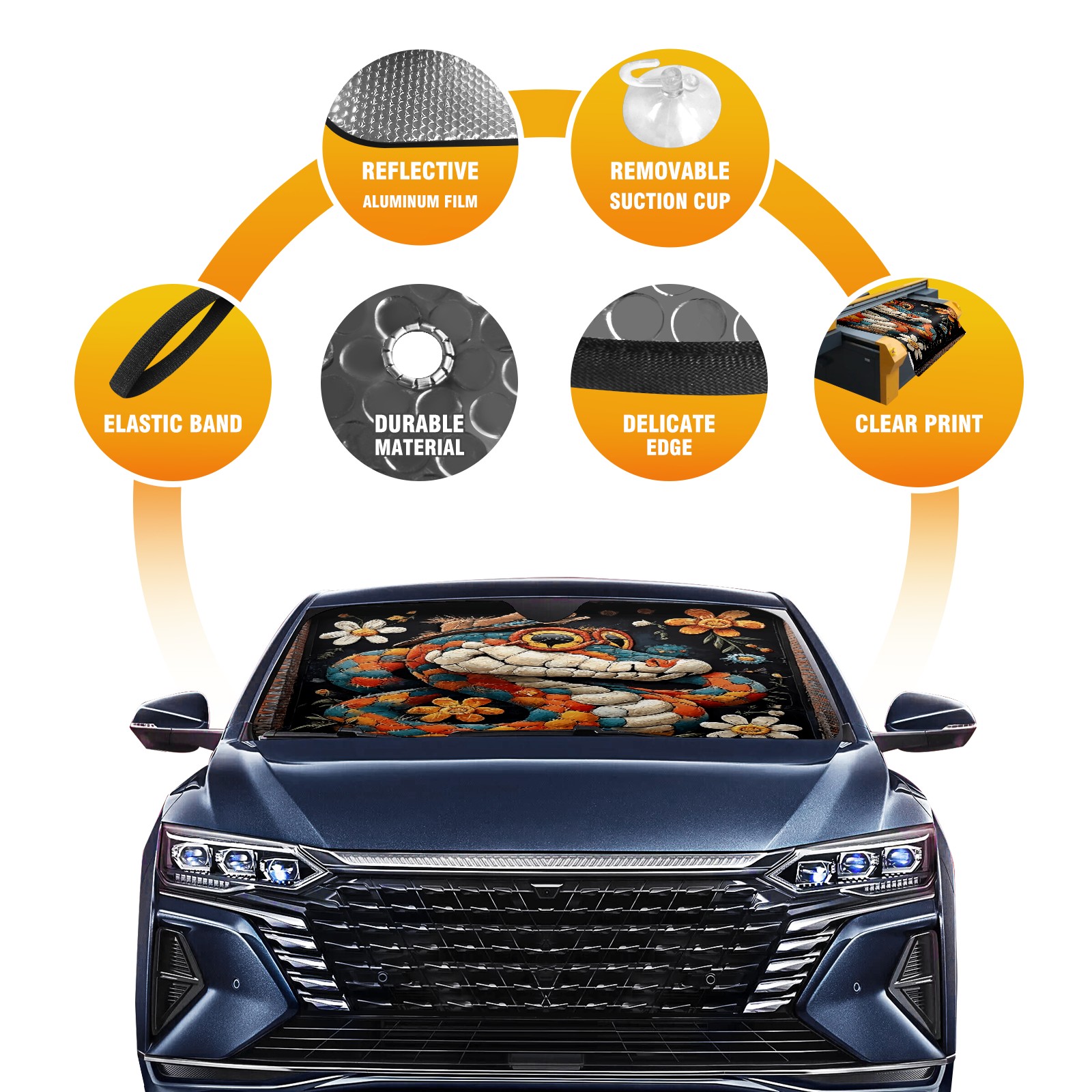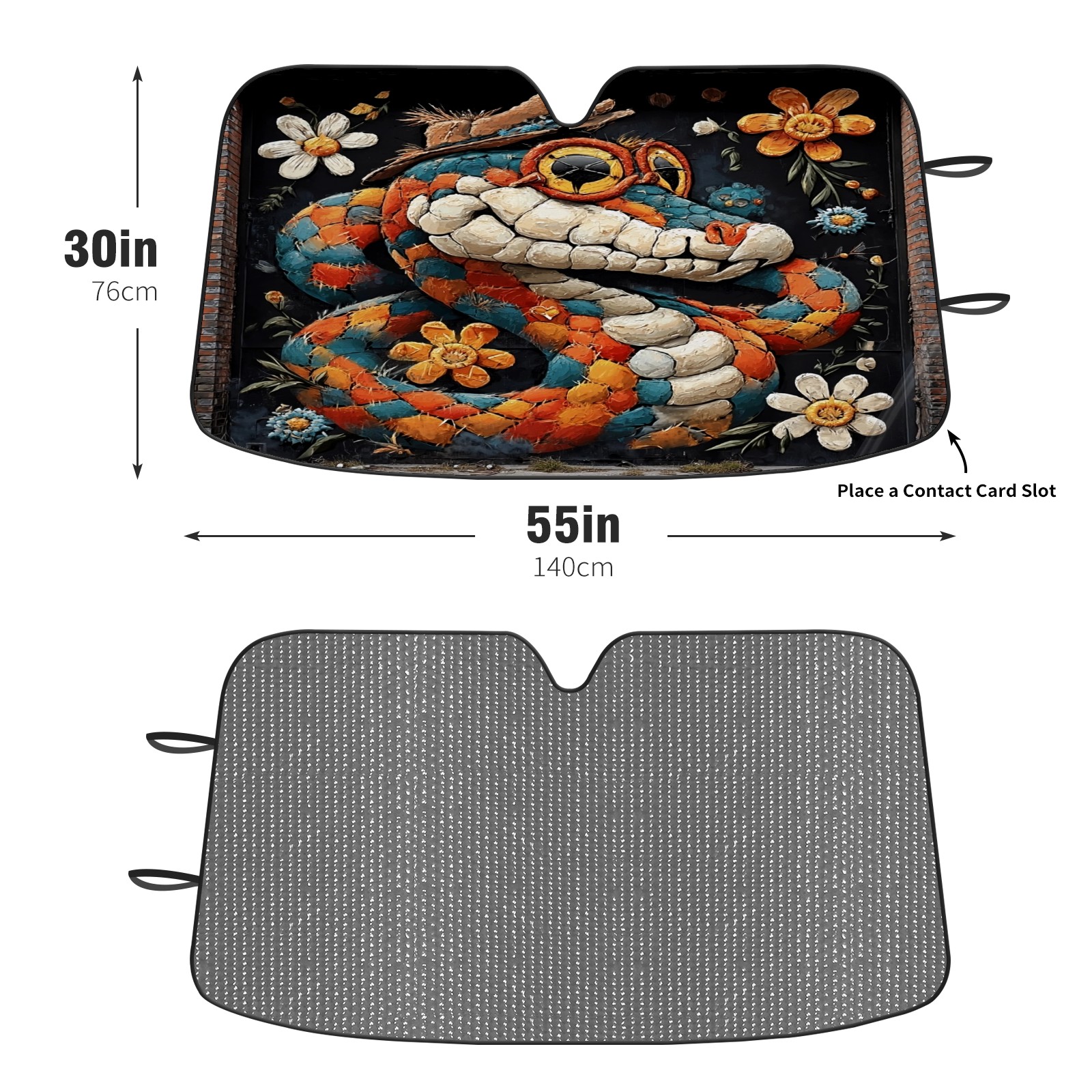 Foldable Aluminum Foil Polyester Car Sunshade Pad | 99% Heat Insulation & Sun Protection | Transparent Number Pocket | Lightweight & Portable | Fits Cars/SUVs/Trucks 蛇4 (2)
