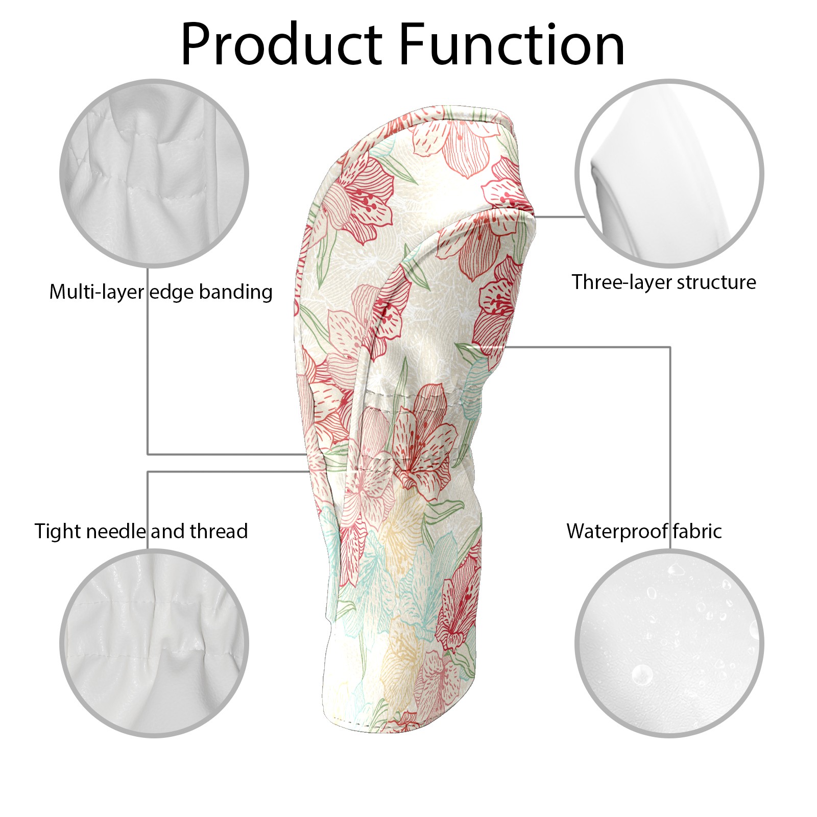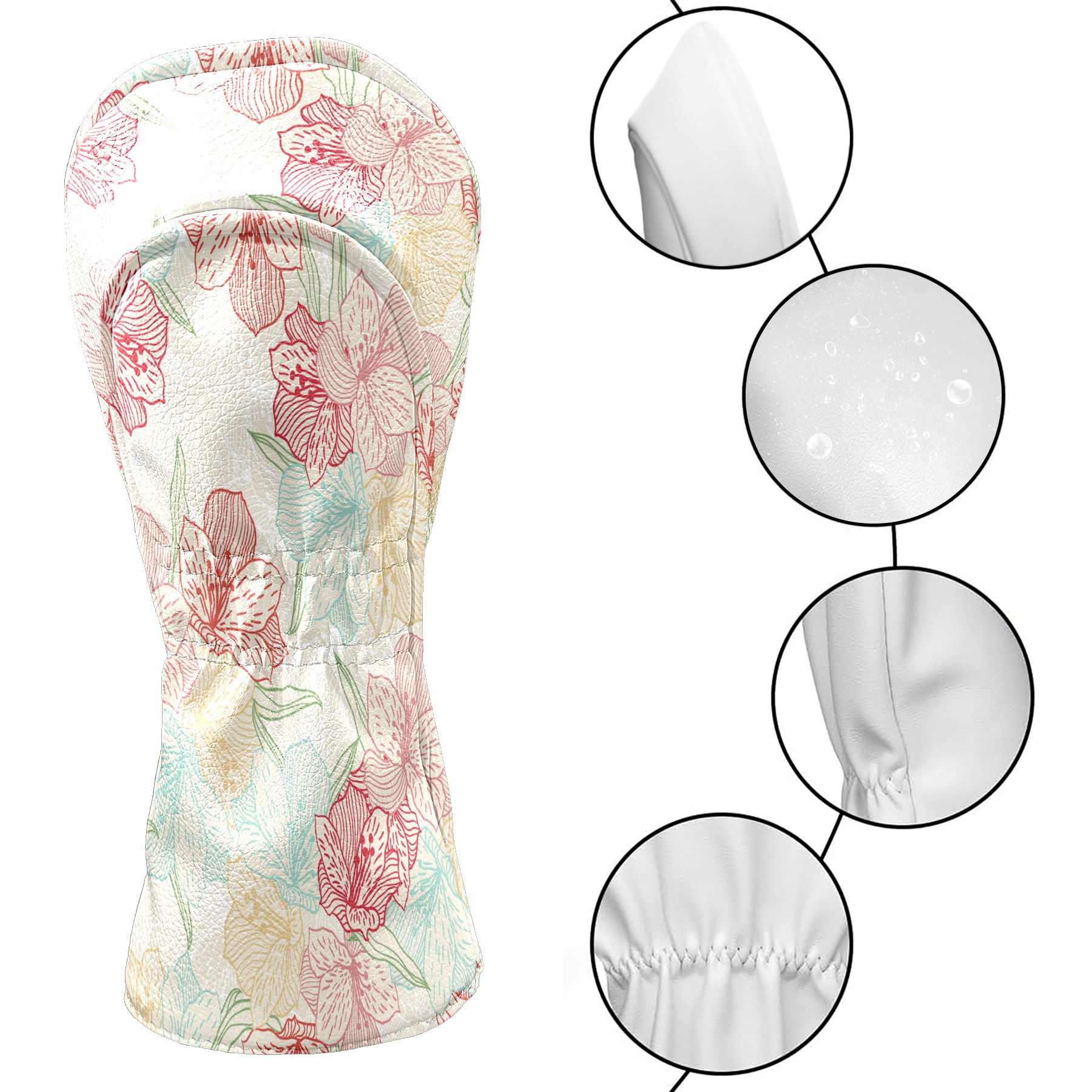 Golf Head Covers Driver Club Head Cover for Drivers Fairway Woods and Hybrid Clubs, PU Leather Golf Club Head Covers for Men and Women Flower Leaves-172