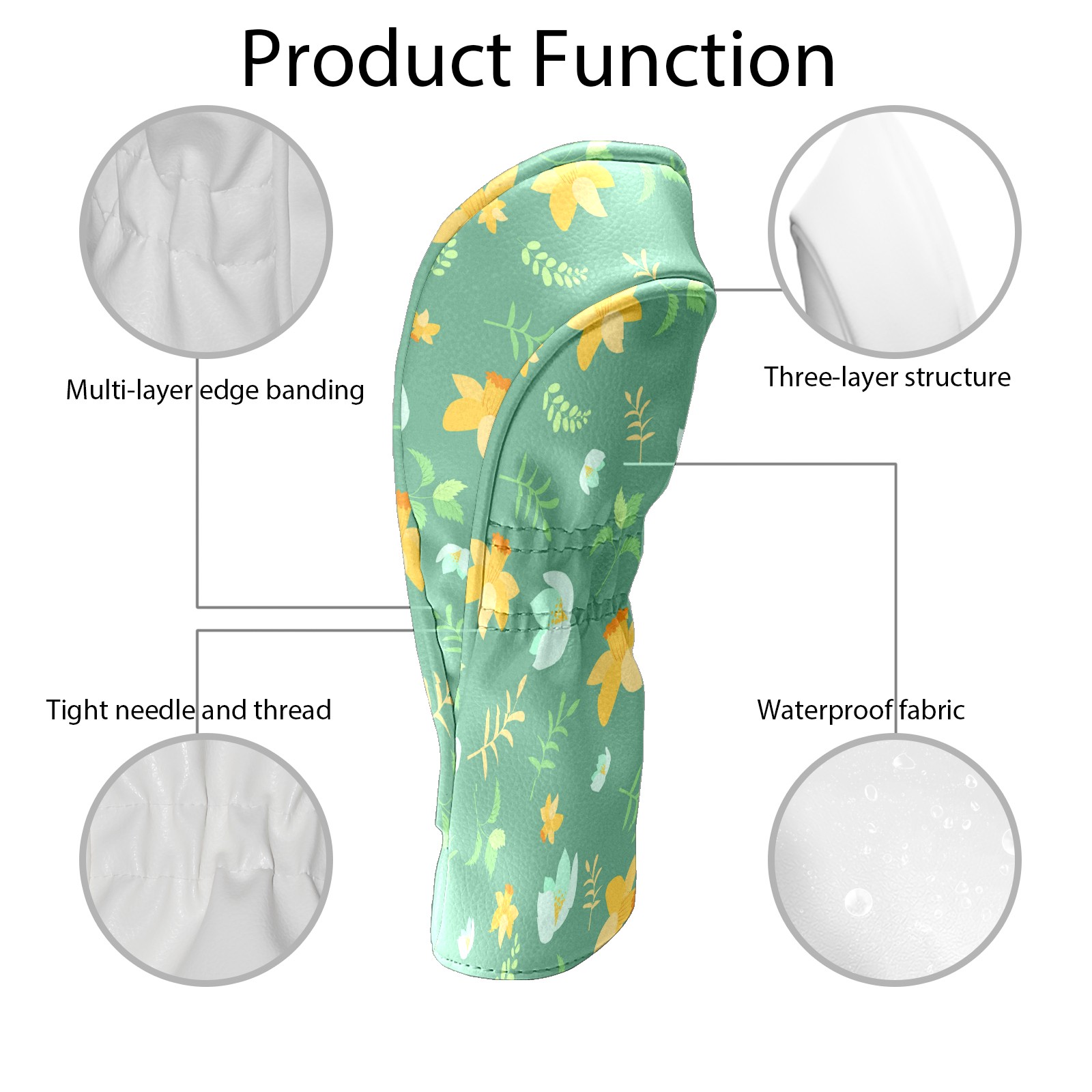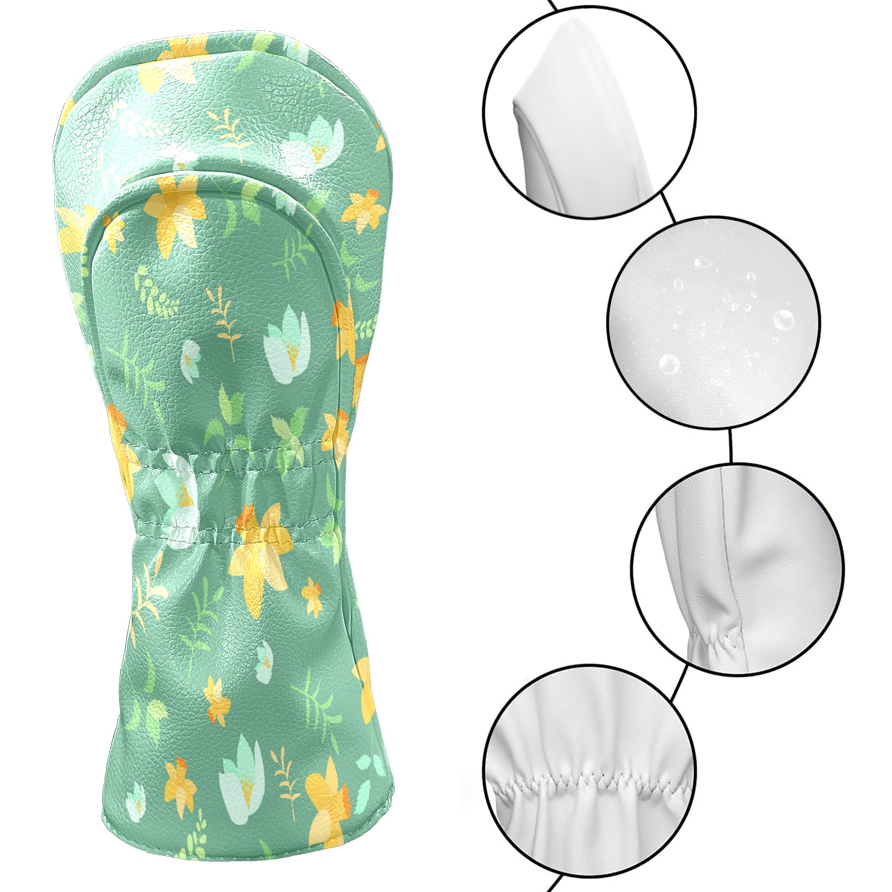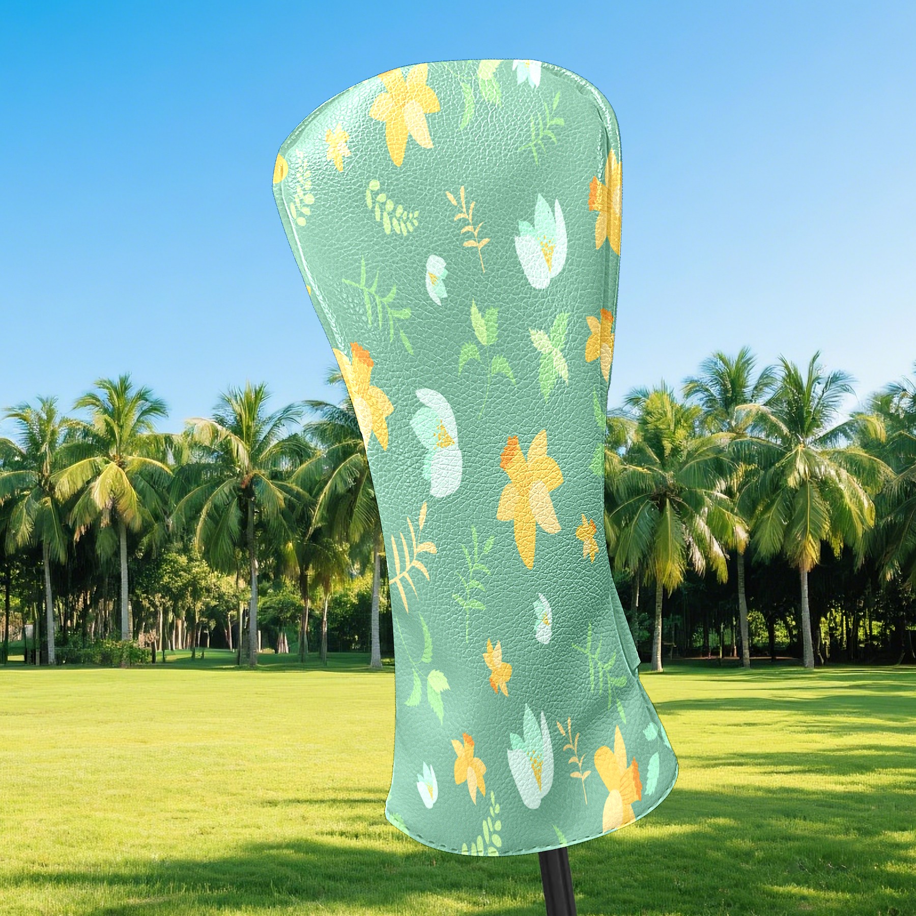 Golf Head Covers Driver Club Head Cover for Drivers Fairway Woods and Hybrid Clubs, PU Leather Golf Club Head Covers for Men and Women Flower Leaves-153
