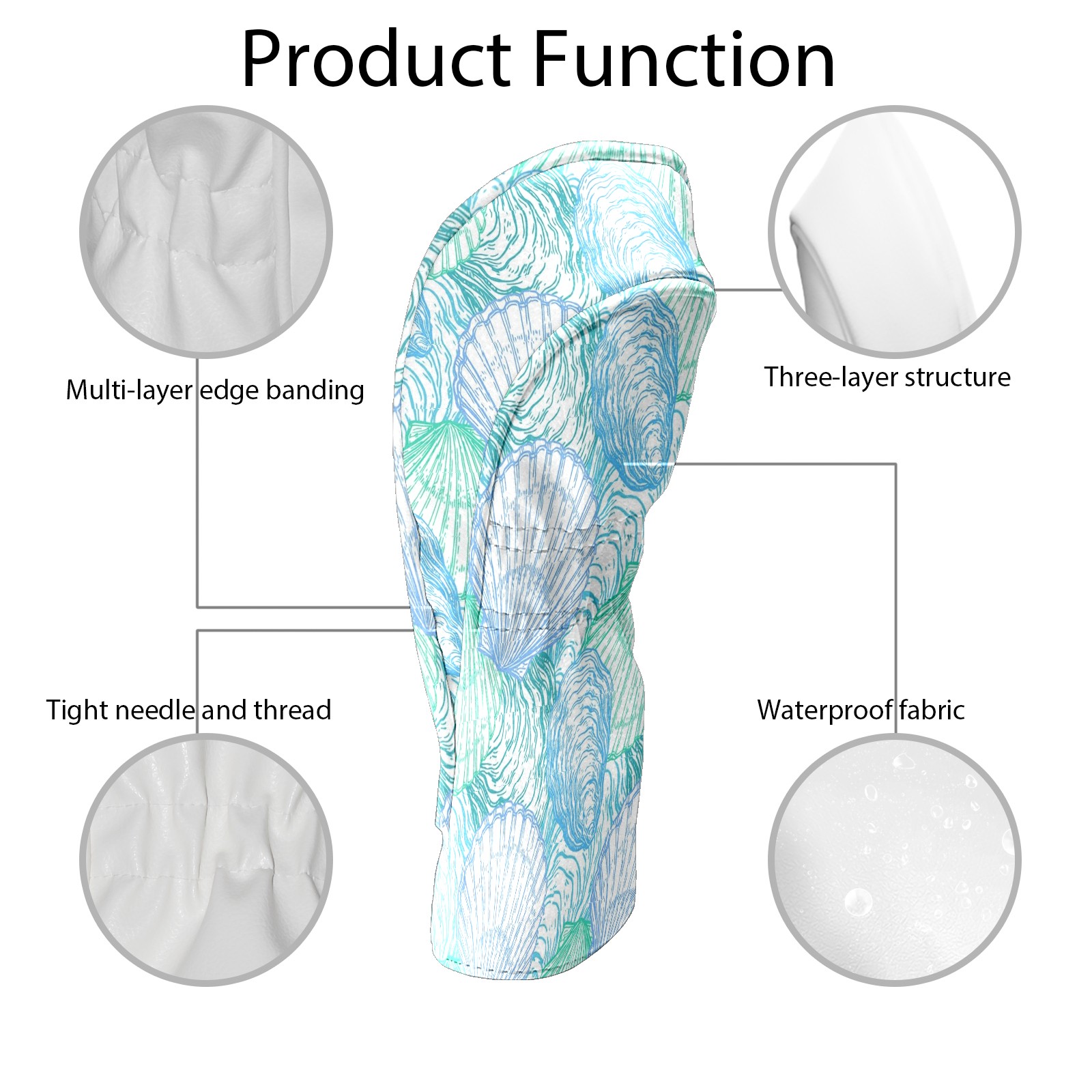 Golf Head Covers Driver Club Head Cover for Drivers Fairway Woods and Hybrid Clubs, PU Leather Golf Club Head Covers for Men and Women Seashells (3)