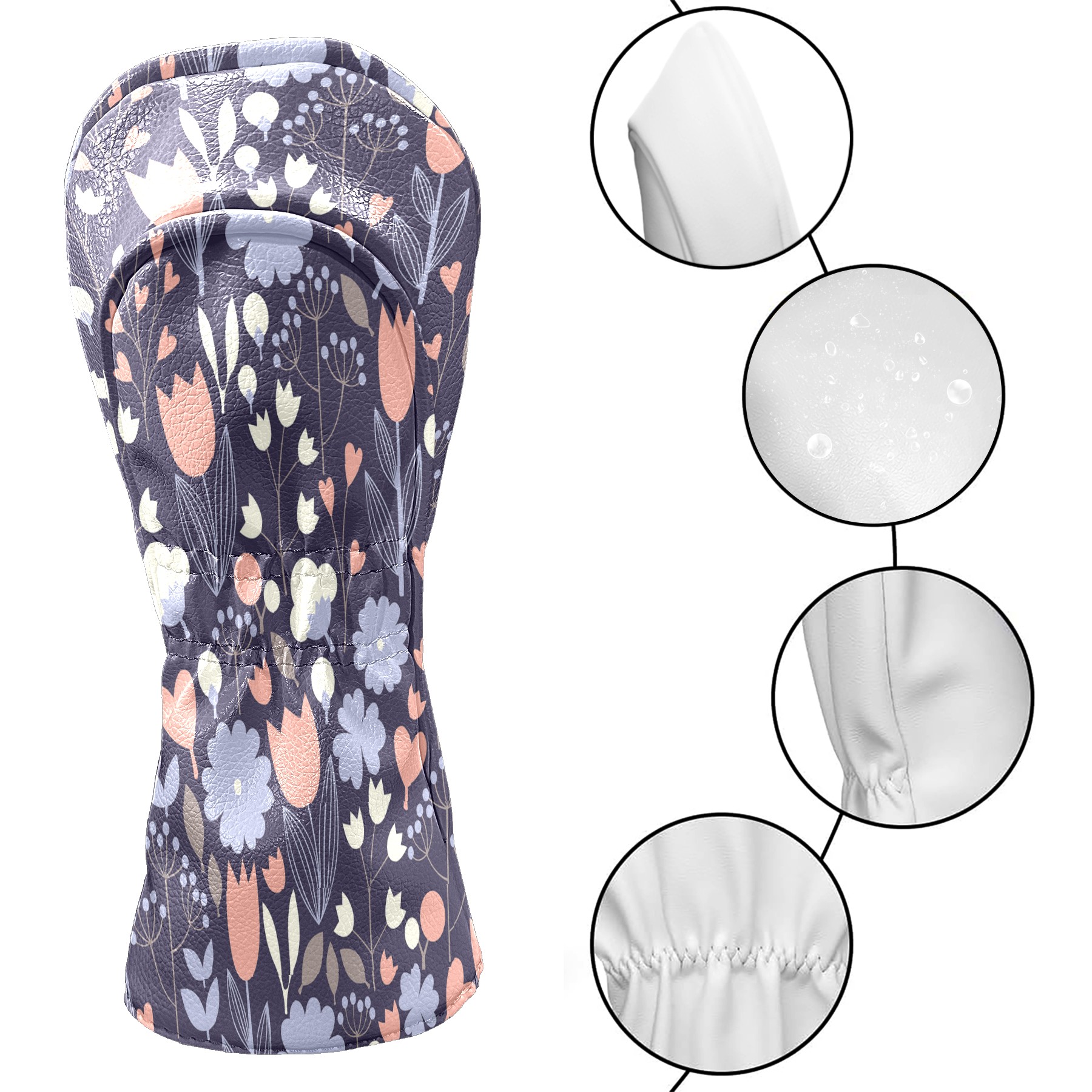 Golf Head Covers Driver Club Head Cover for Drivers Fairway Woods and Hybrid Clubs, PU Leather Golf Club Head Covers for Men and Women Floral (21)