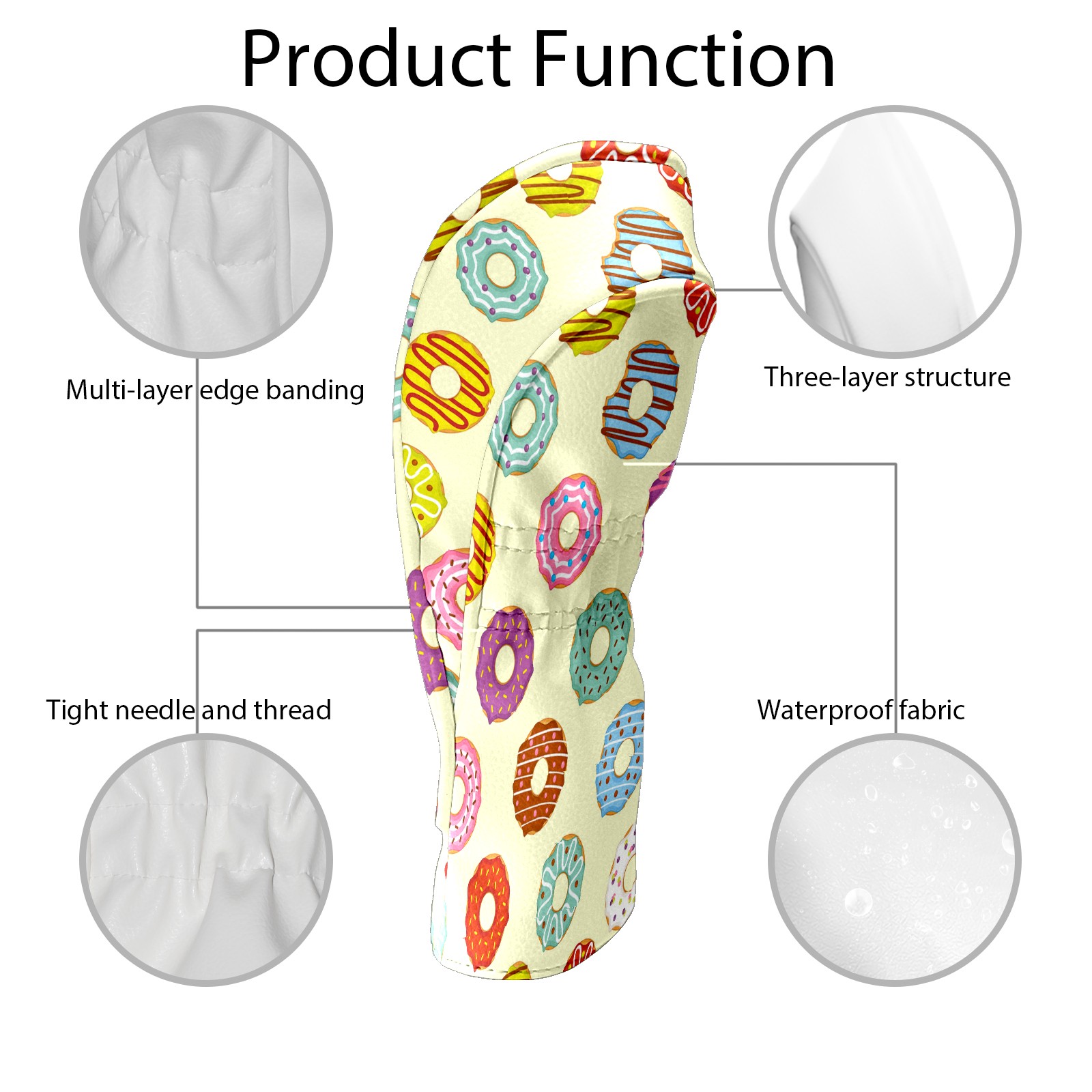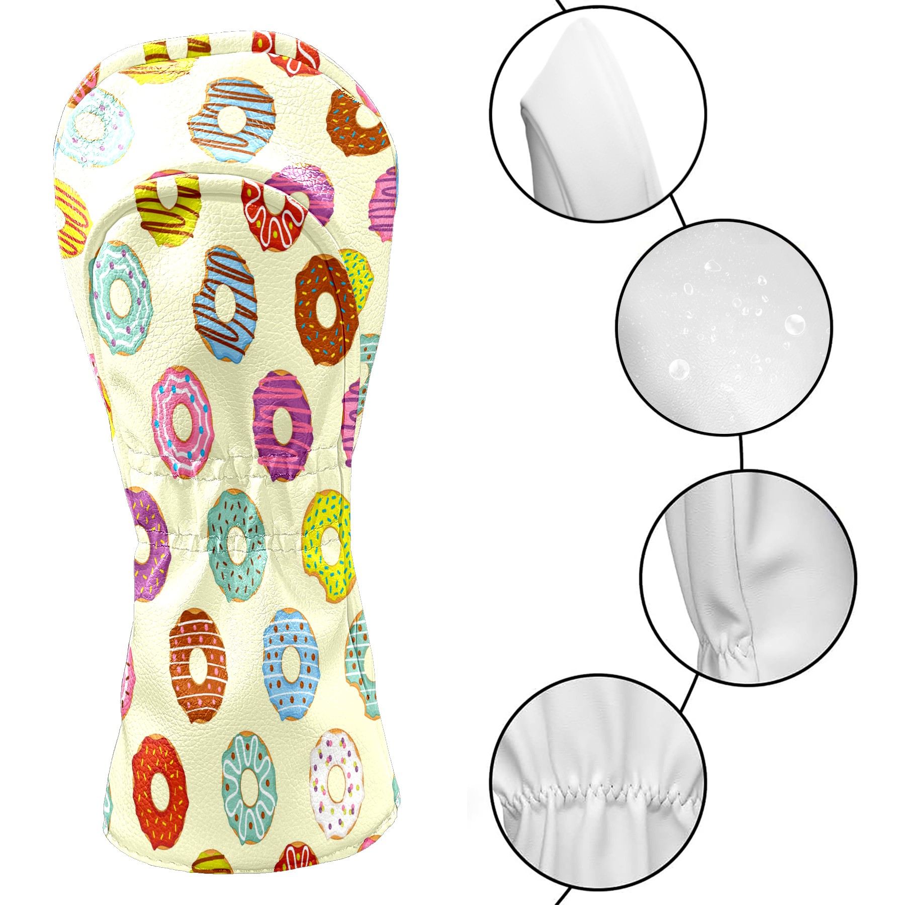 Golf Head Covers Driver Club Head Cover for Drivers Fairway Woods and Hybrid Clubs, PU Leather Golf Club Head Covers for Men and Women Donuts