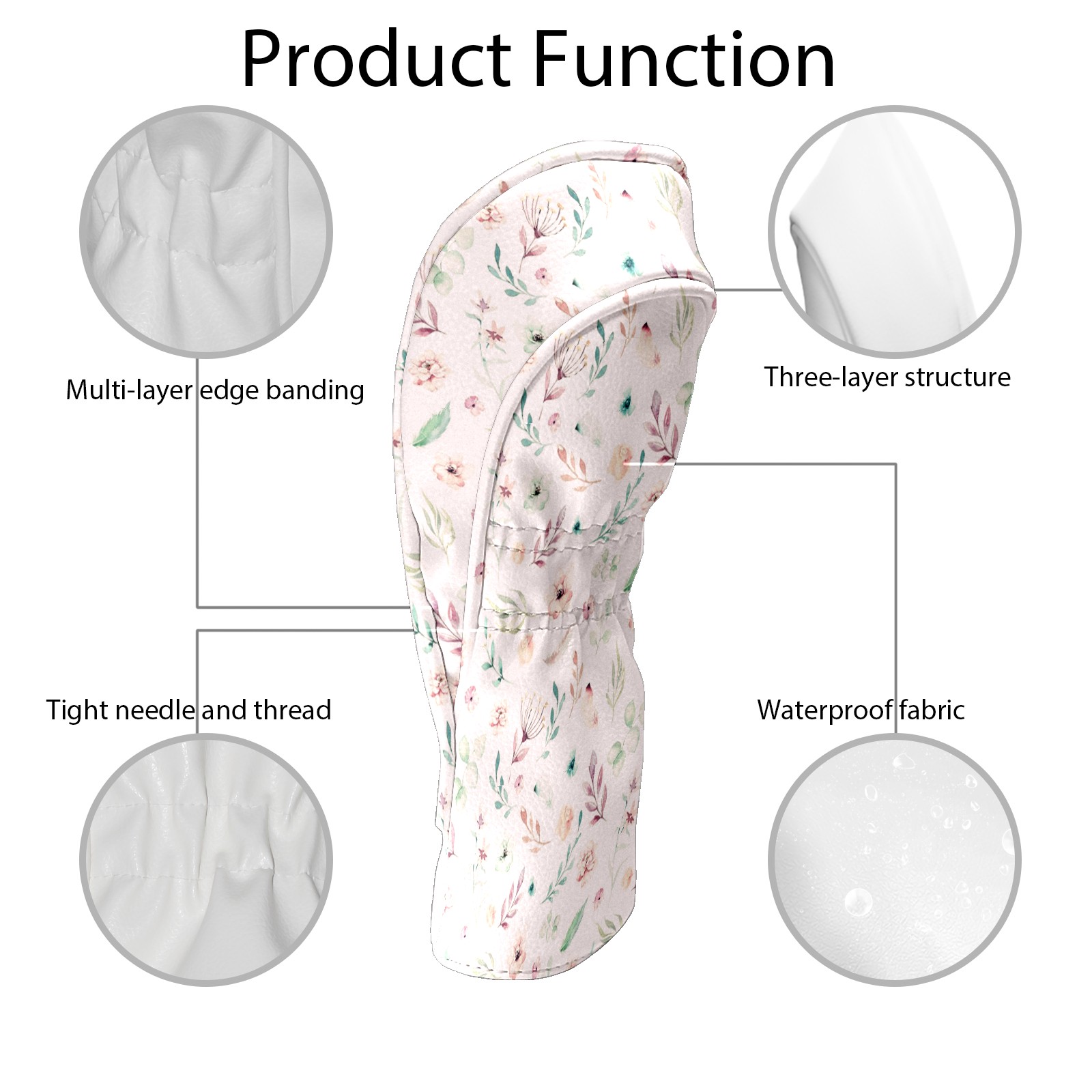 Golf Head Covers Driver Club Head Cover for Drivers Fairway Woods and Hybrid Clubs, PU Leather Golf Club Head Covers for Men and Women Flower
