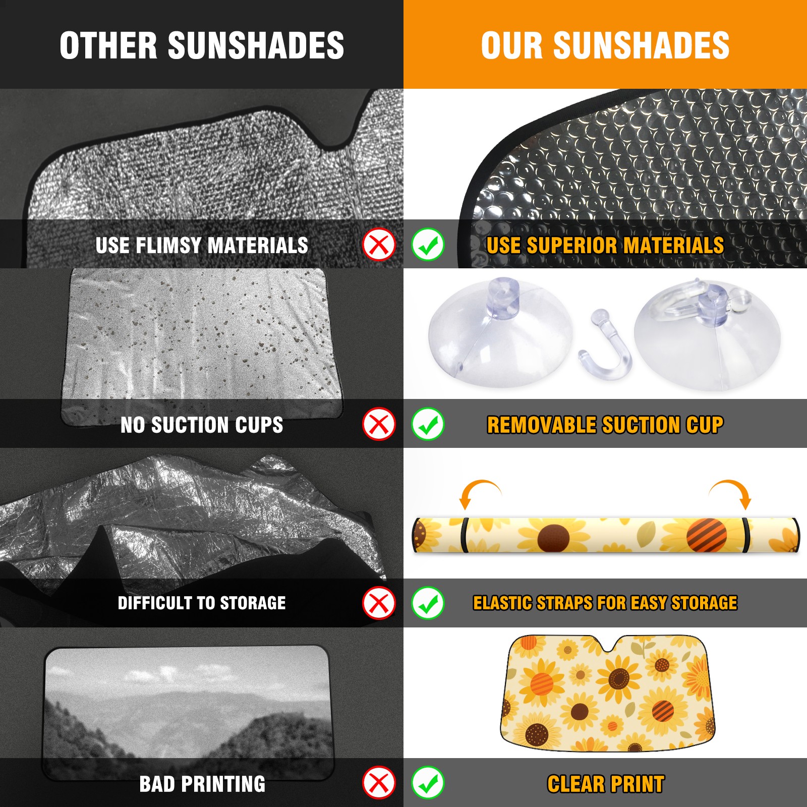 • <p>This car sunshade pad is made of a high-quality combination of aluminum foil and polyester, reinforced with transparent adhesive. It measures 140x76cm (55inx30in) and is a practical choice for protecting your car. Its powerful UV protection function can effectively block harmful light, prevent the car interior from aging due to exposure to sunlight, and maintain the dashboard, steering wheel, and seats in a brand new state.<br></p>
