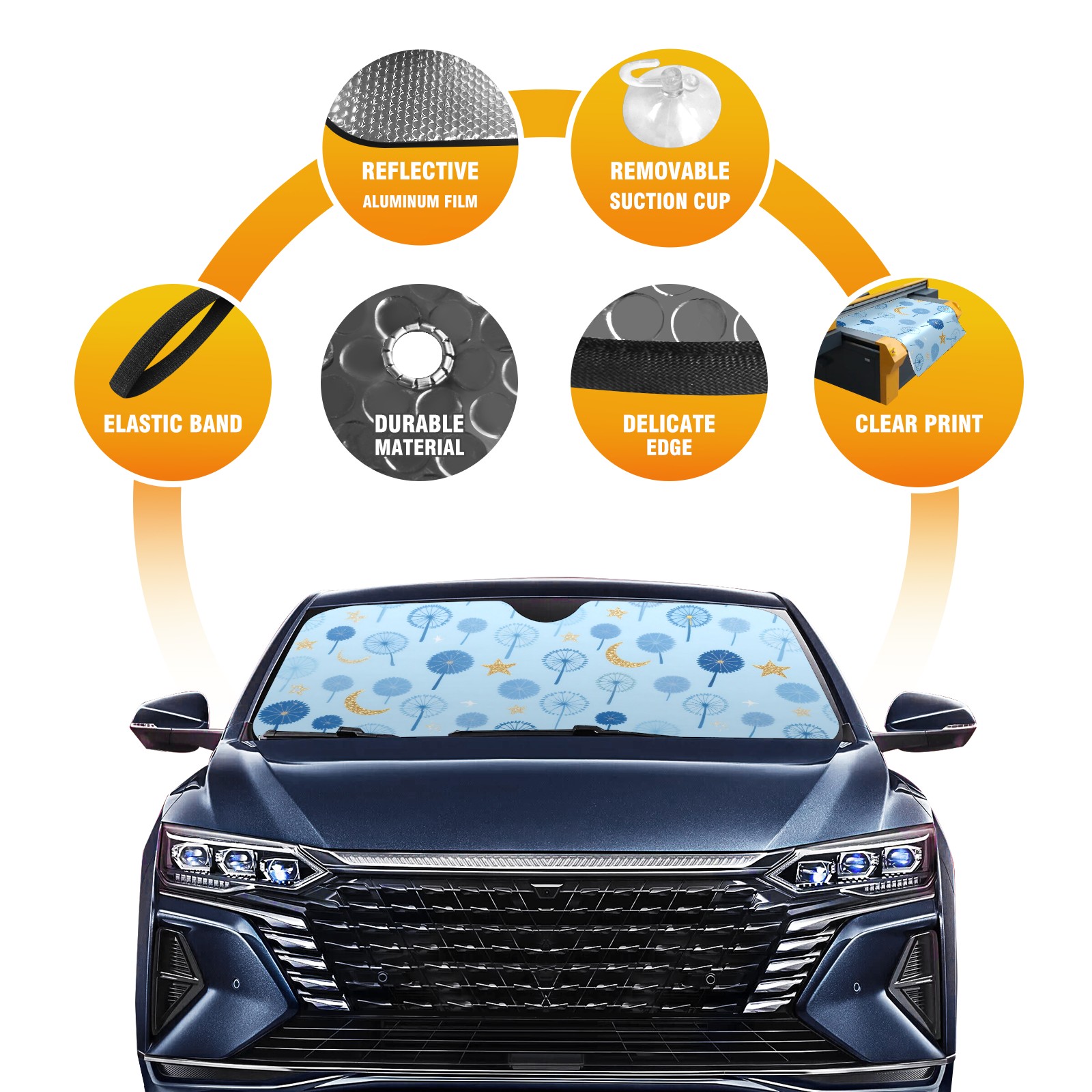 <p>This car sunshade pad is made of a high-quality combination of aluminum foil and polyester, reinforced with transparent adhesive. It measures 140x76cm (55inx30in) and is a practical choice for protecting your car. Its powerful UV protection function can effectively block harmful light, prevent the car interior from aging due to exposure to sunlight, and maintain the dashboard, steering wheel, and seats in a brand new state.<br></p>