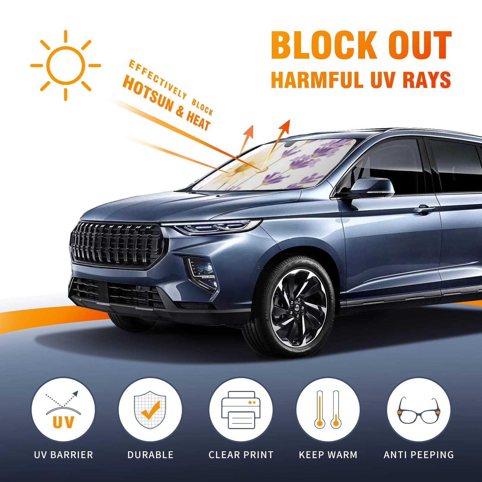 <p>This car sunshade pad is made of a high-quality combination of aluminum foil and polyester, reinforced with transparent adhesive. It measures 140x76cm (55inx30in) and is a practical choice for protecting your car. Its powerful UV protection function can effectively block harmful light, prevent the car interior from aging due to exposure to sunlight, and maintain the dashboard, steering wheel, and seats in a brand new state.<br></p>