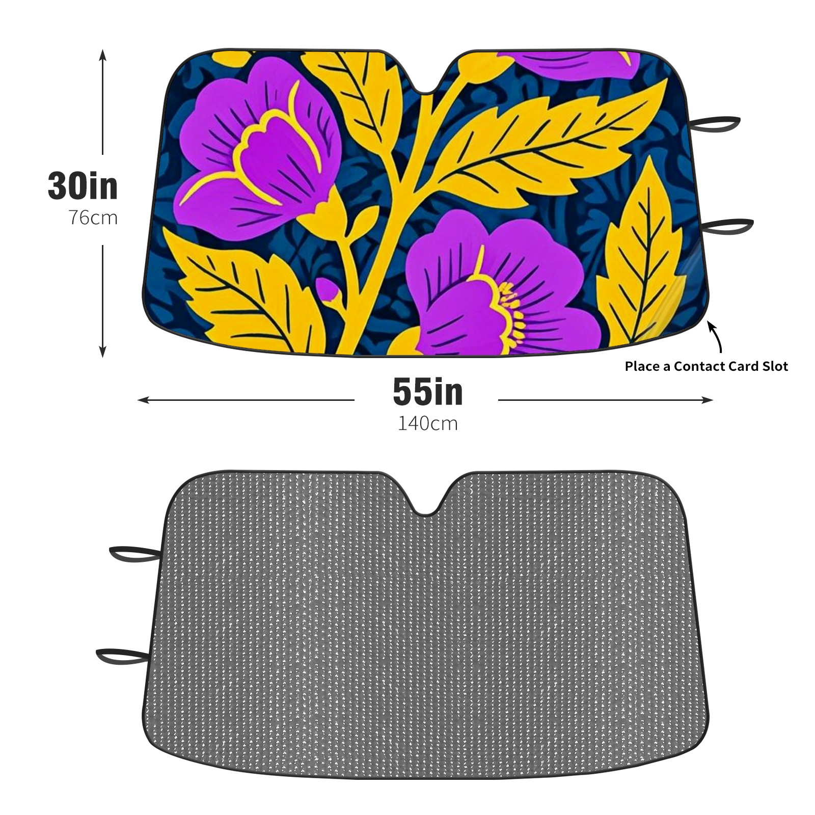 • <p>This car sunshade pad is made of a high-quality combination of aluminum foil and polyester, reinforced with transparent adhesive. It measures 140x76cm (55inx30in) and is a practical choice for protecting your car. Its powerful UV protection function can effectively block harmful light, prevent the car interior from aging due to exposure to sunlight, and maintain the dashboard, steering wheel, and seats in a brand new state.<br></p>