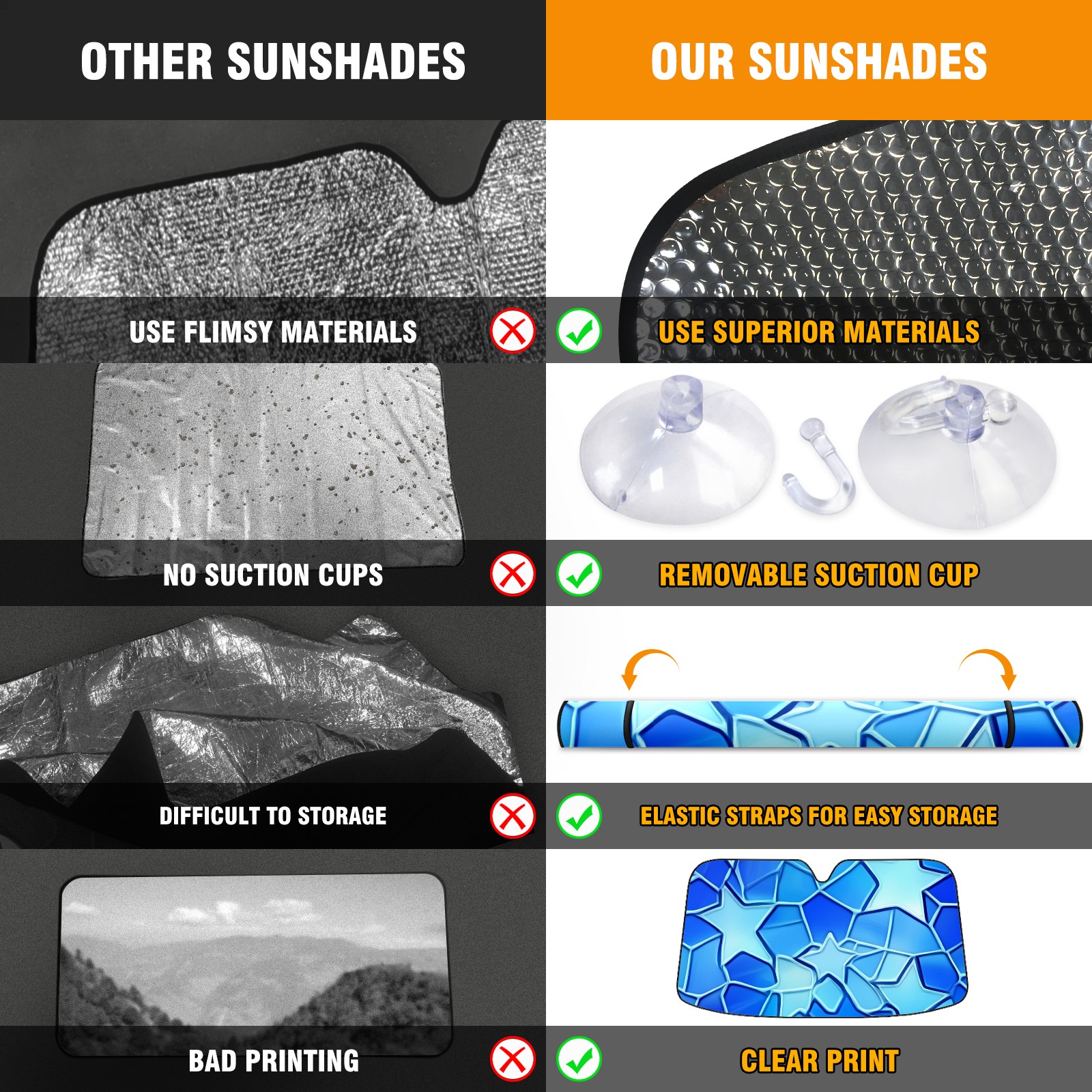 • <p>This car sunshade pad is made of a high-quality combination of aluminum foil and polyester, reinforced with transparent adhesive. It measures 140x76cm (55inx30in) and is a practical choice for protecting your car. Its powerful UV protection function can effectively block harmful light, prevent the car interior from aging due to exposure to sunlight, and maintain the dashboard, steering wheel, and seats in a brand new state.<br></p>