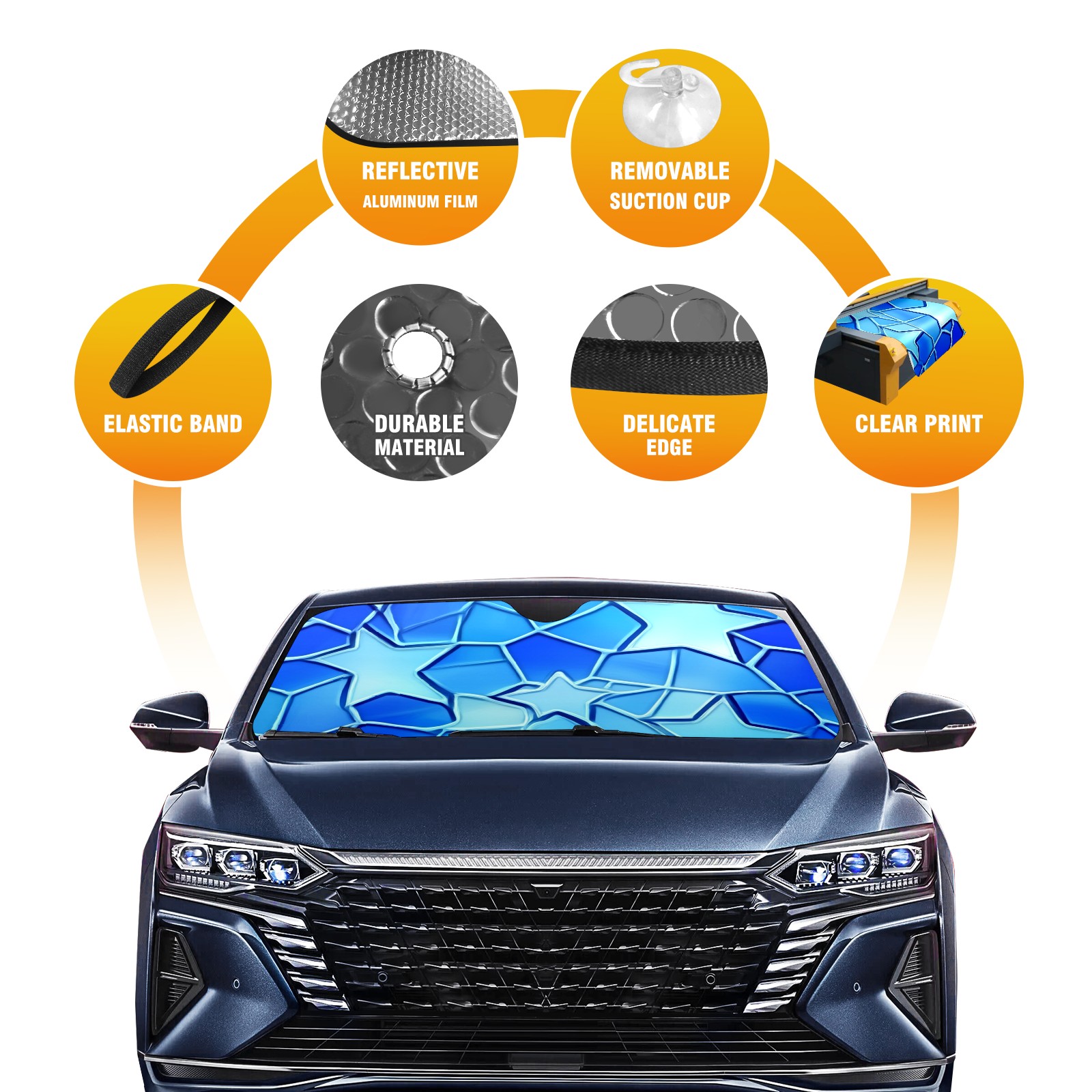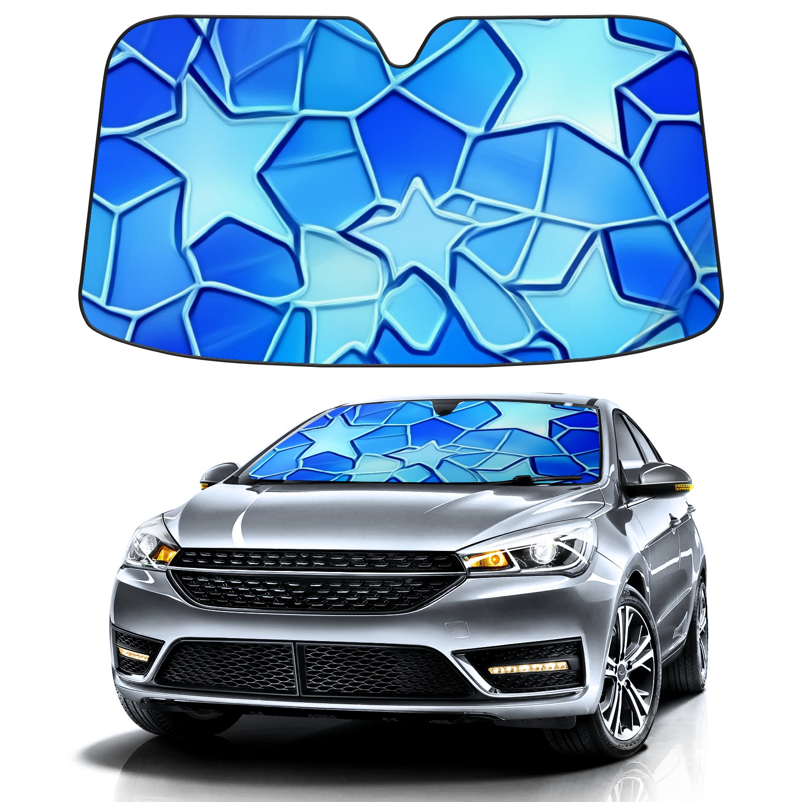 Aluminum Foil Polyester Car Sunshade Pad, Efficient Heat Insulation And Sun Protection ArtifactBlue Stars