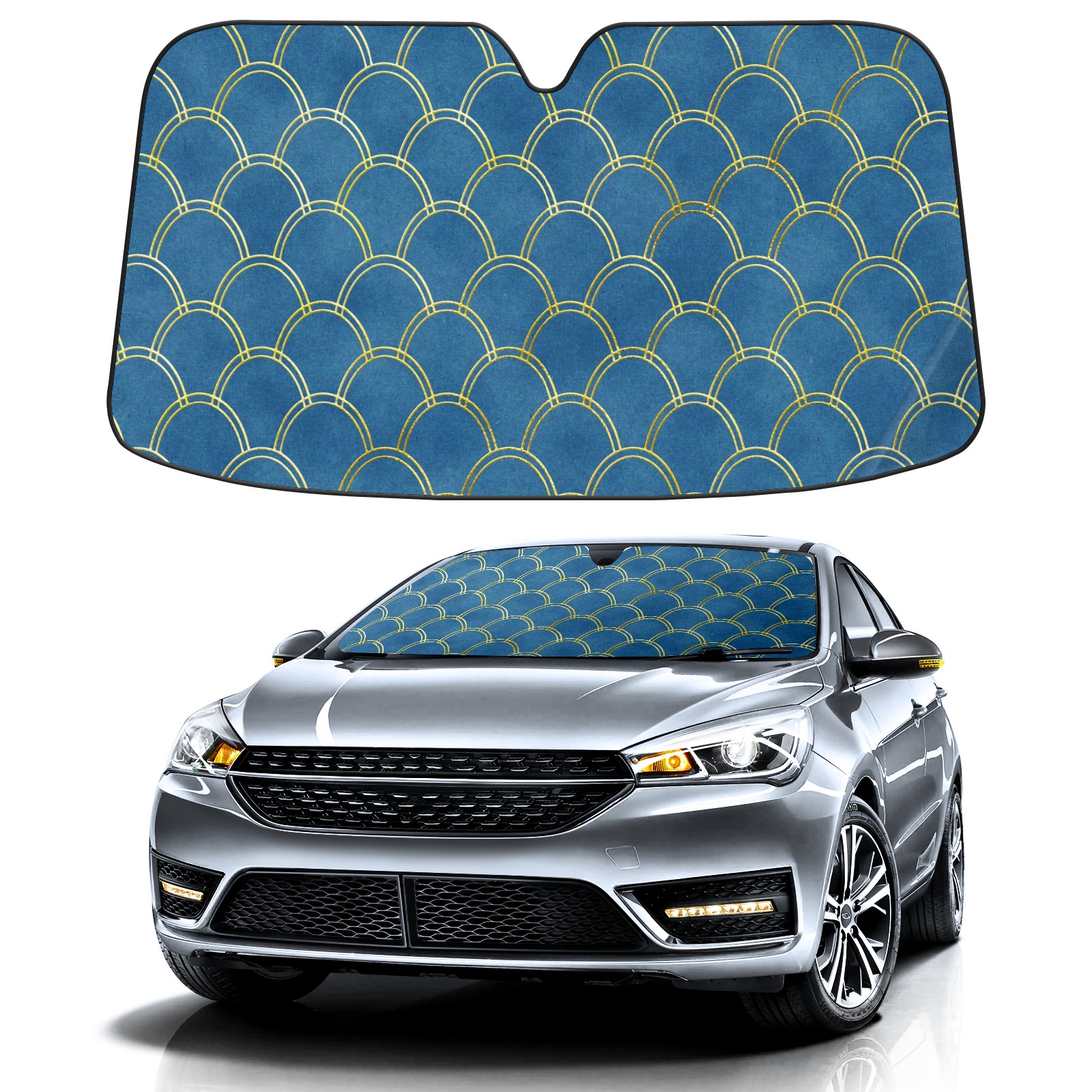 Aluminum Foil Polyester Car Sunshade Pad, Efficient Heat Insulation And Sun Protection ArtifactGold Side Mermaid Scale Pattern Purple 拷贝