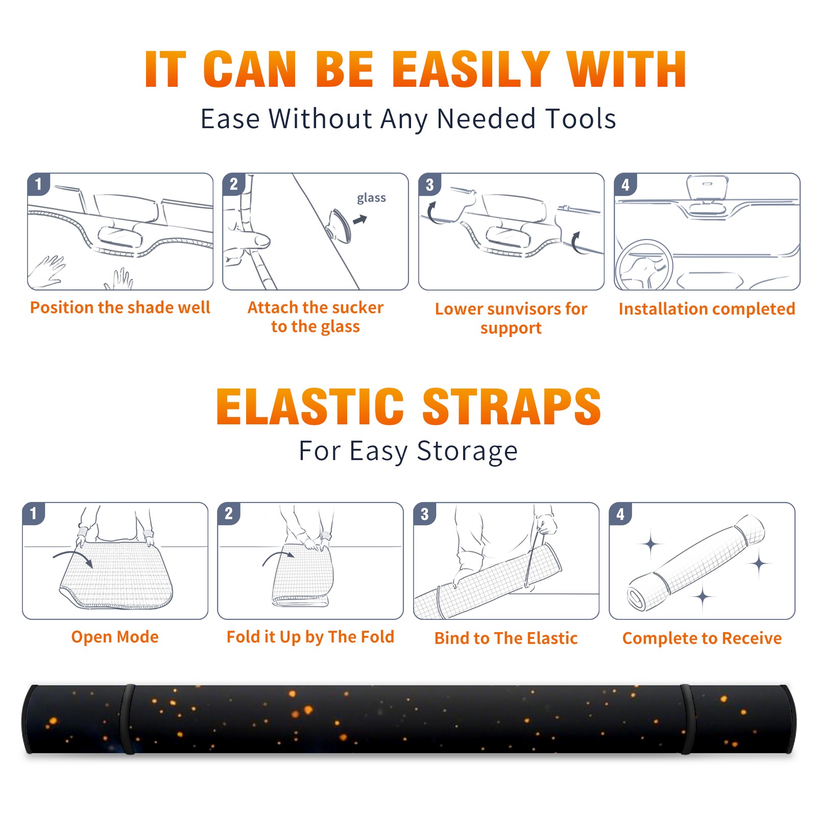 Aluminum Foil Polyester Car Sunshade Pad, Efficient Heat Insulation And Sun Protection ArtifactBlack Starry Sky