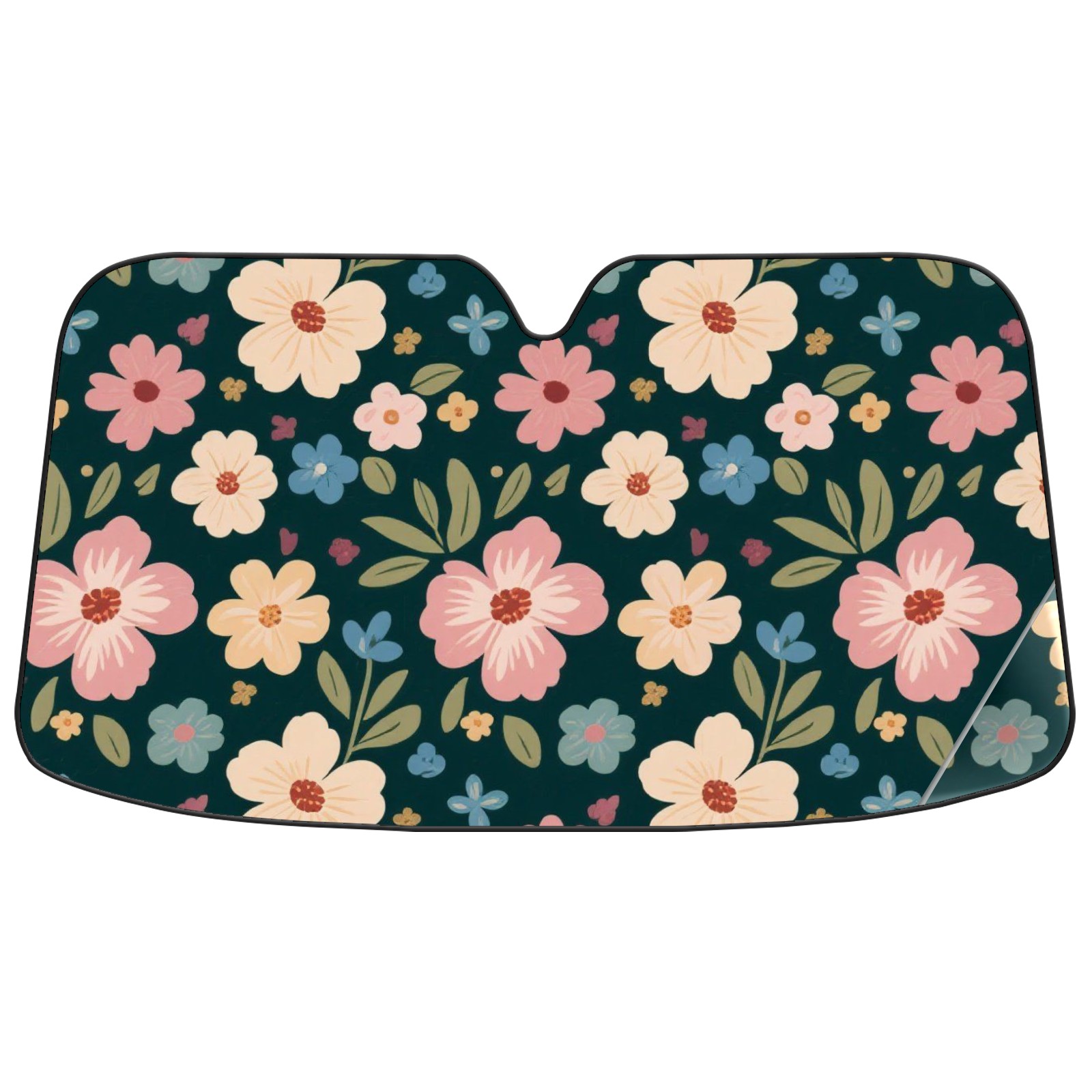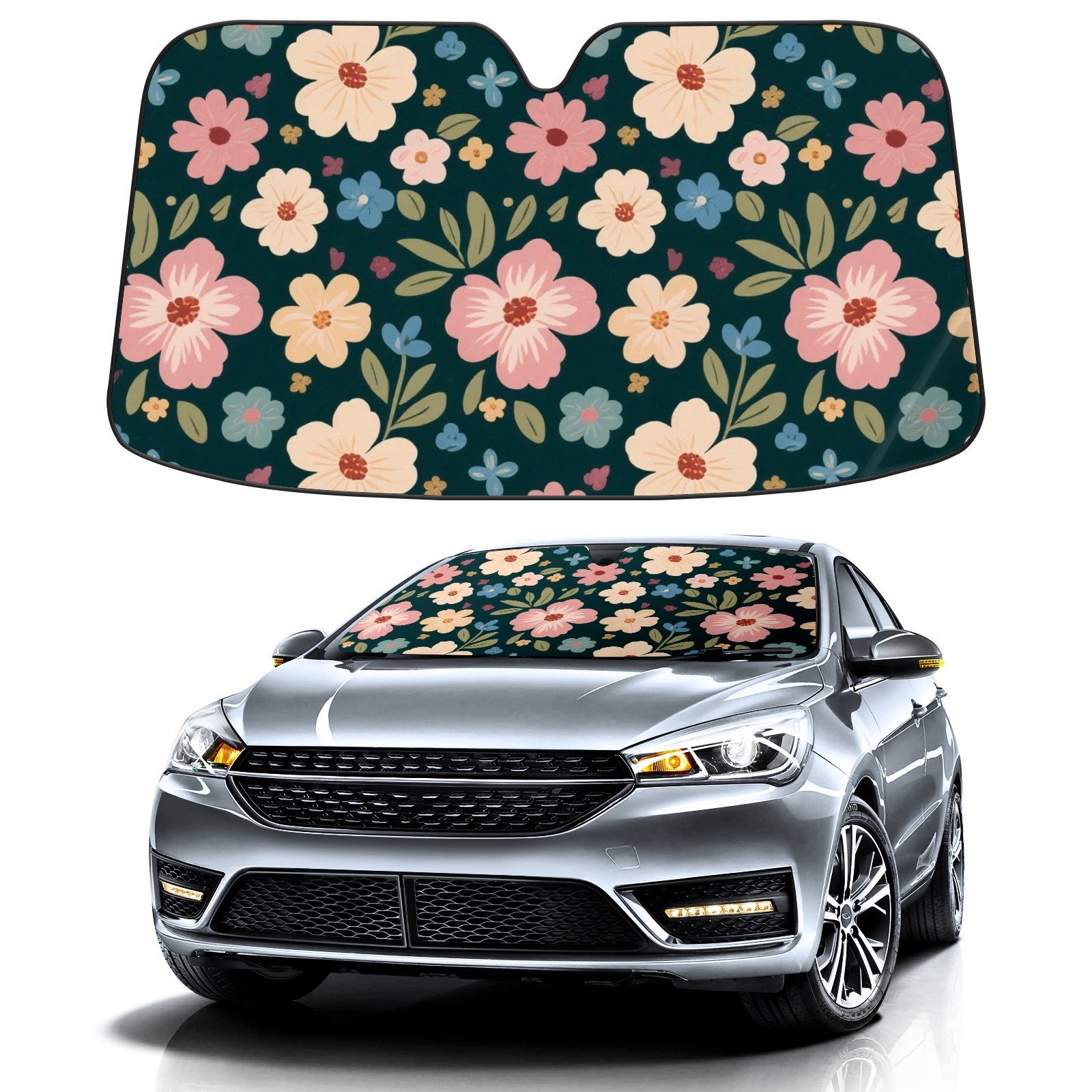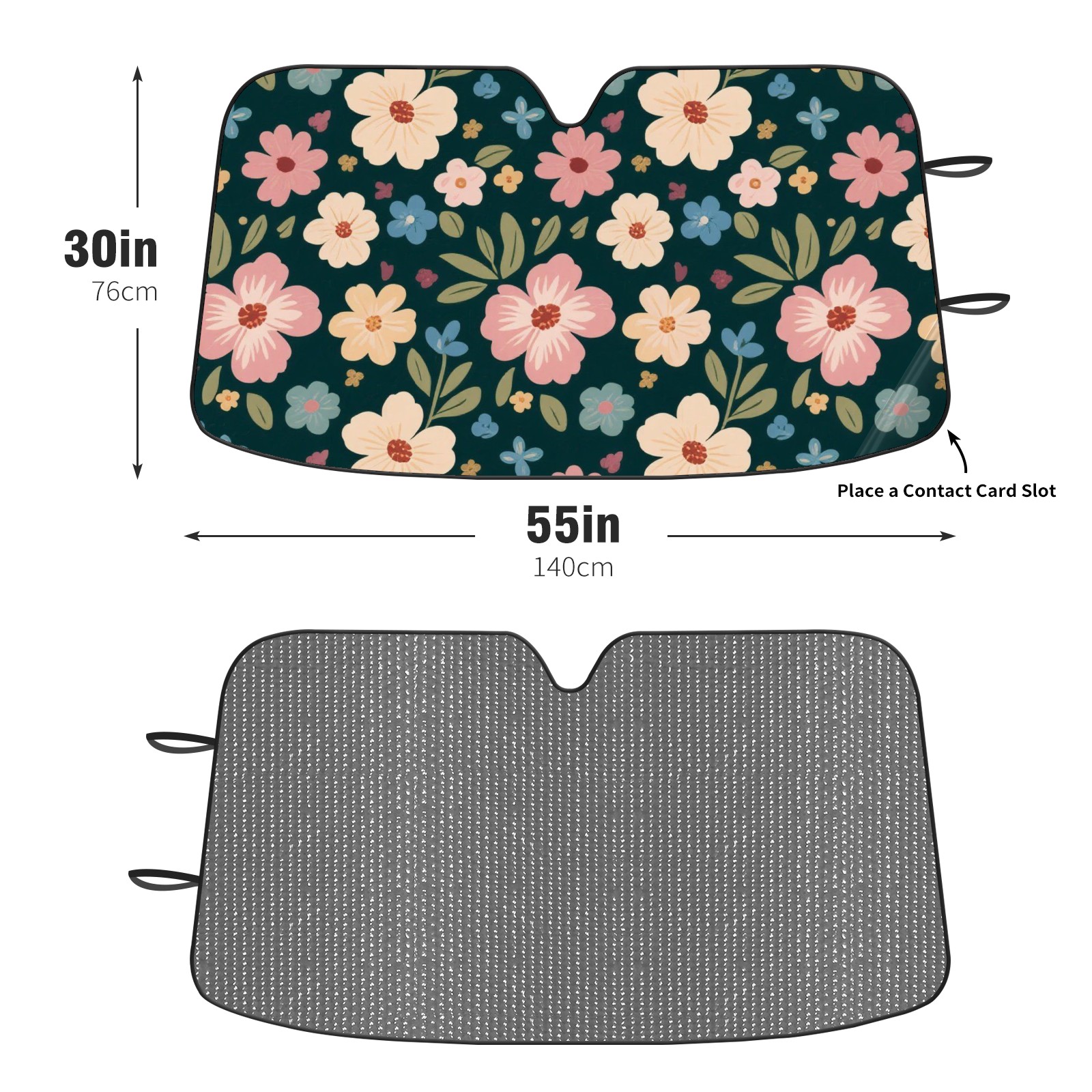 Aluminum Foil Polyester Car Sunshade Pad, Efficient Heat Insulation And Sun Protection ArtifactBlue Small Buds