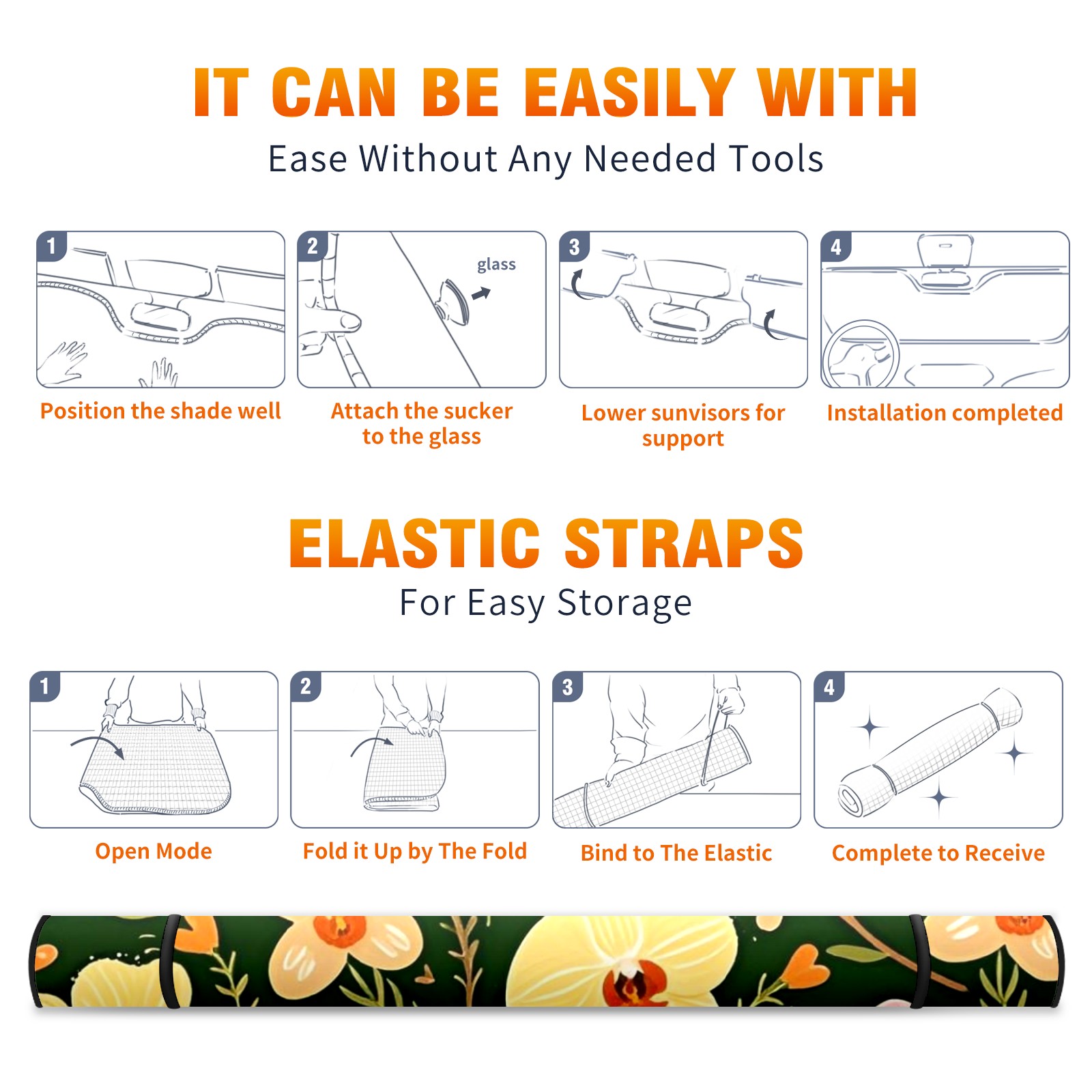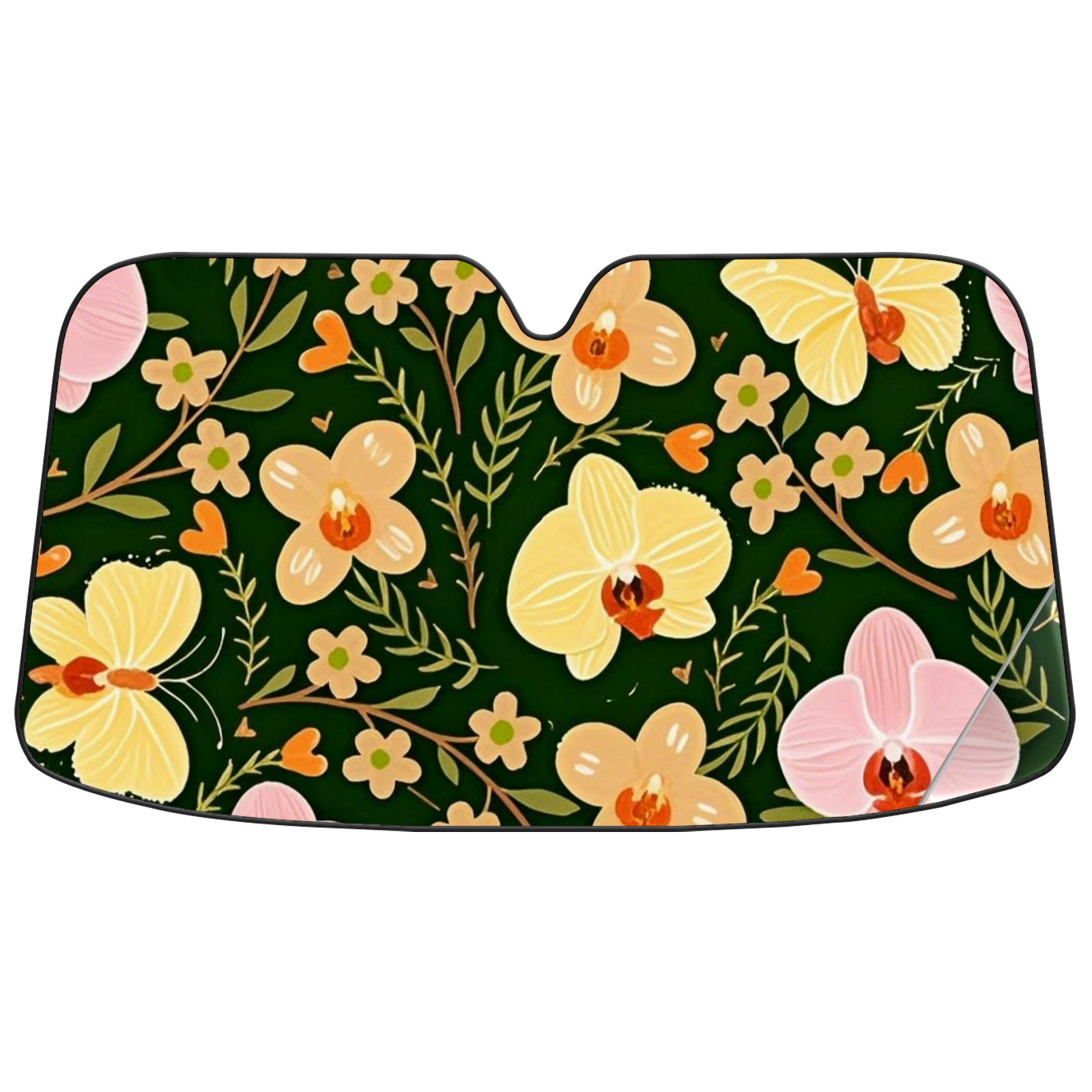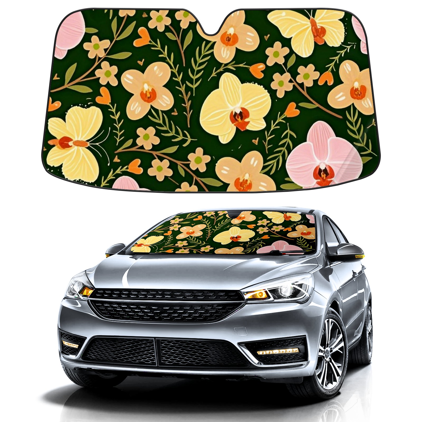 Aluminum Foil Polyester Car Sunshade Pad, Efficient Heat Insulation And Sun Protection ArtifactGreen Phalaenopsis