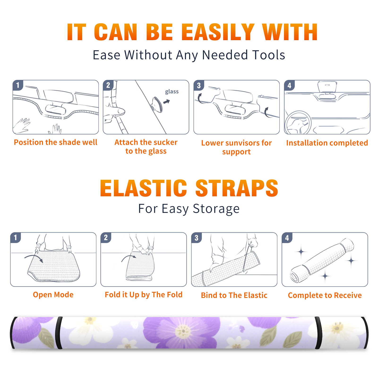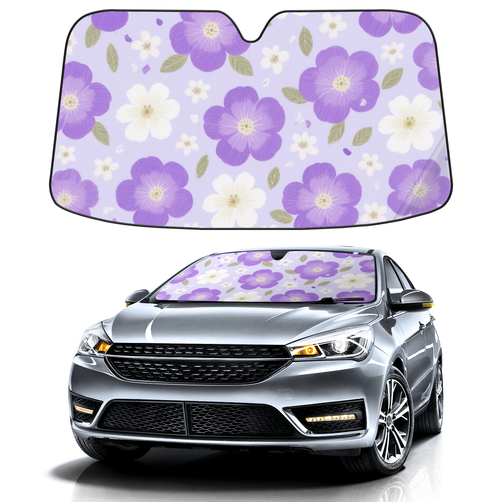 Aluminum Foil Polyester Car Sunshade Pad, Efficient Heat Insulation And Sun Protection ArtifactPurple Five-petal Flowers
