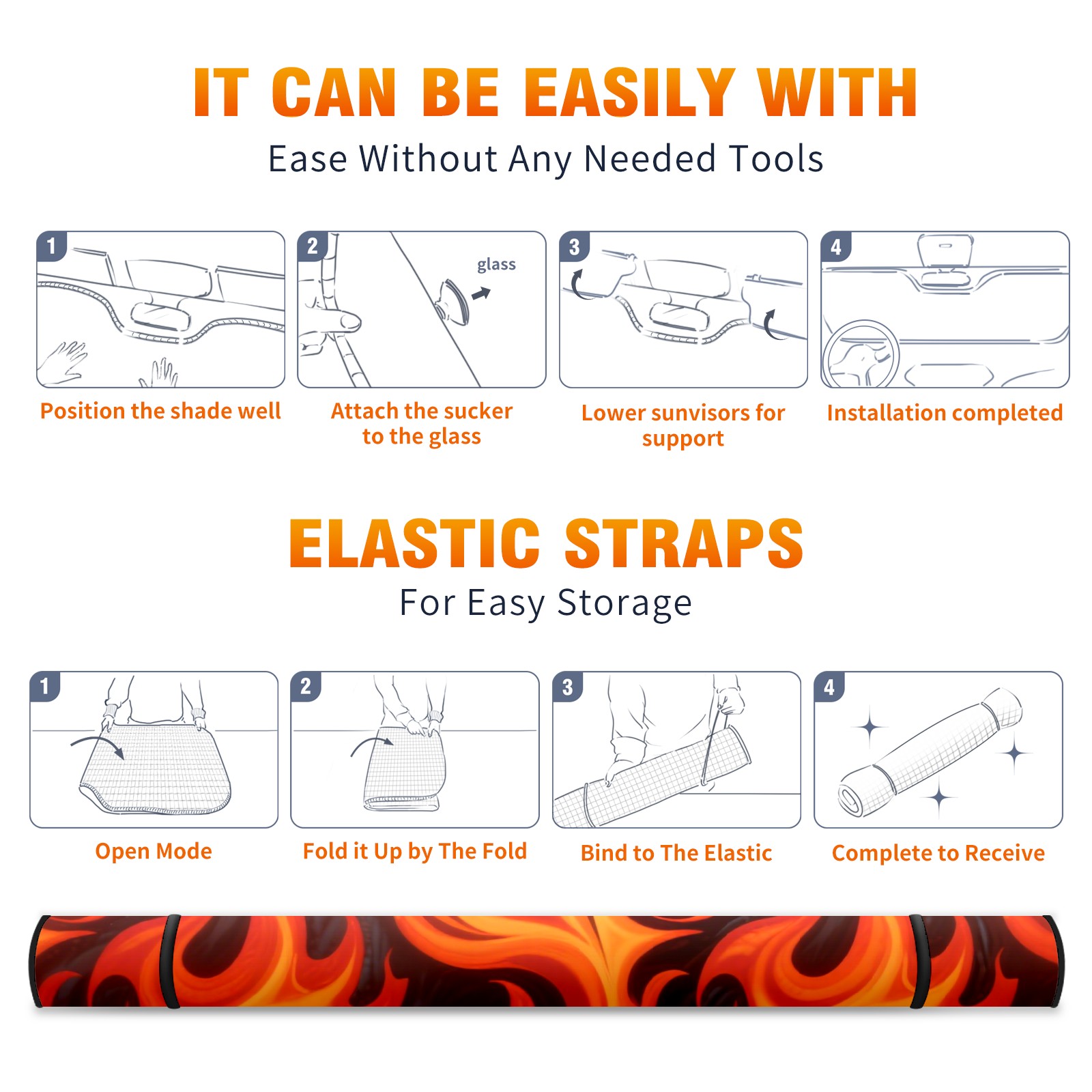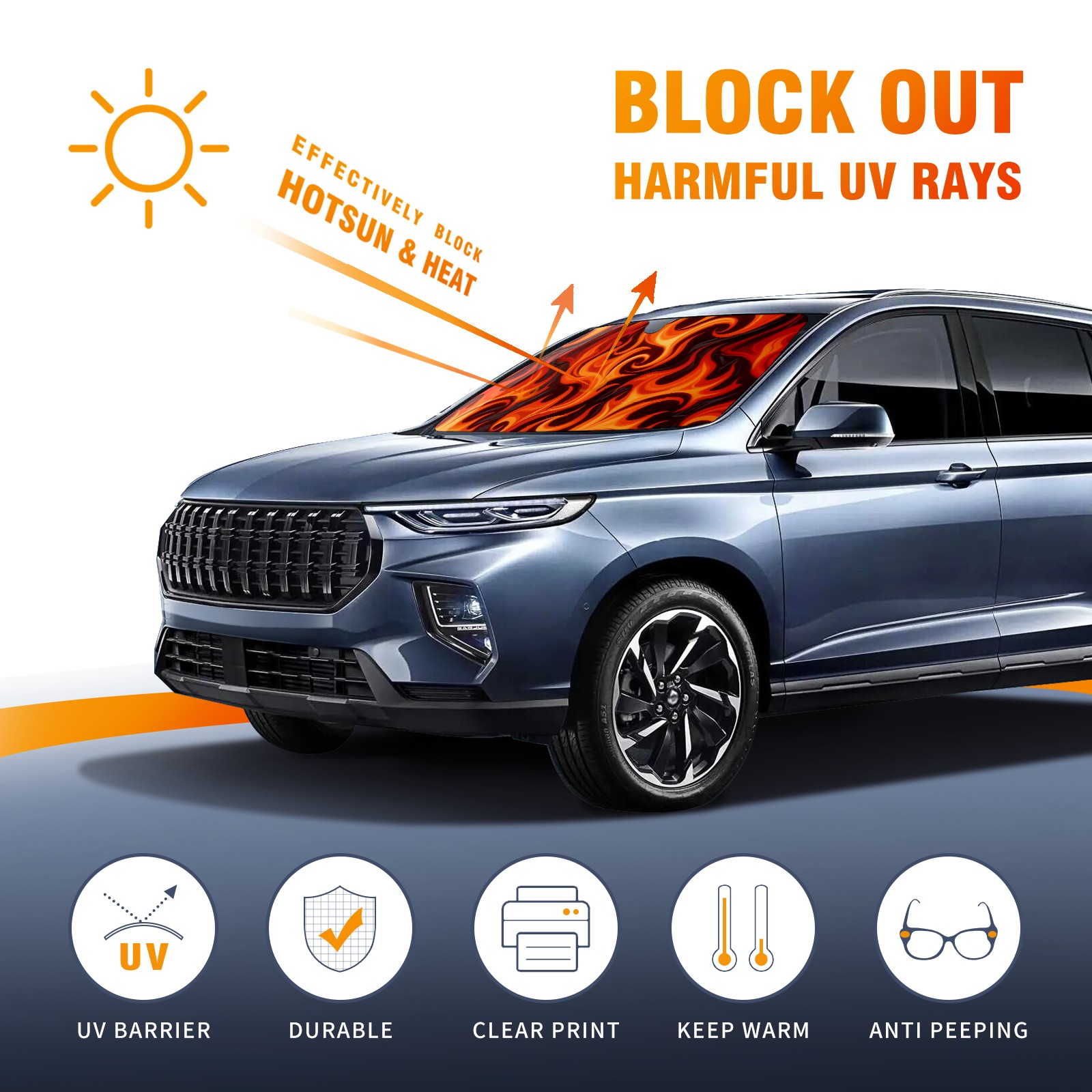 Aluminum Foil Polyester Car Sunshade Pad, Efficient Heat Insulation And Sun Protection ArtifactFlame