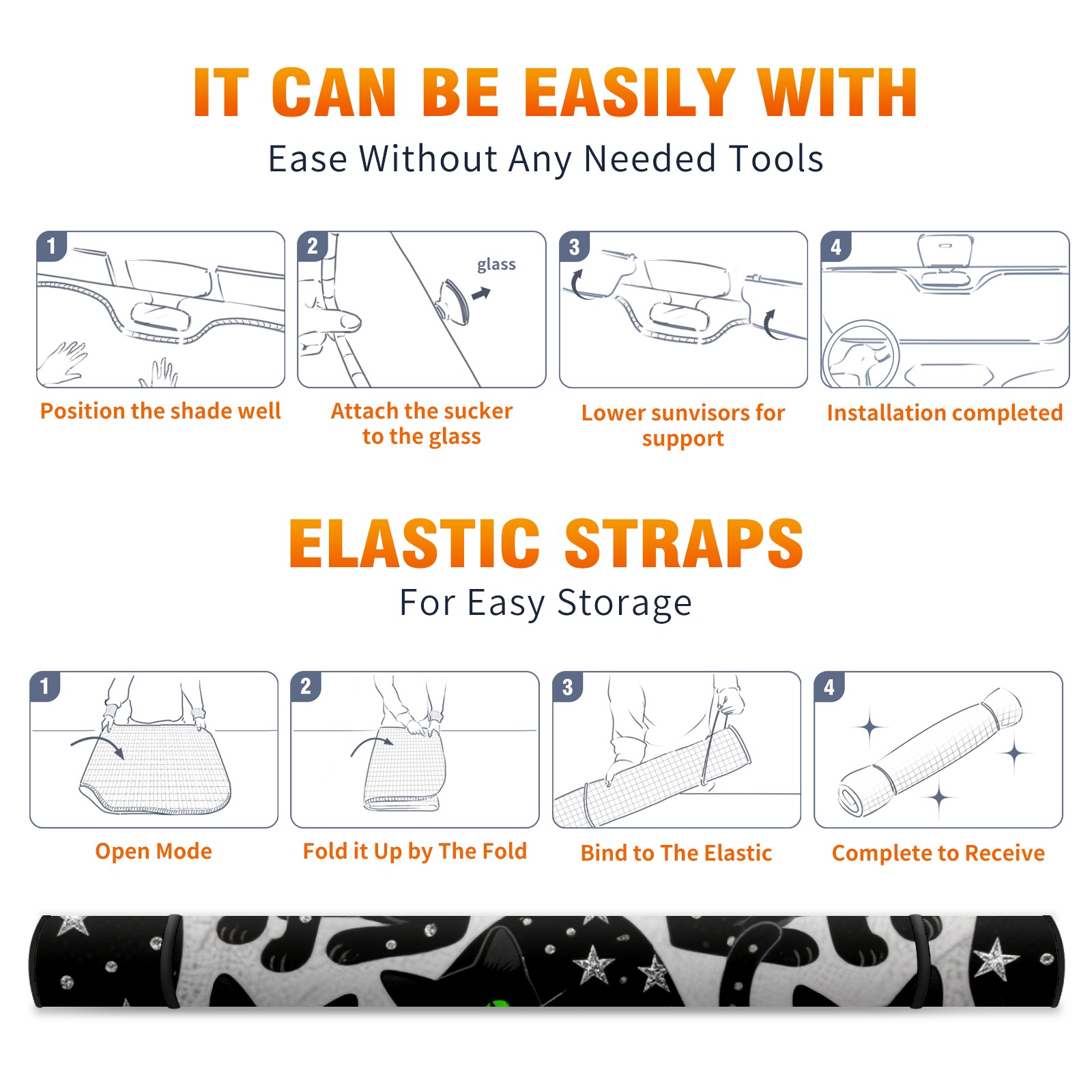 Aluminum Foil Polyester Car Sunshade Pad, Efficient Heat Insulation And Sun Protection ArtifactBlack Cat