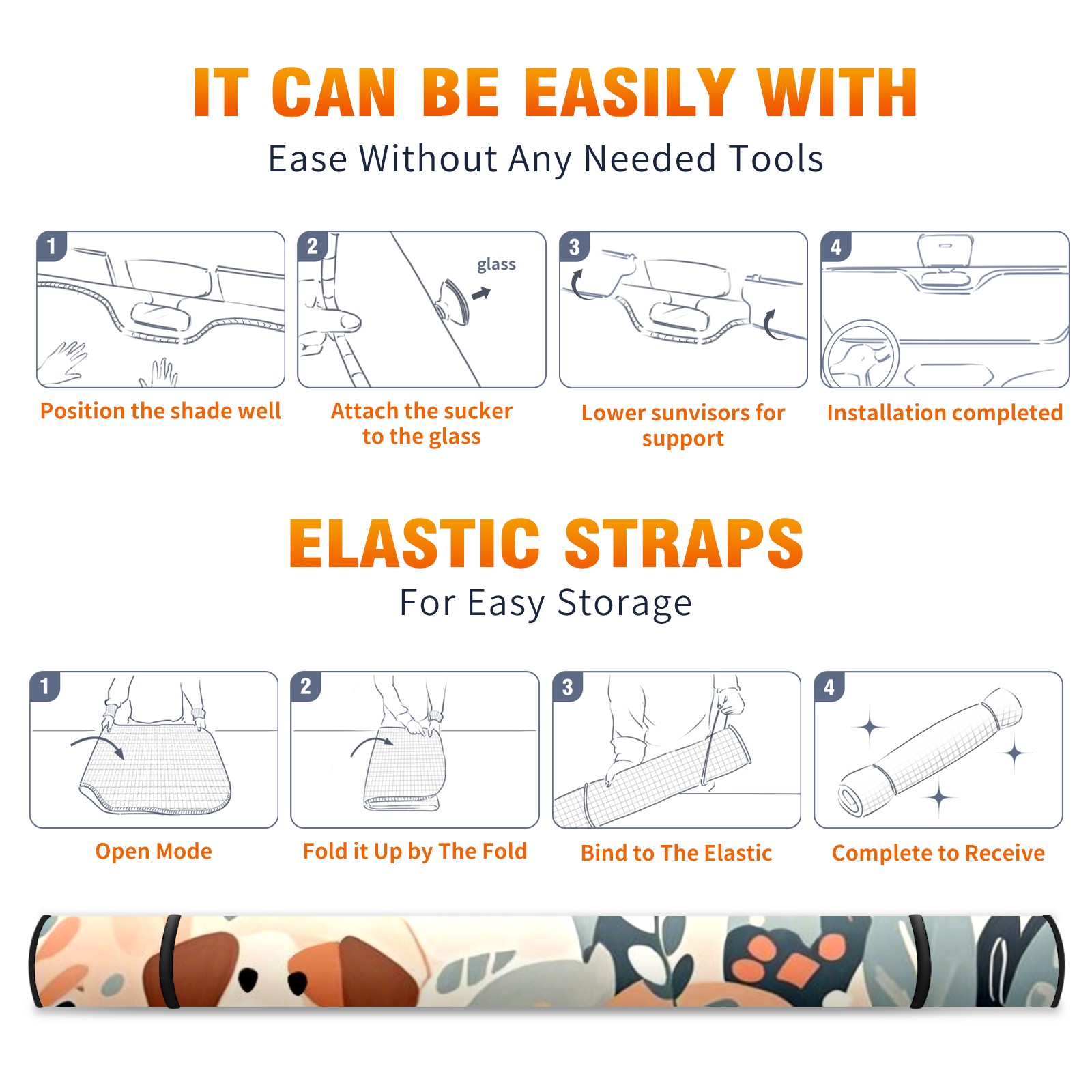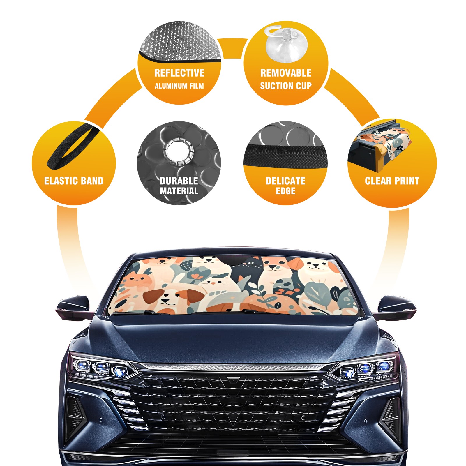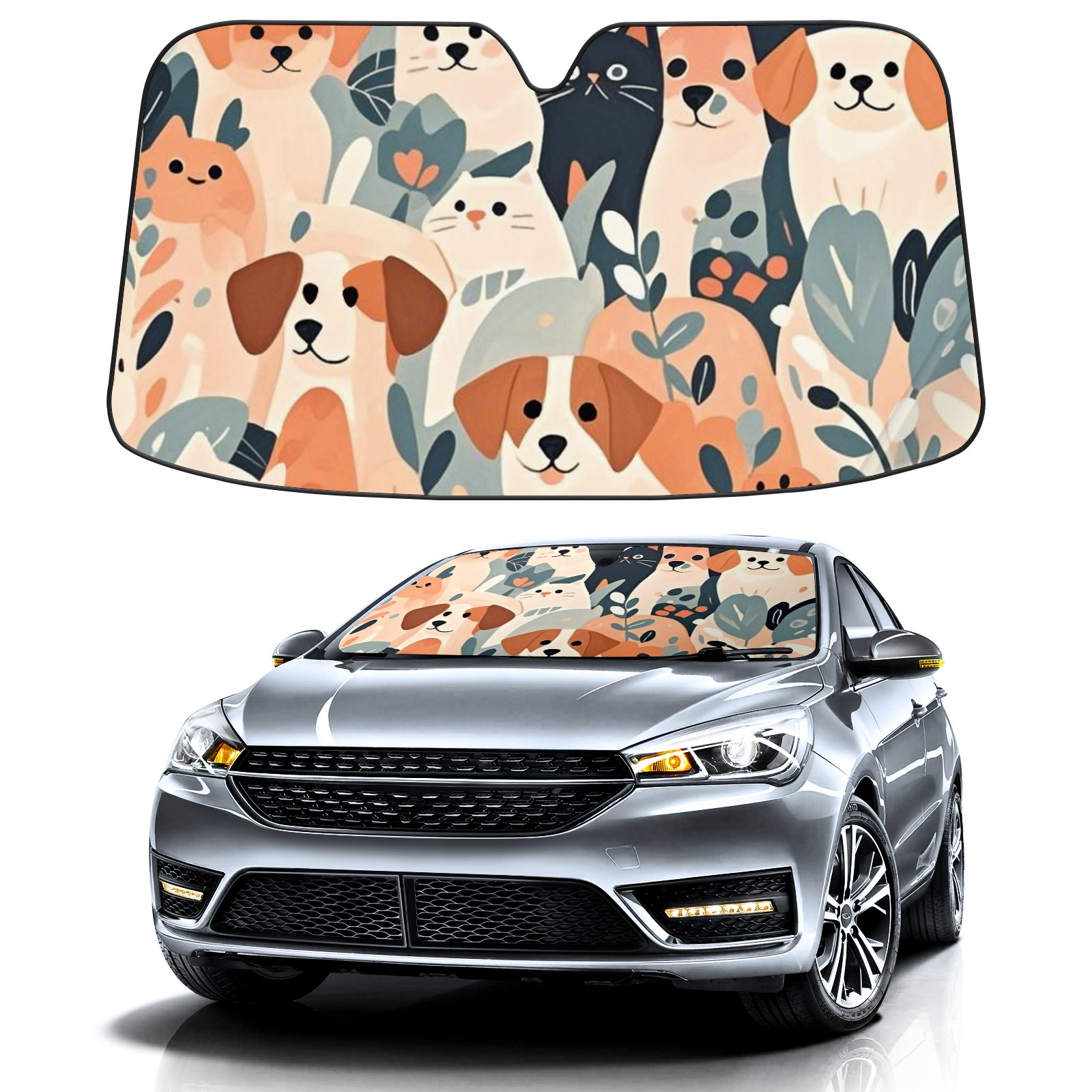 Aluminum Foil Polyester Car Sunshade Pad, Efficient Heat Insulation And Sun Protection ArtifactYellow Dog