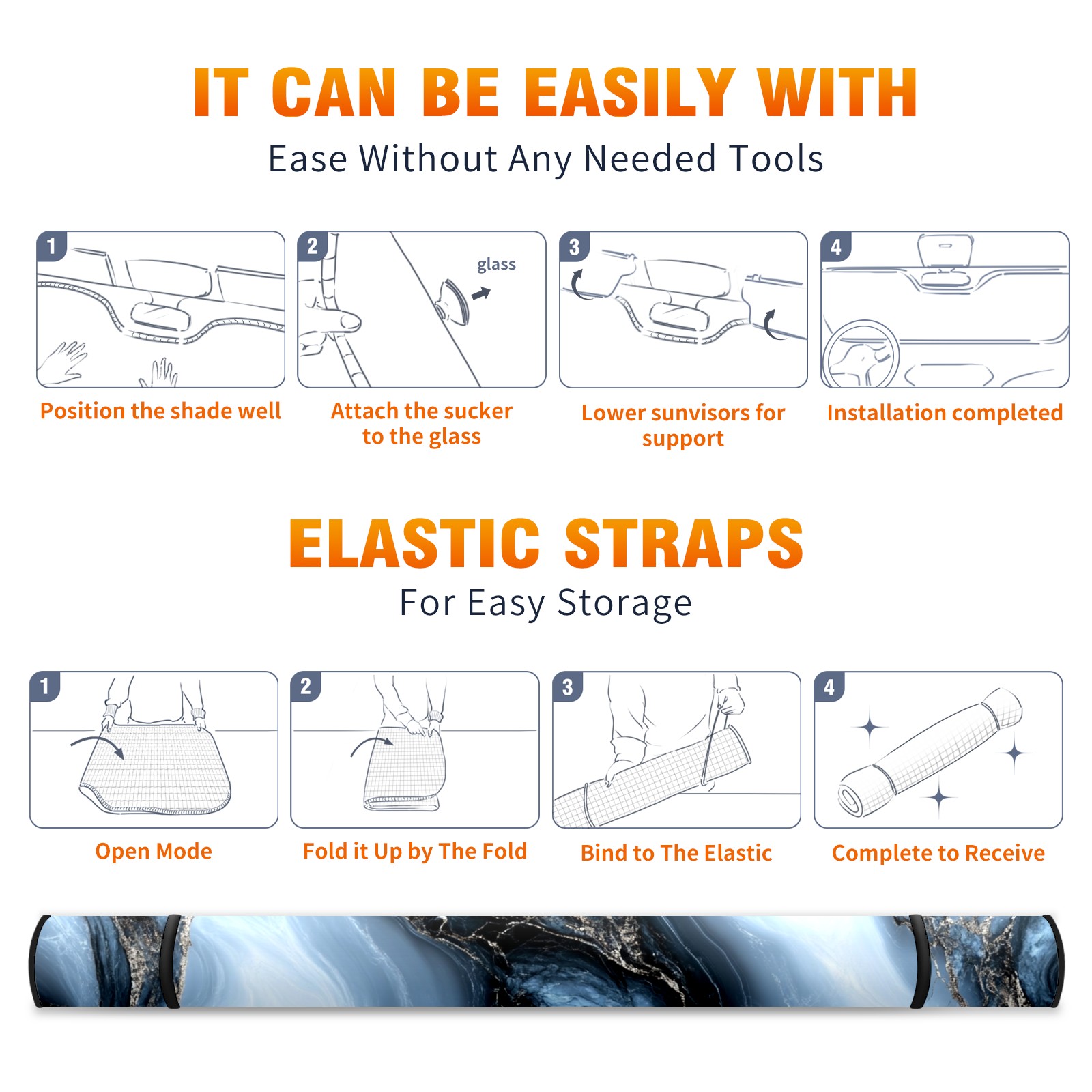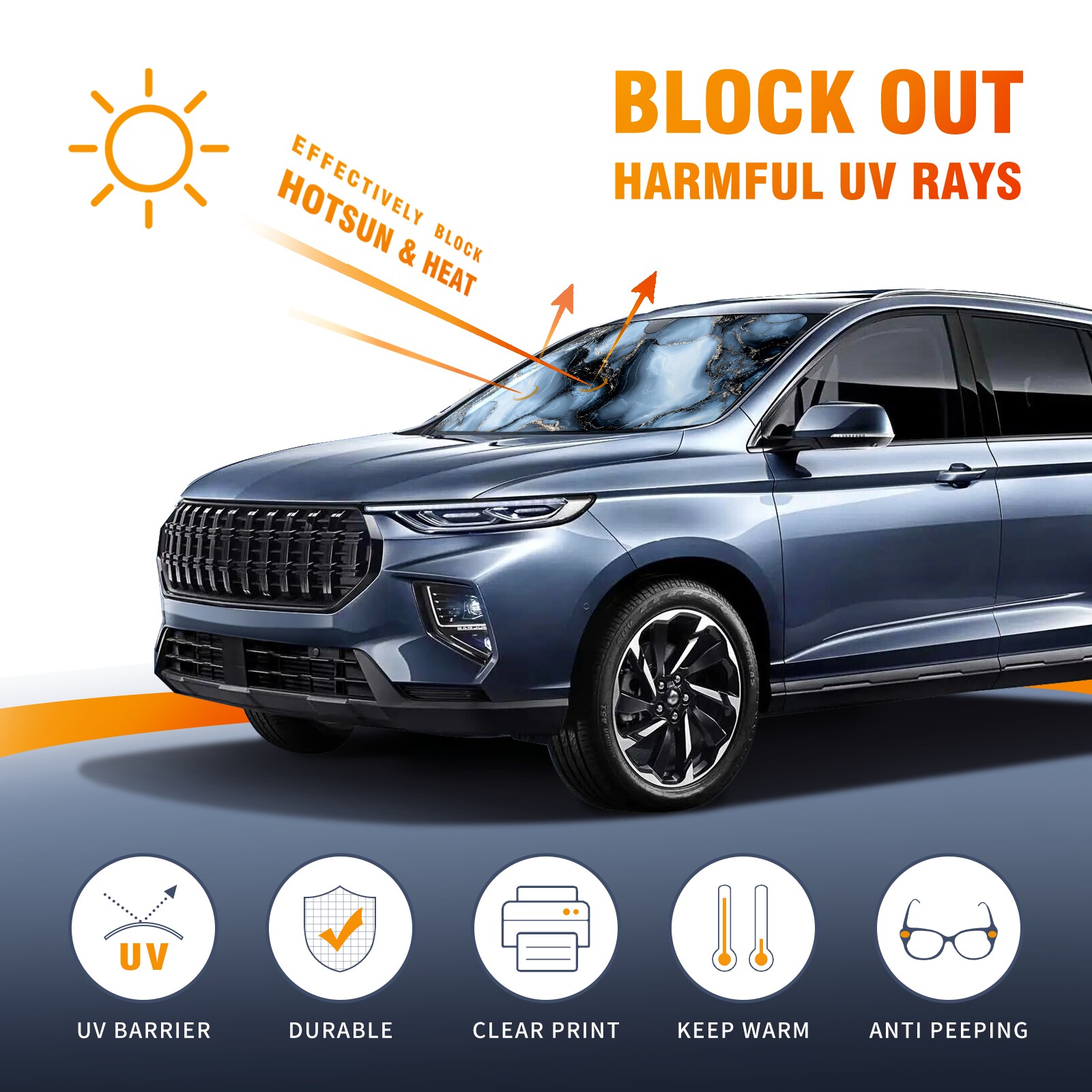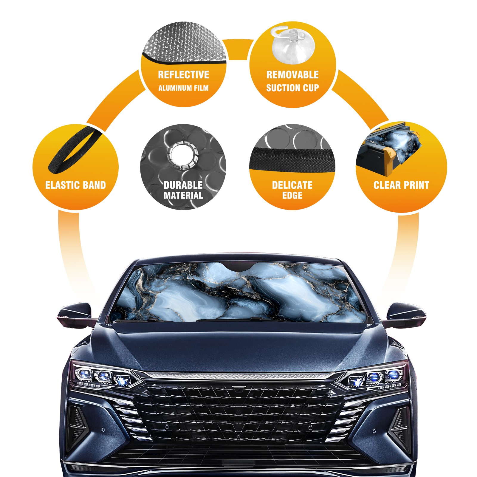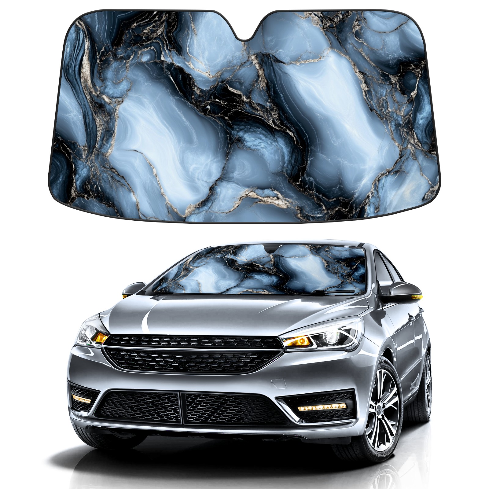 Aluminum Foil Polyester Car Sunshade Pad, Efficient Heat Insulation And Sun Protection ArtifactDark Gray Marble
