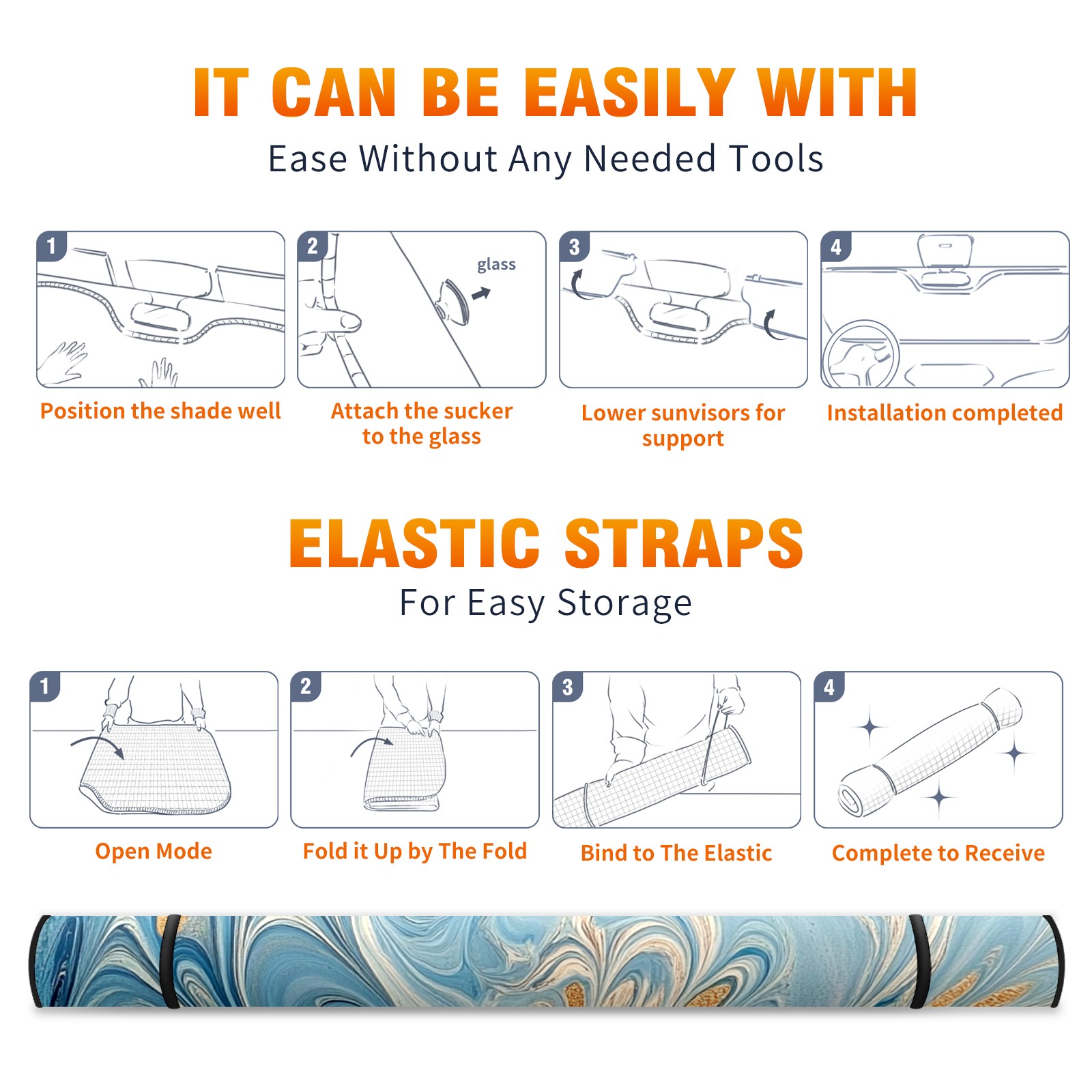 • <p>This car sunshade pad is made of a high-quality combination of aluminum foil and polyester, reinforced with transparent adhesive. It measures 140x76cm (55inx30in) and is a practical choice for protecting your car. Its powerful UV protection function can effectively block harmful light, prevent the car interior from aging due to exposure to sunlight, and maintain the dashboard, steering wheel, and seats in a brand new state.<br></p>