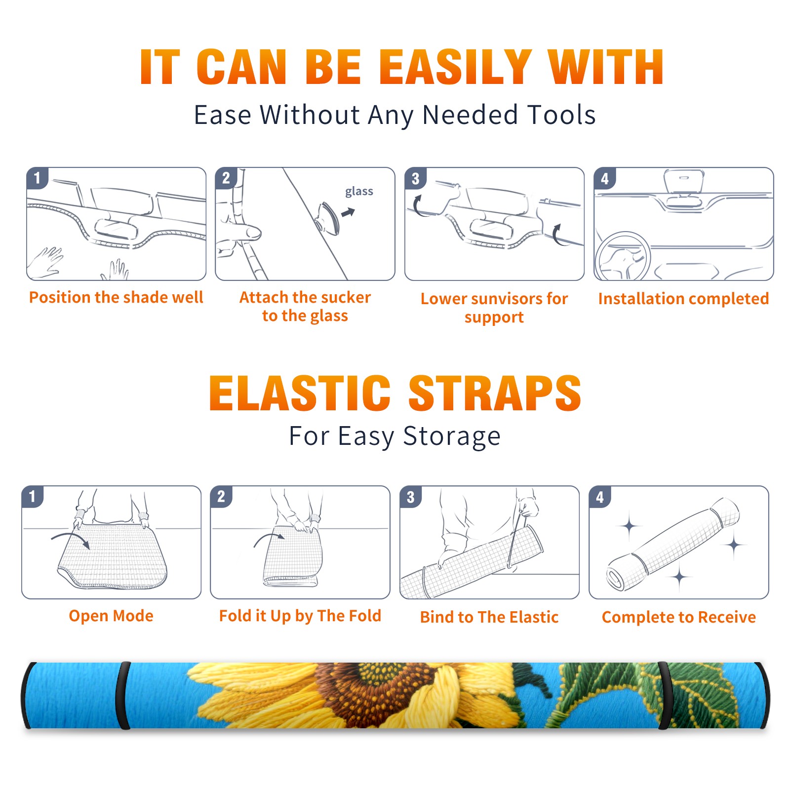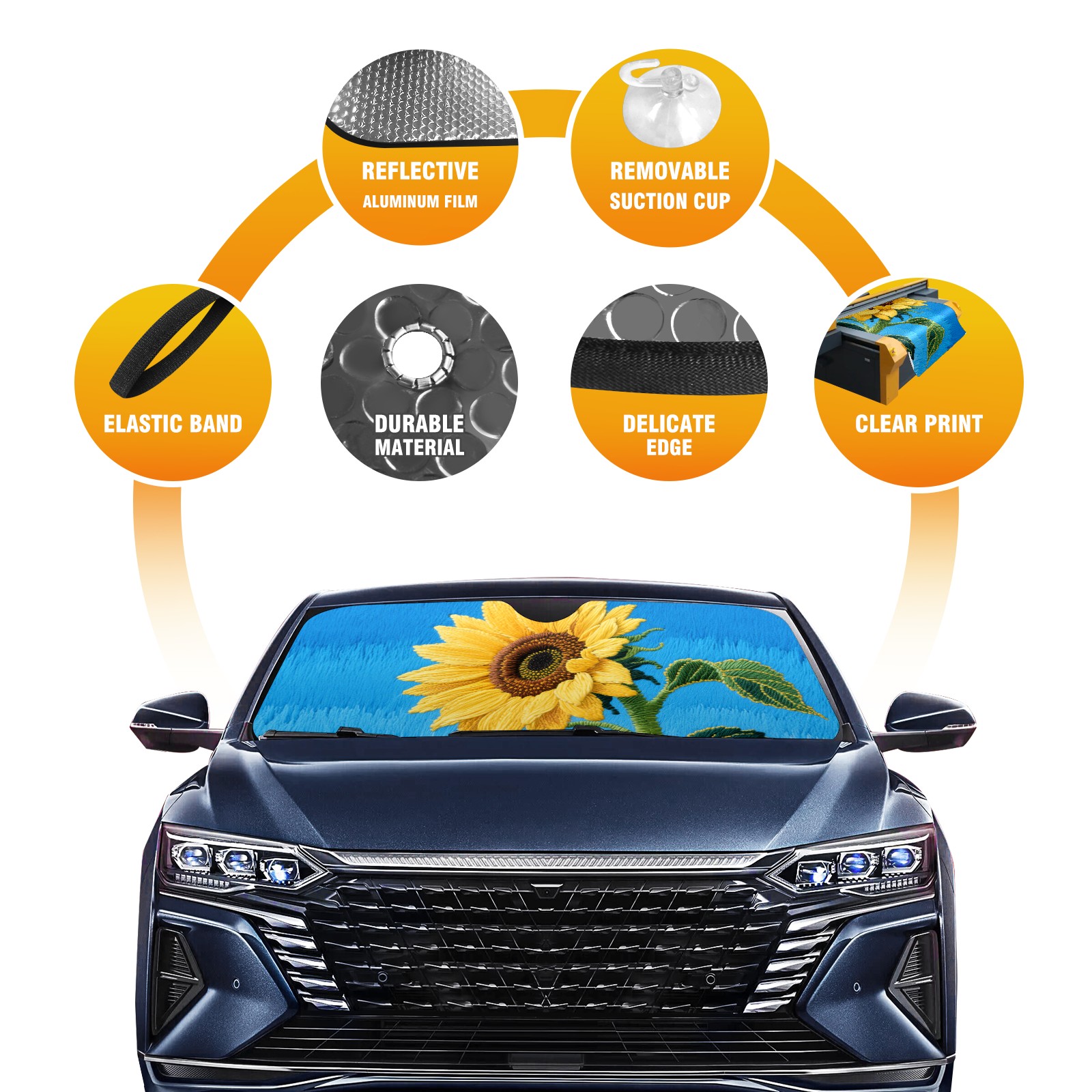 Aluminum Foil Polyester Car Sunshade Pad, Efficient Heat Insulation And Sun Protection ArtifactYellow Sunflower