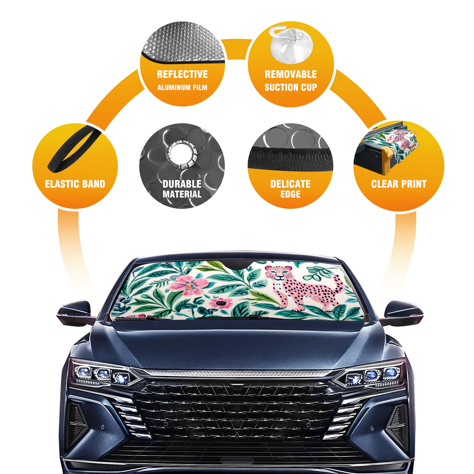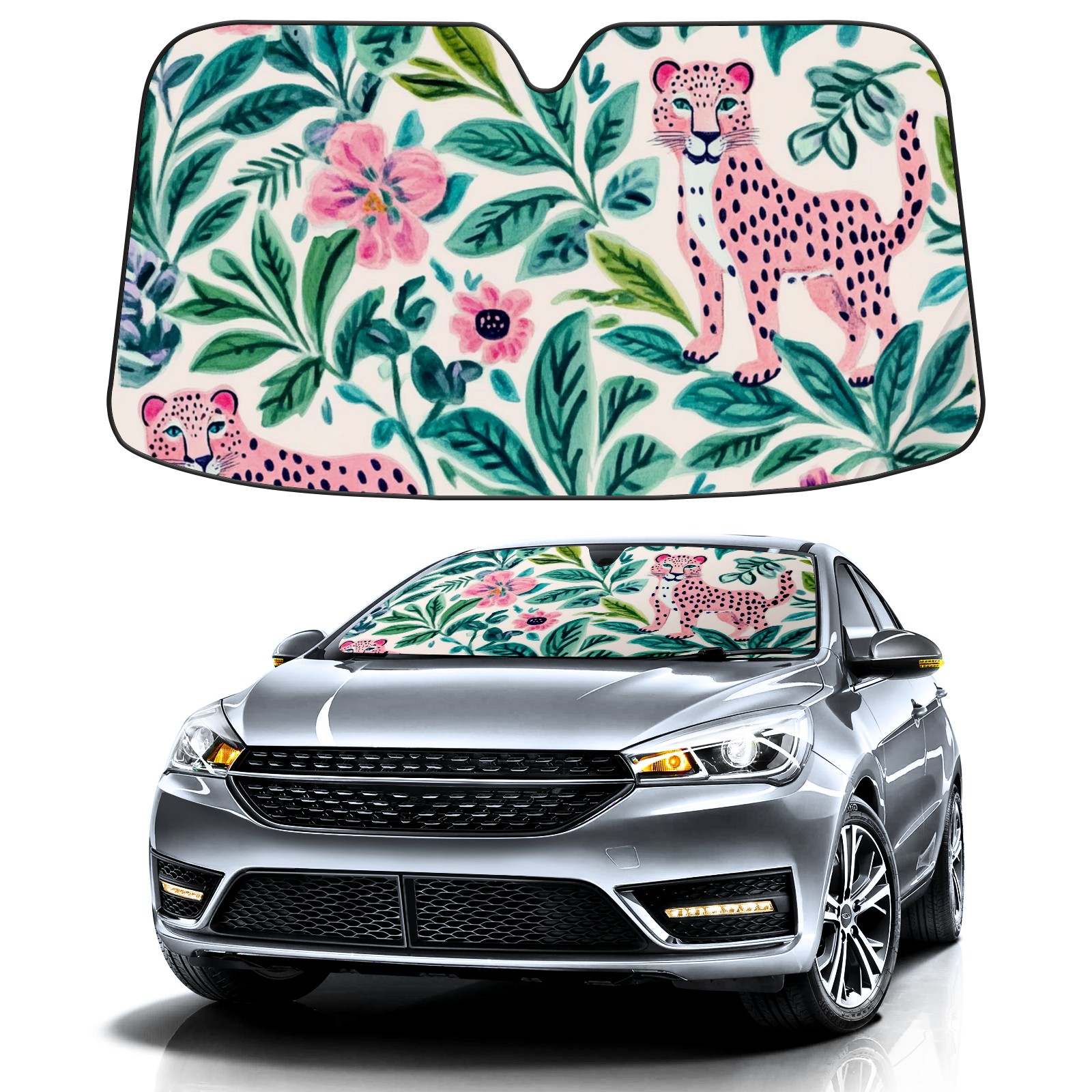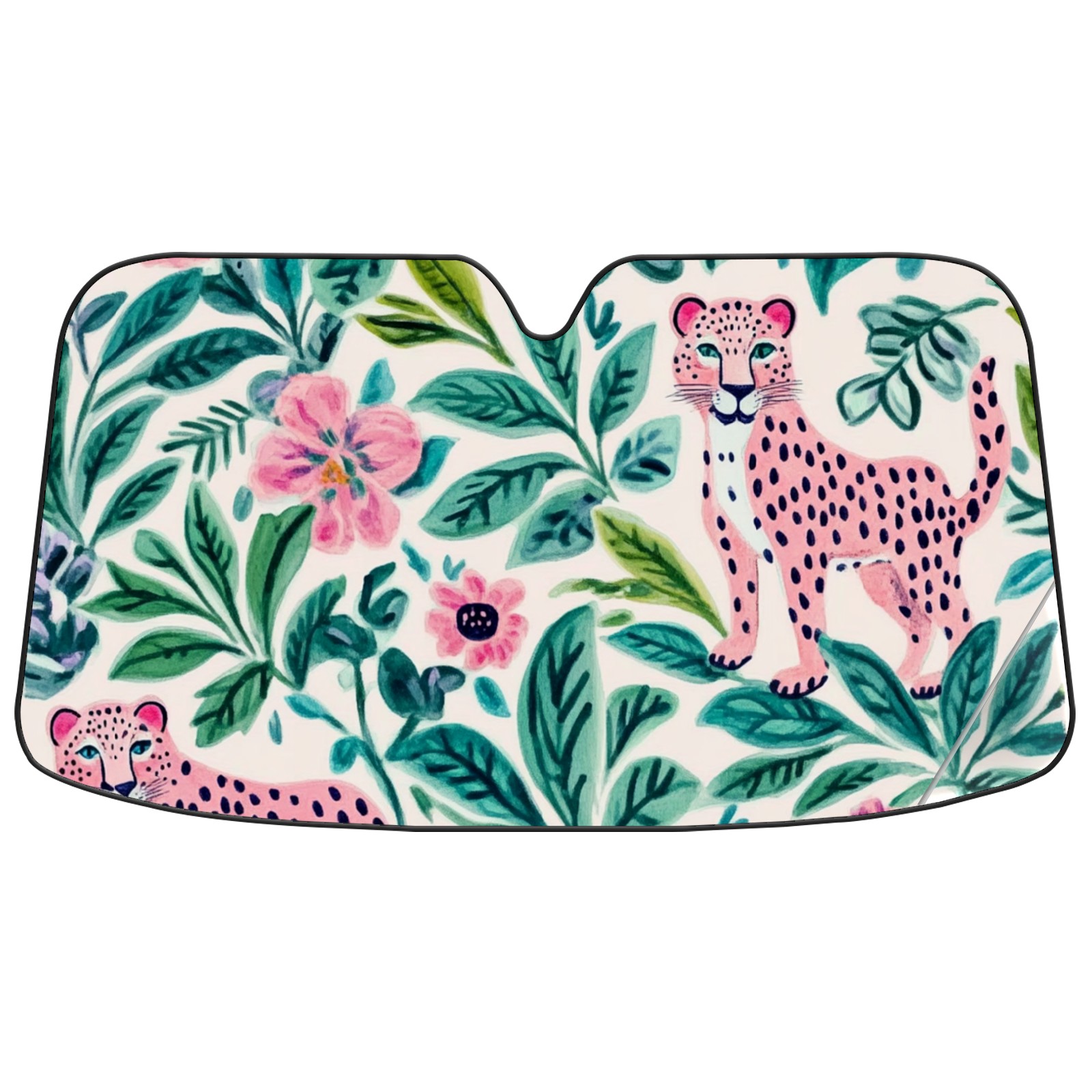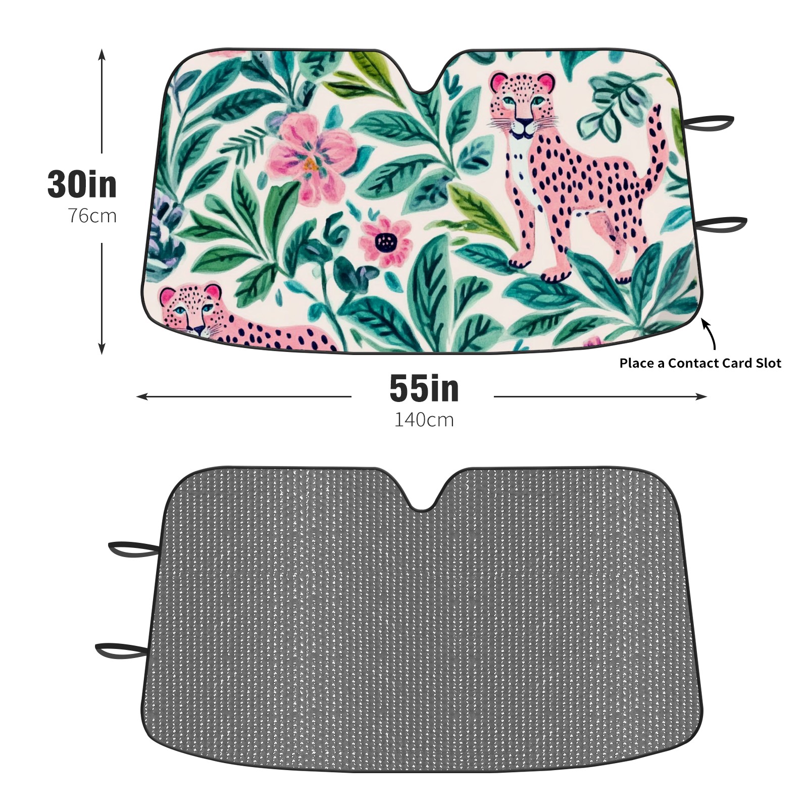 Aluminum Foil Polyester Car Sunshade Pad, Efficient Heat Insulation And Sun Protection ArtifactPink Cheetahs