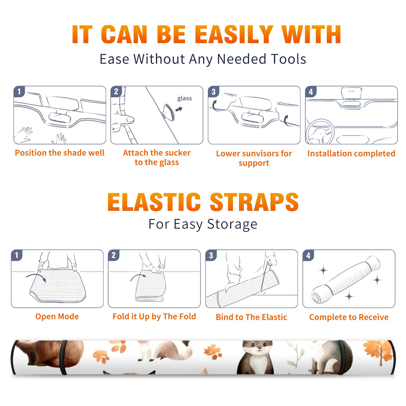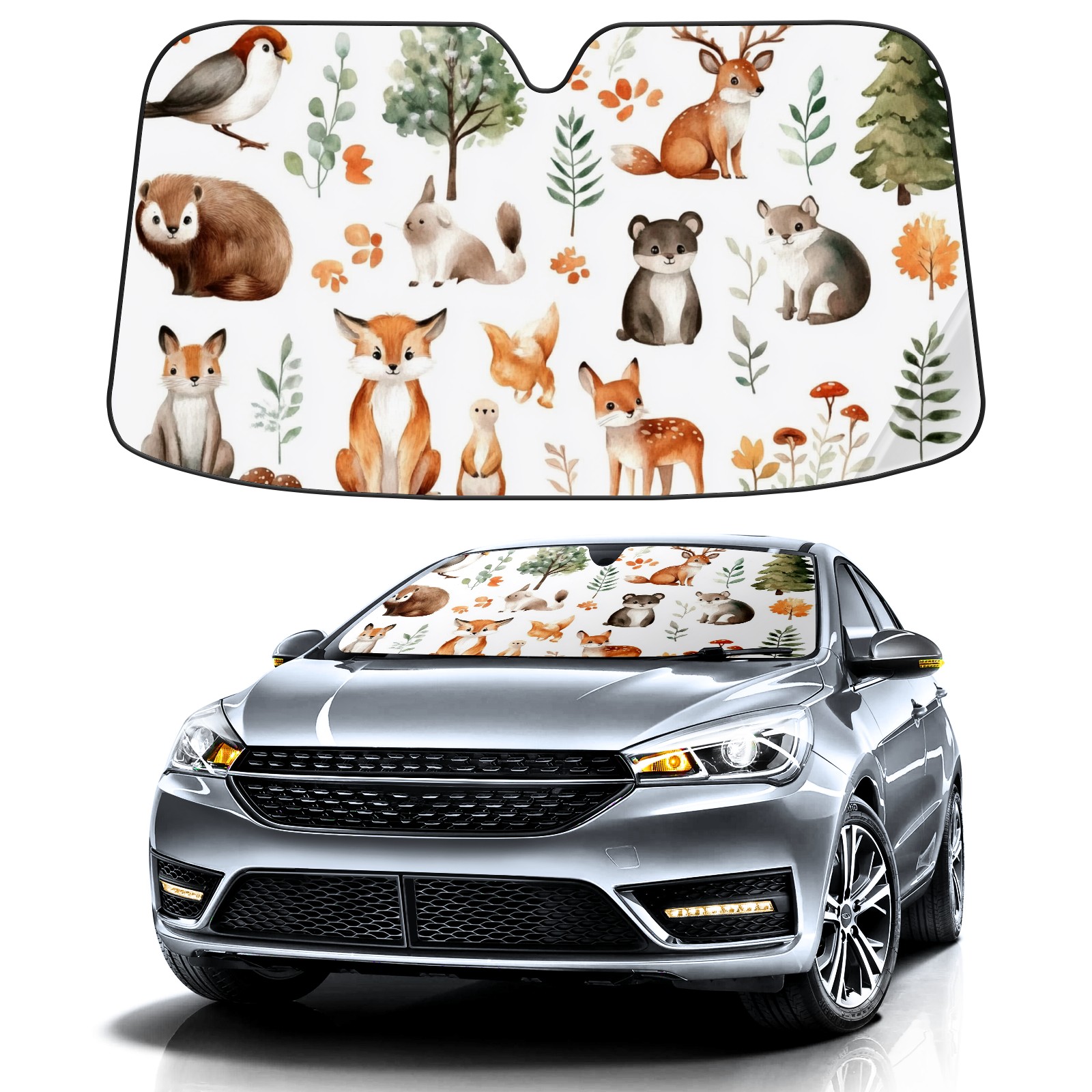 Aluminum Foil Polyester Car Sunshade Pad, Efficient Heat Insulation And Sun Protection ArtifactForest Animals