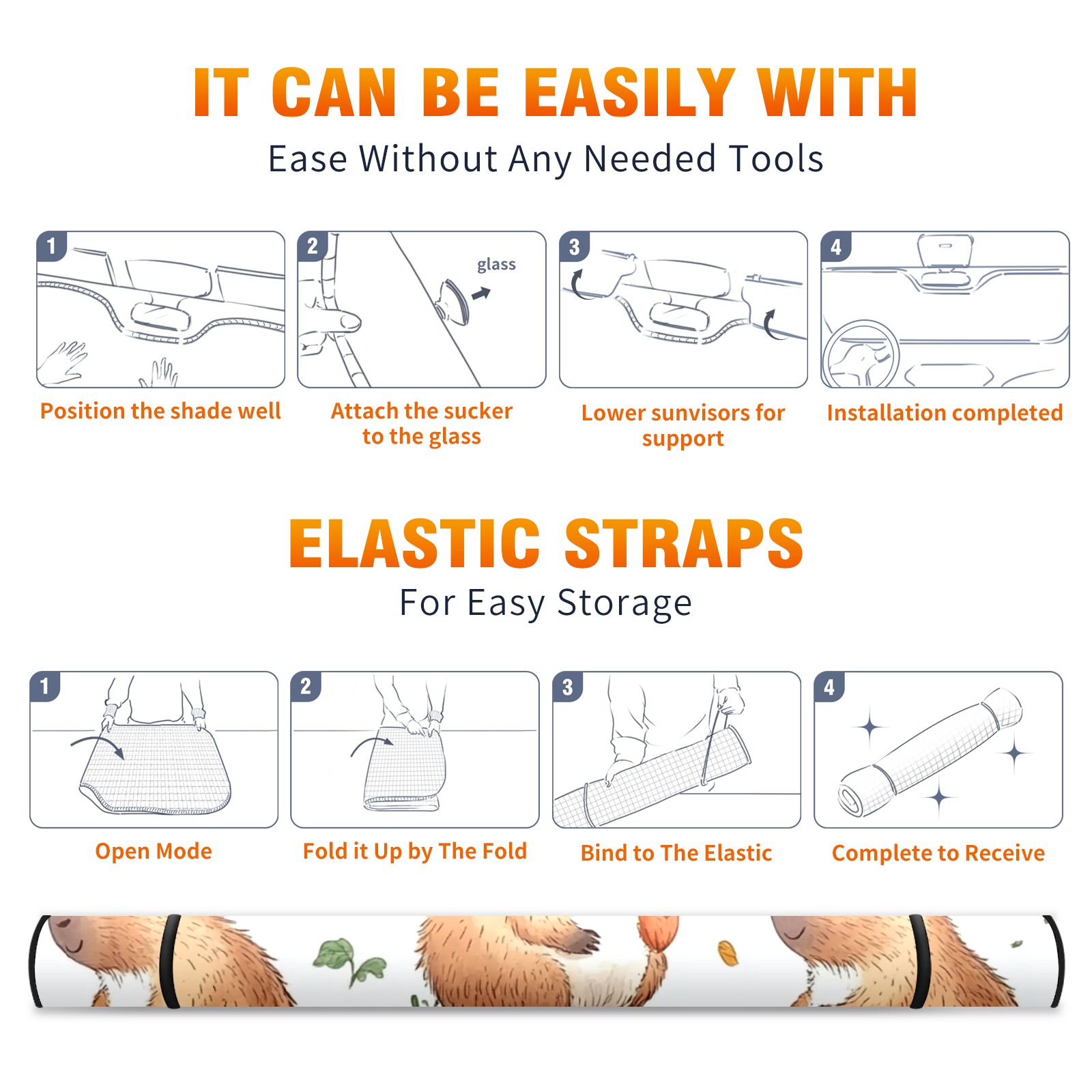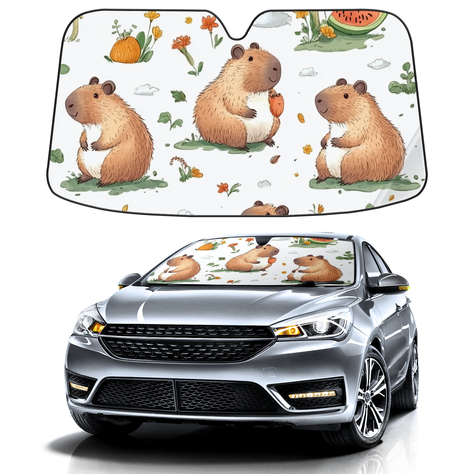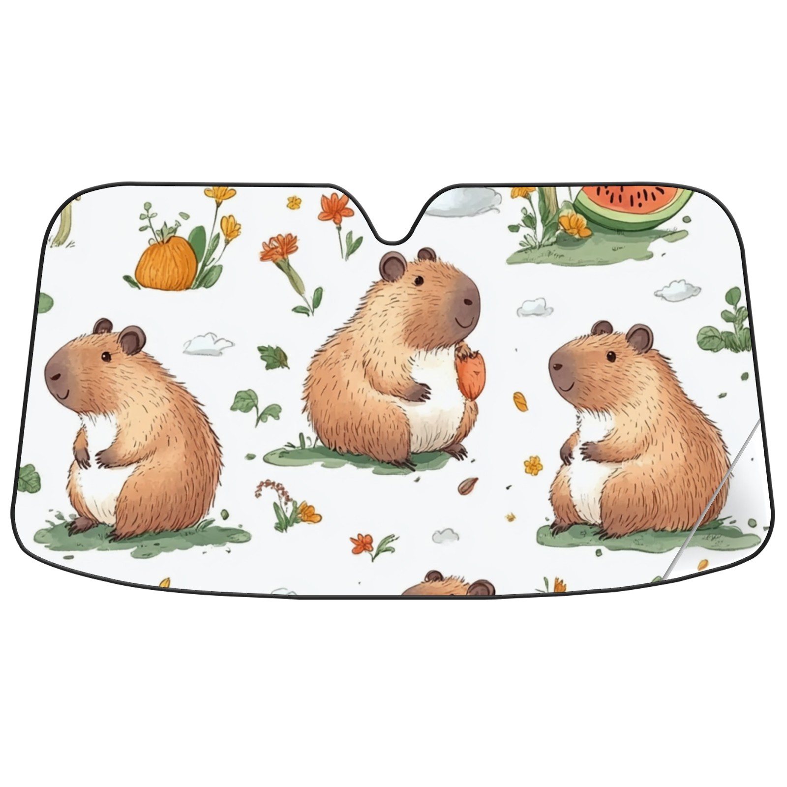 Aluminum Foil Polyester Car Sunshade Pad, Efficient Heat Insulation And Sun Protection ArtifactCute Capybara