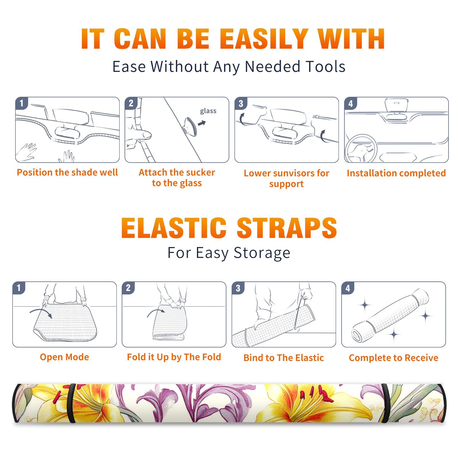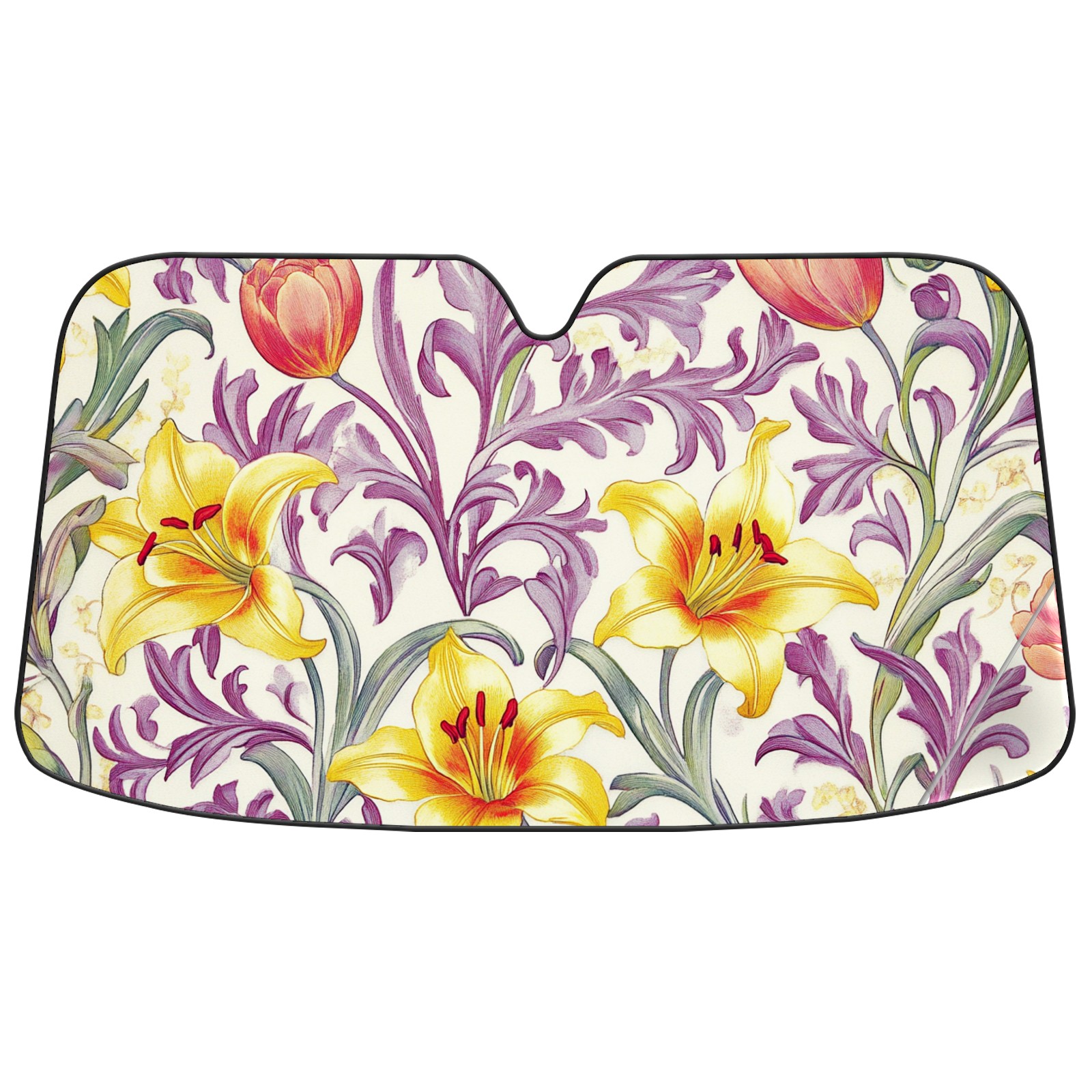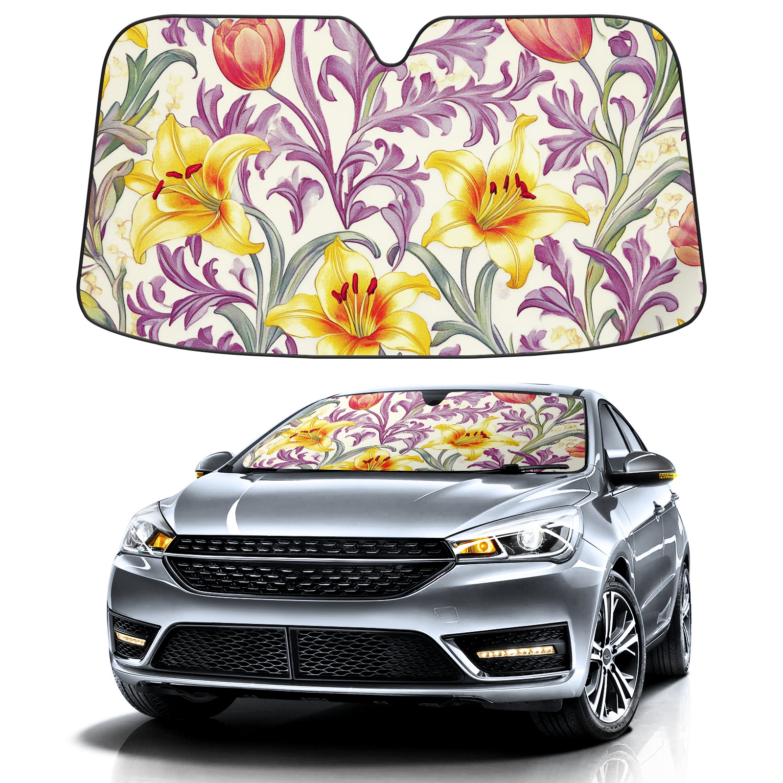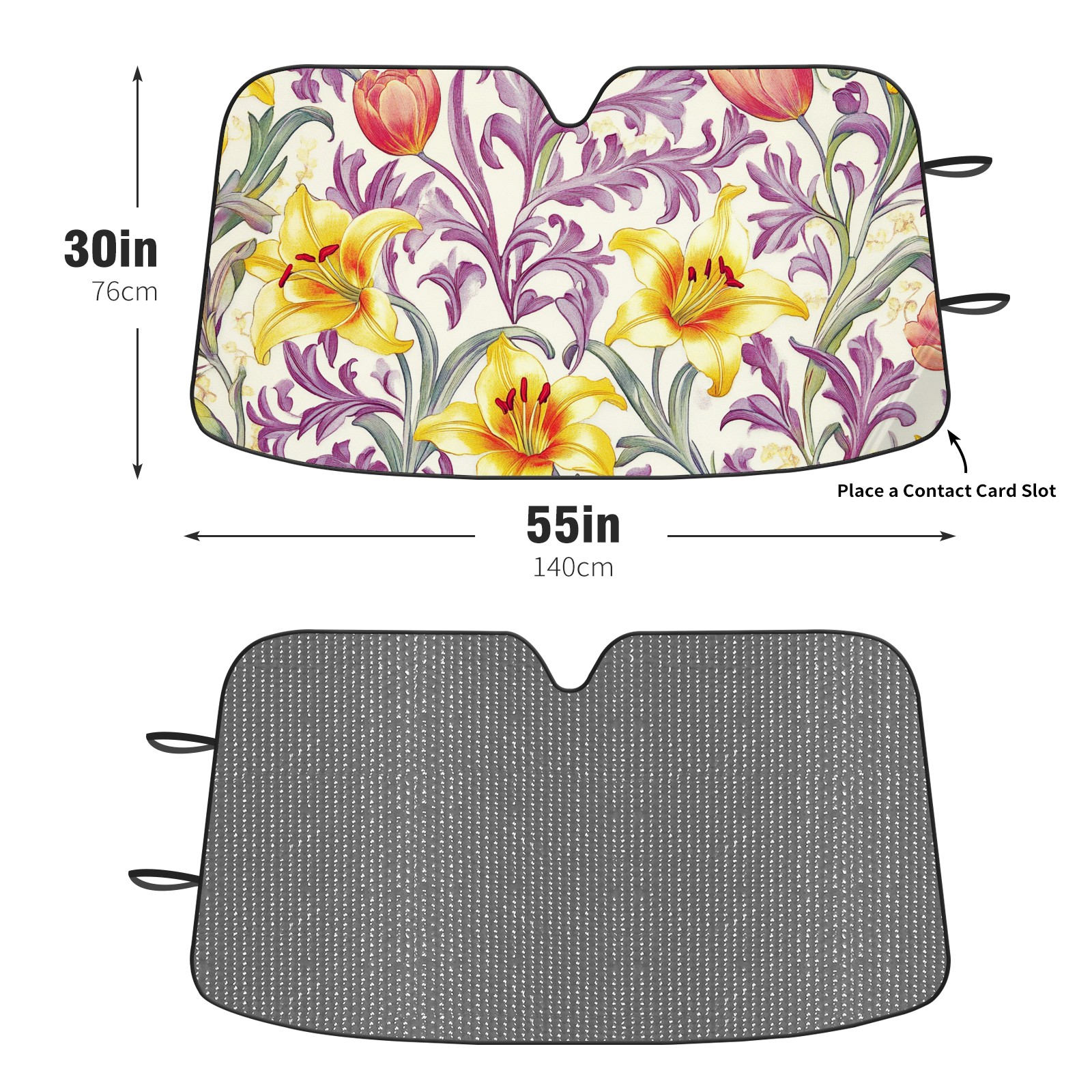 Aluminum Foil Polyester Car Sunshade Pad, Efficient Heat Insulation And Sun Protection ArtifactYellow Lily