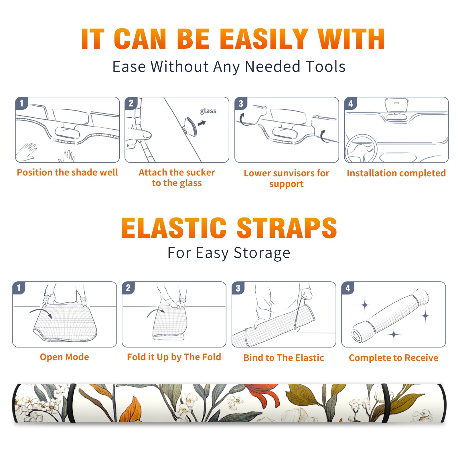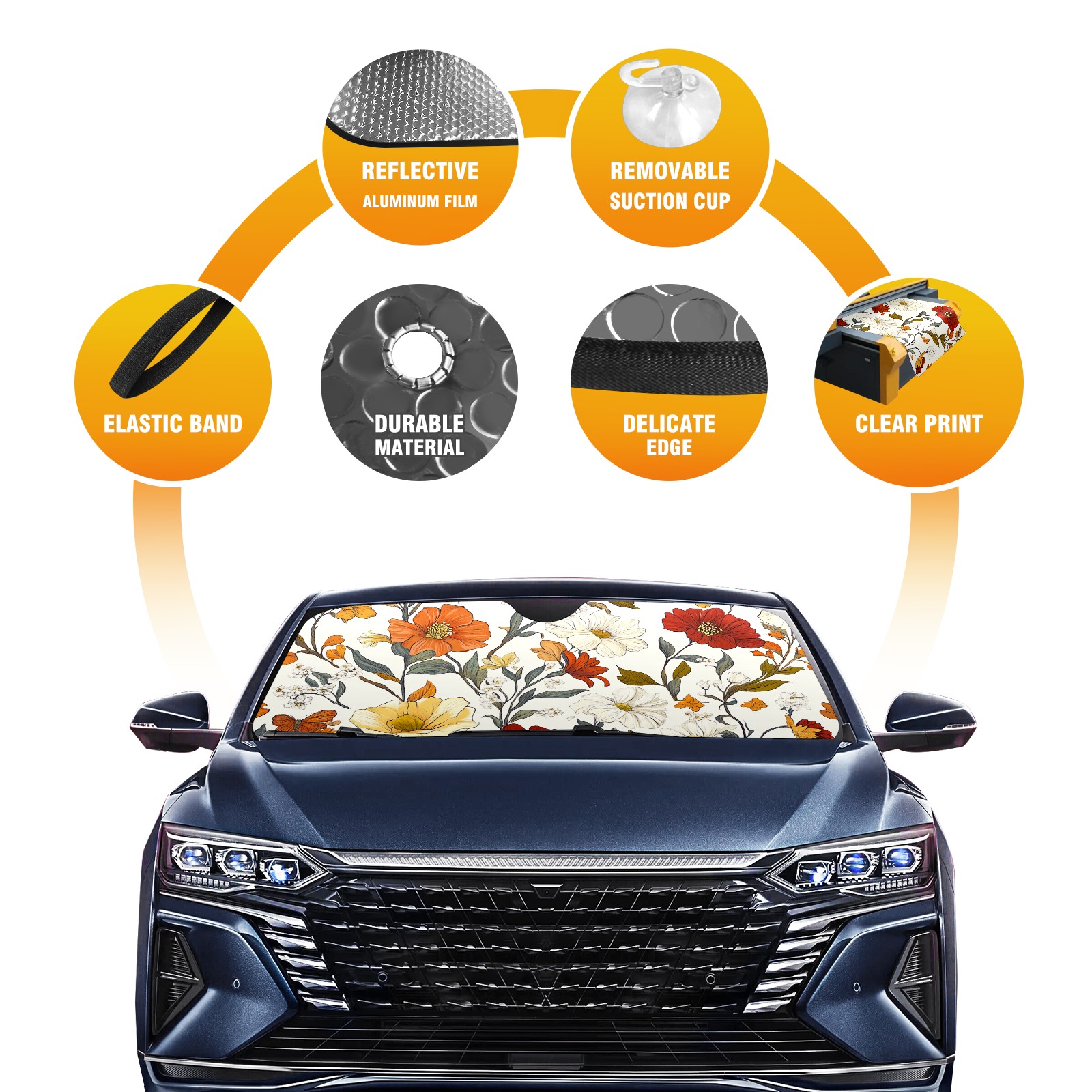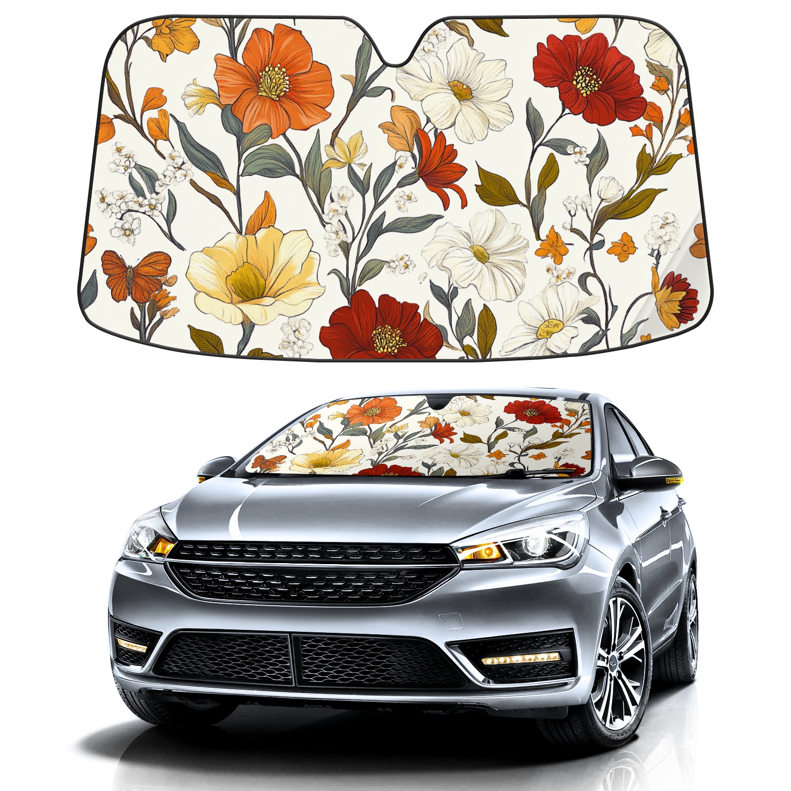 Aluminum Foil Polyester Car Sunshade Pad, Efficient Heat Insulation And Sun Protection ArtifactVintage-inspired Floral