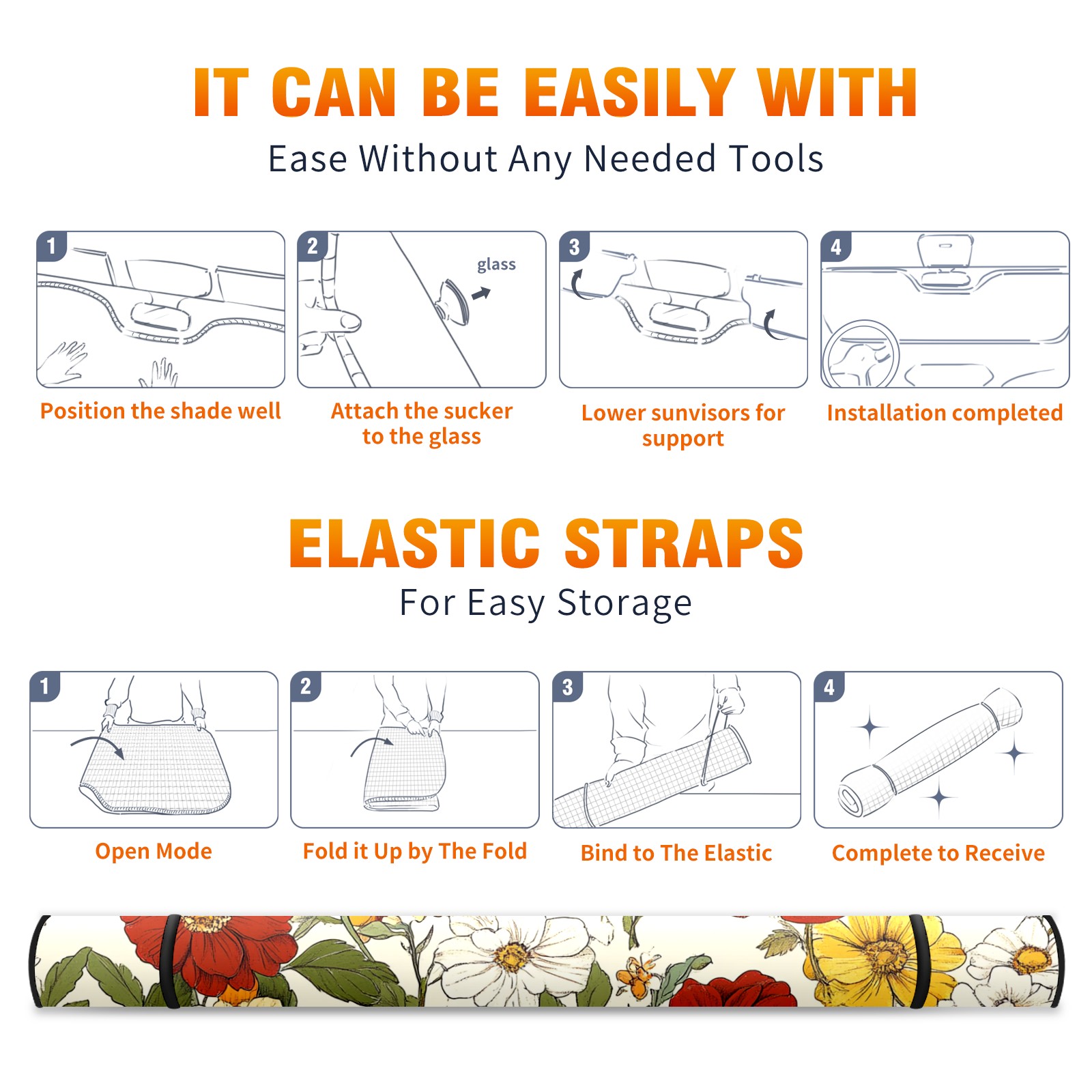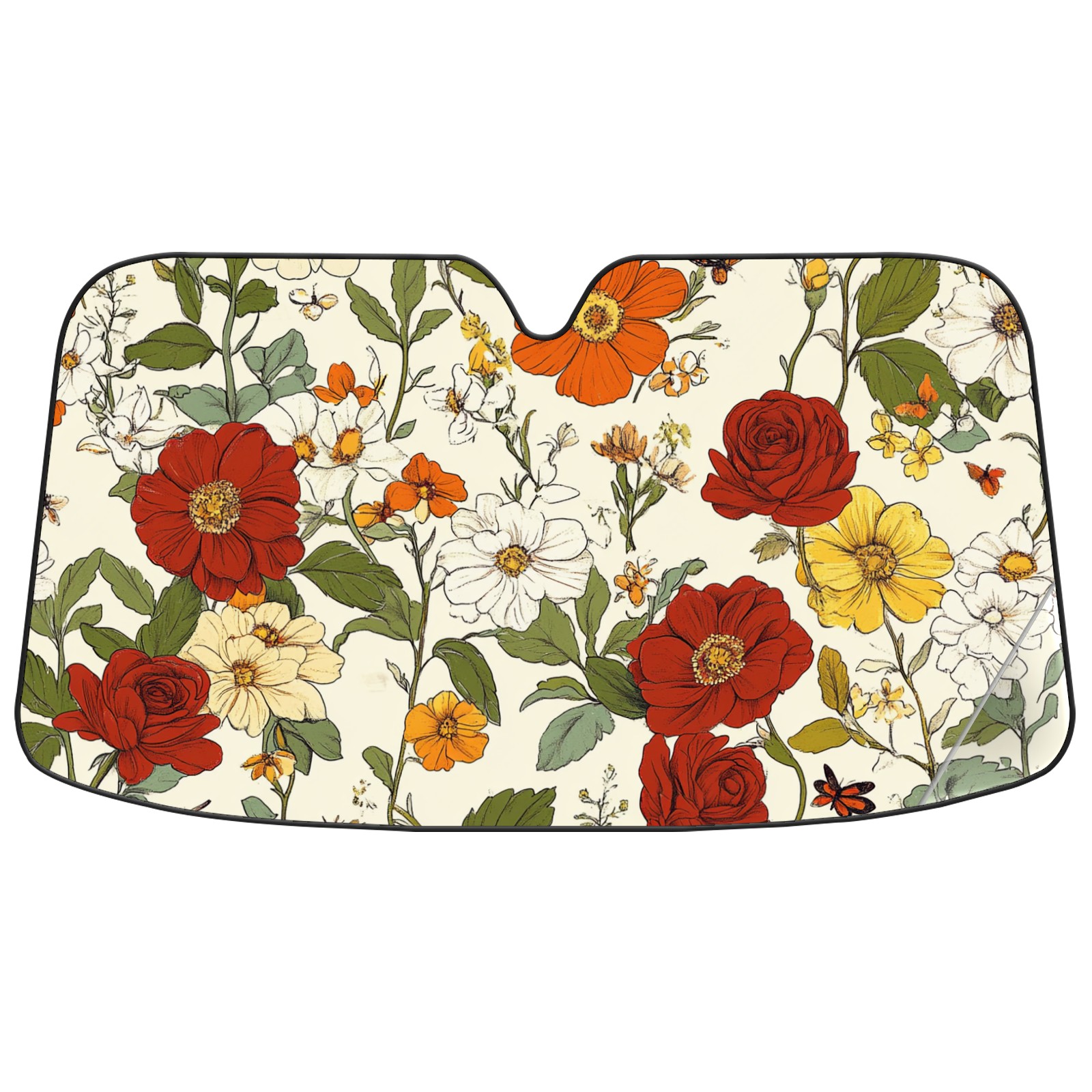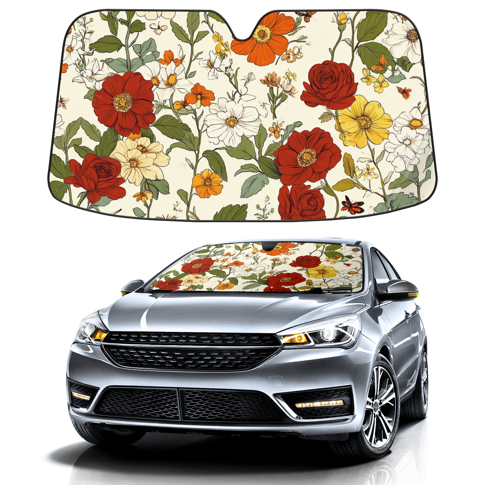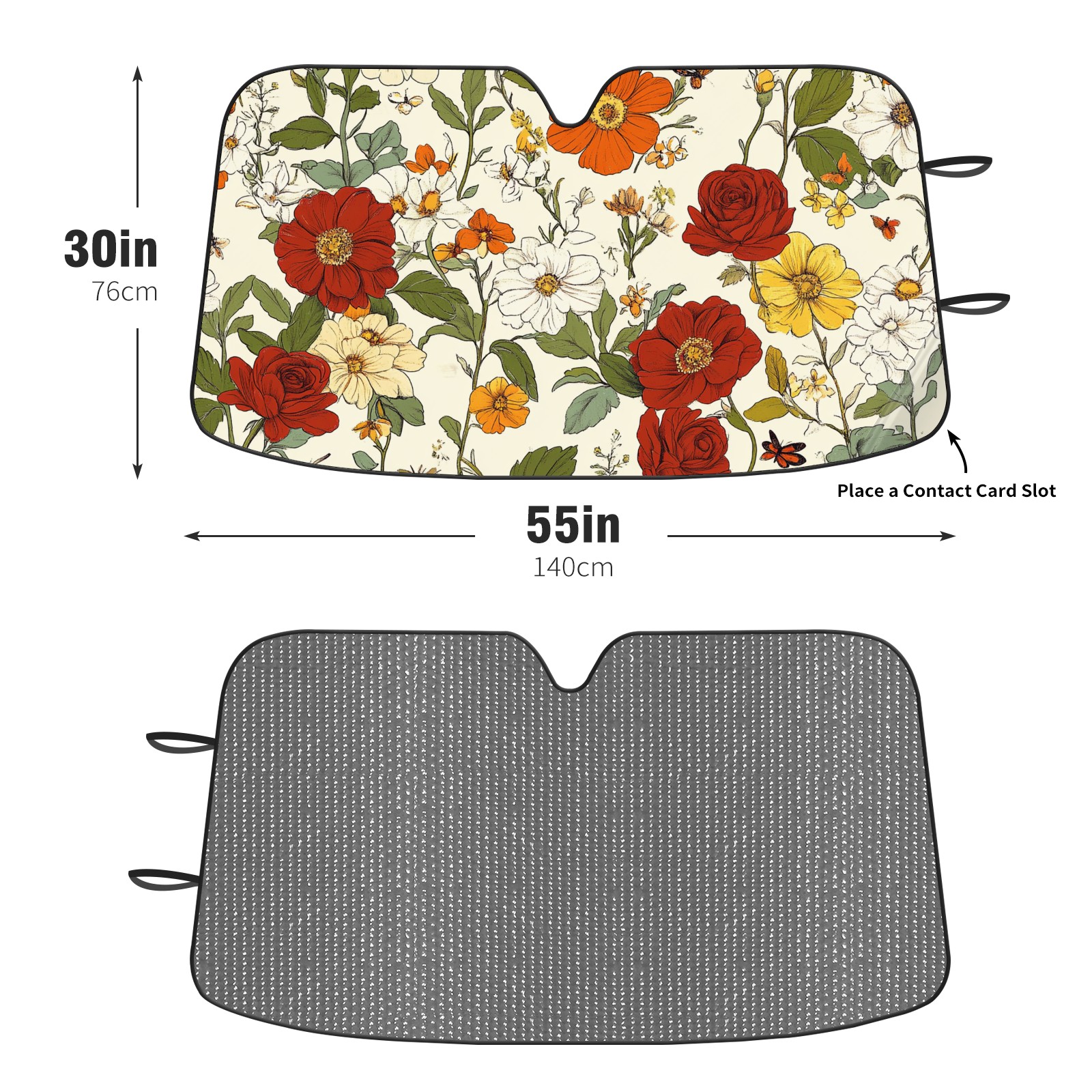 Aluminum Foil Polyester Car Sunshade Pad, Efficient Heat Insulation And Sun Protection ArtifactVintage Red Floral