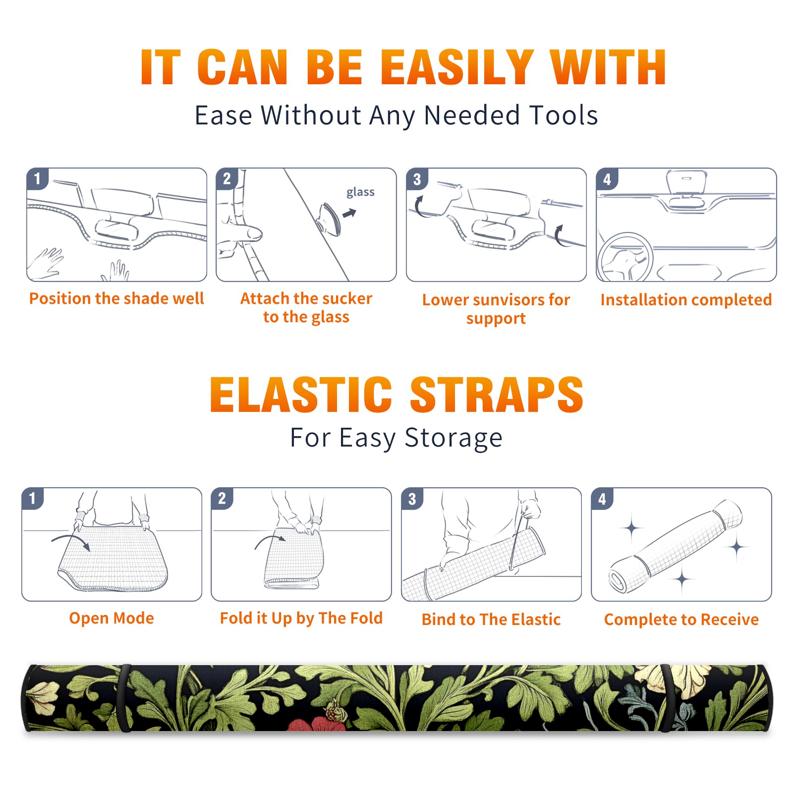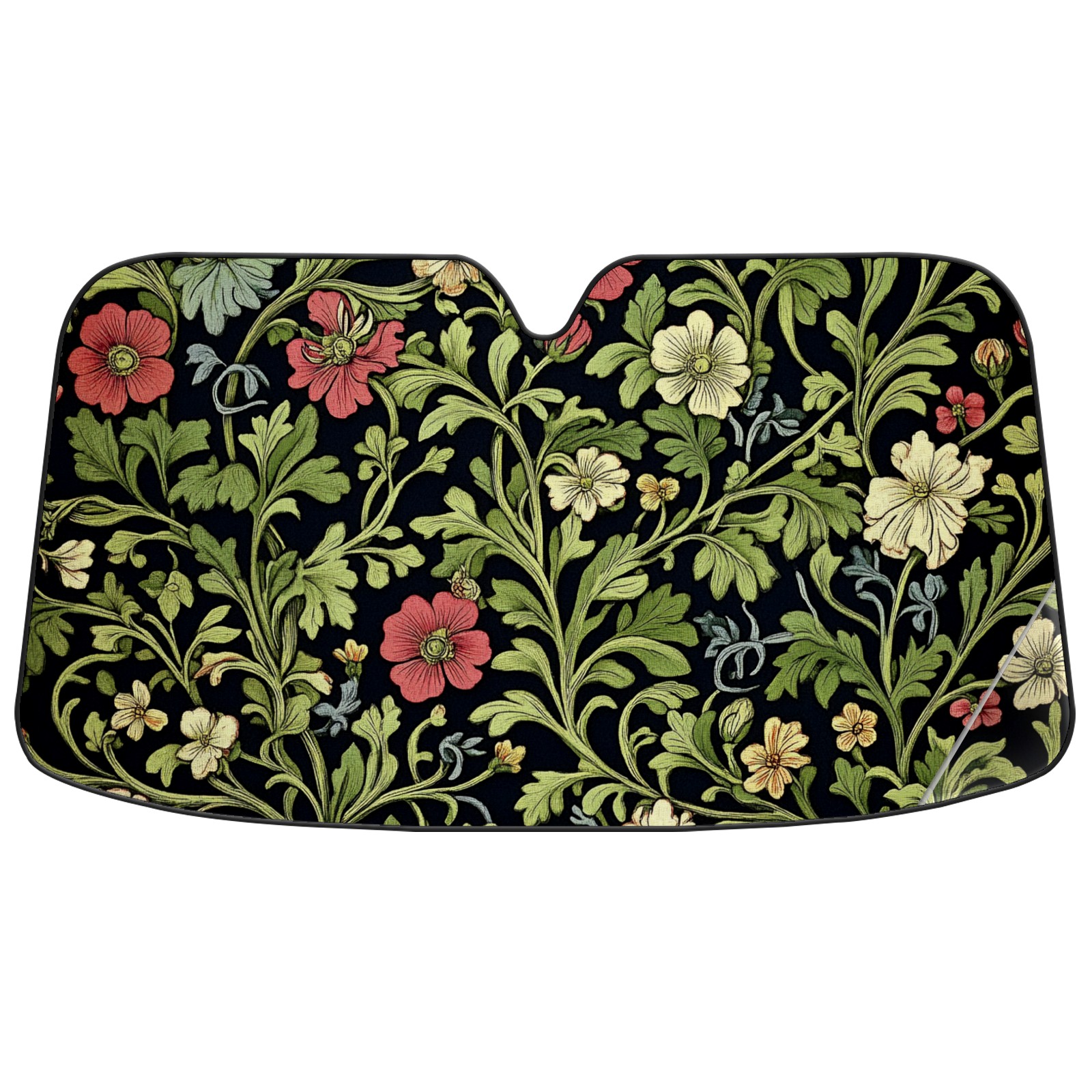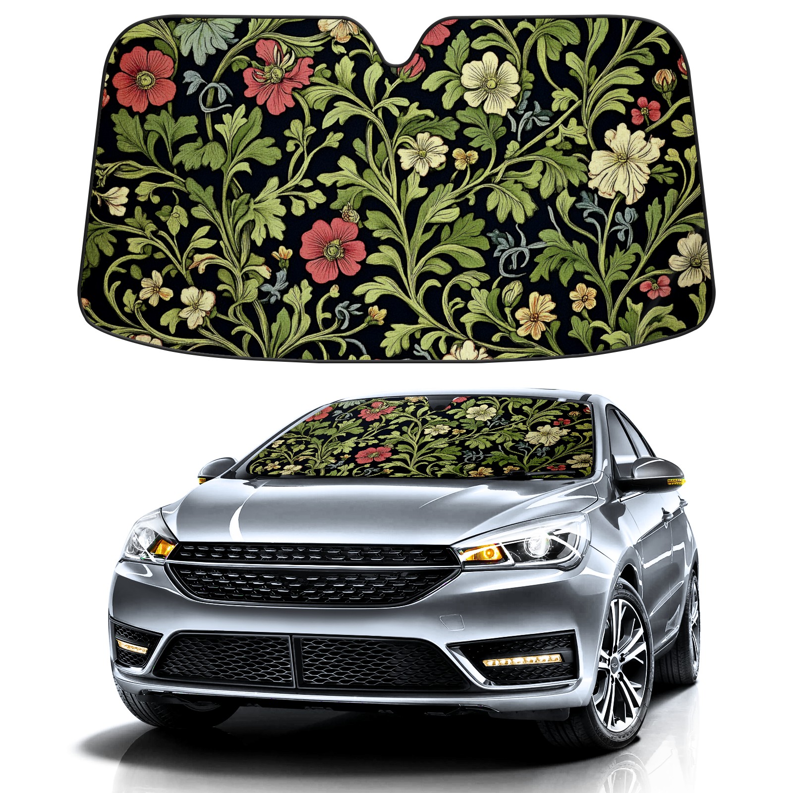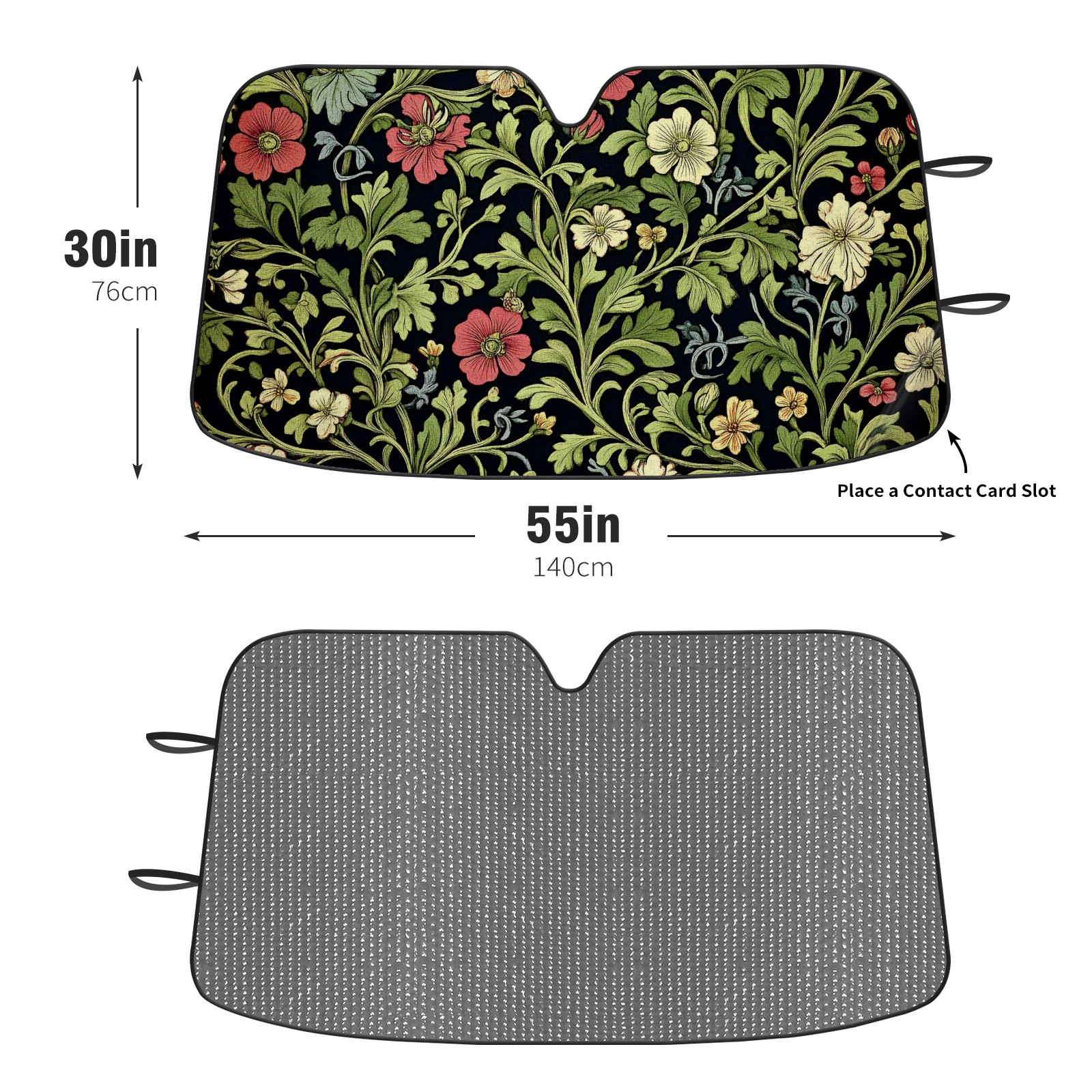 Aluminum Foil Polyester Car Sunshade Pad, Efficient Heat Insulation And Sun Protection ArtifactVintage Red Flowers