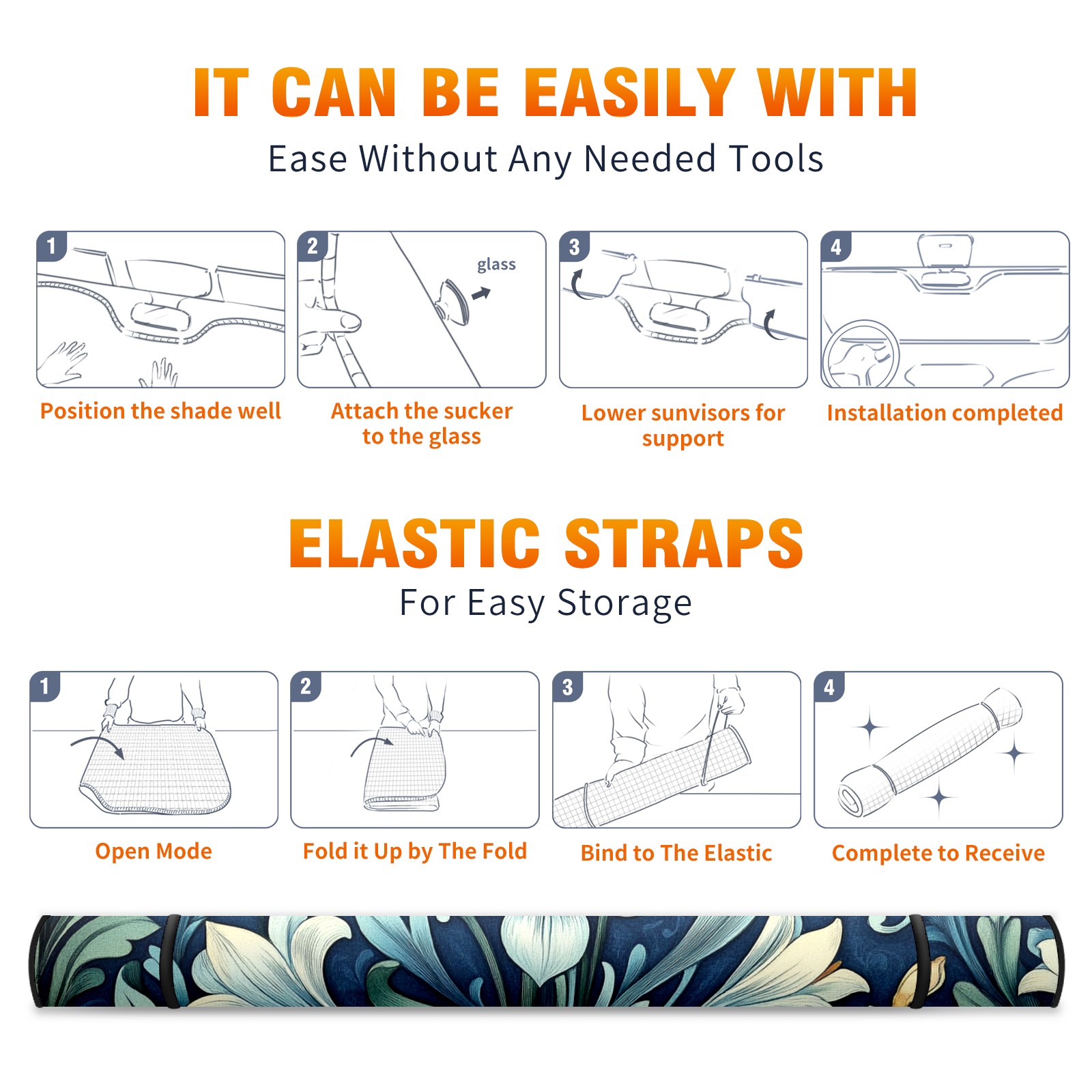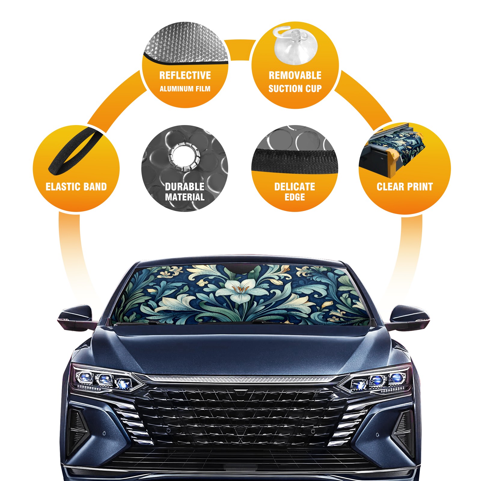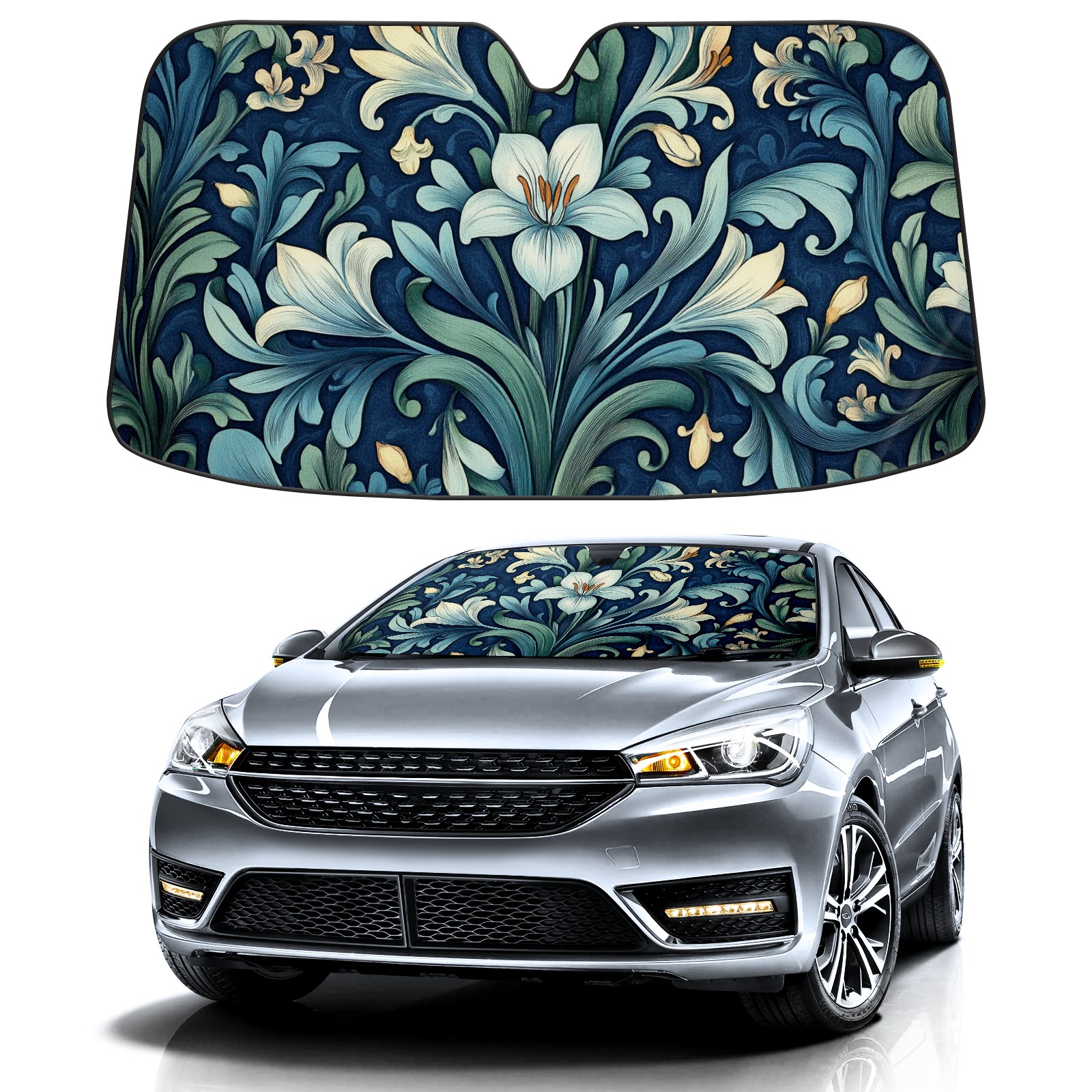 Aluminum Foil Polyester Car Sunshade Pad, Efficient Heat Insulation And Sun Protection ArtifactVintage Flowers