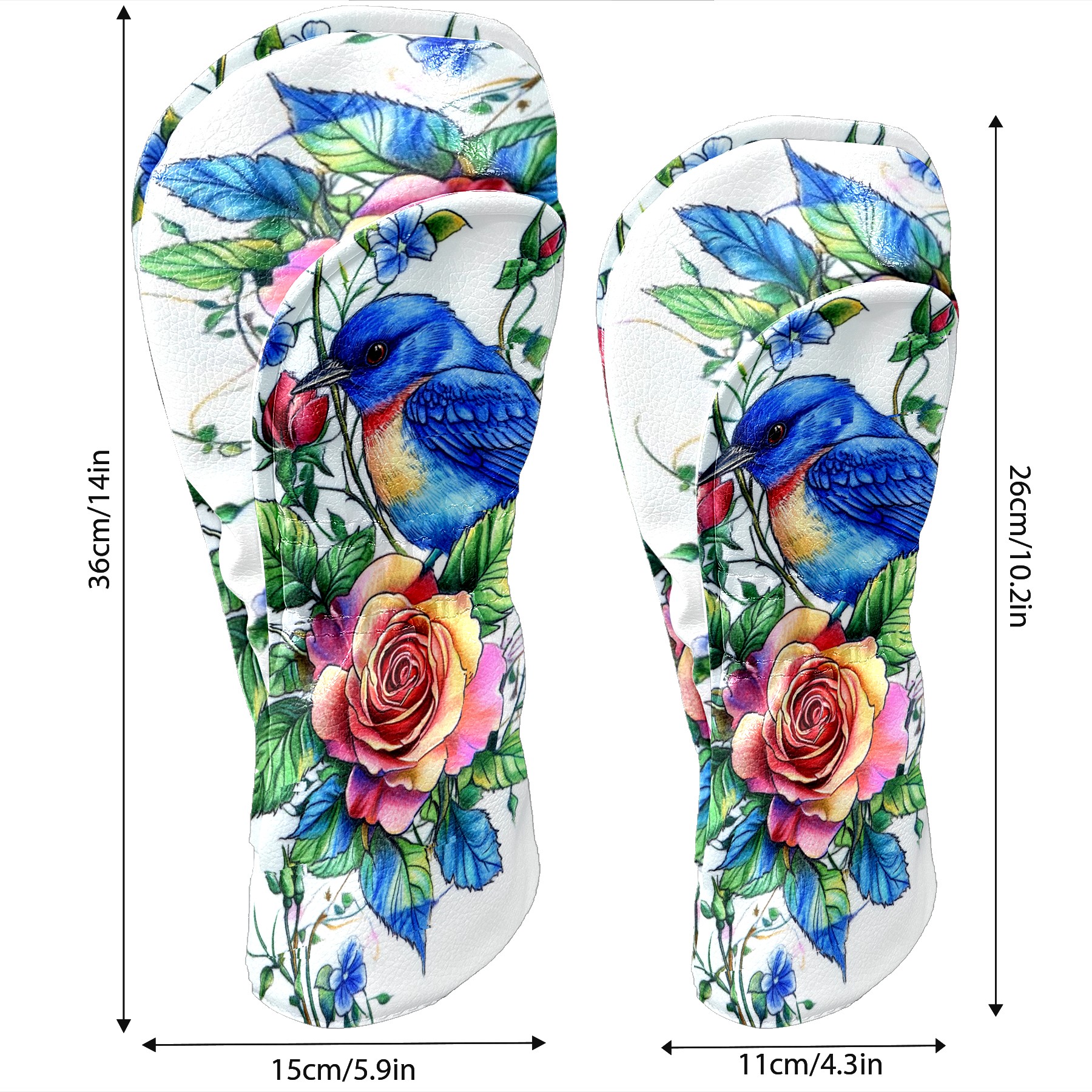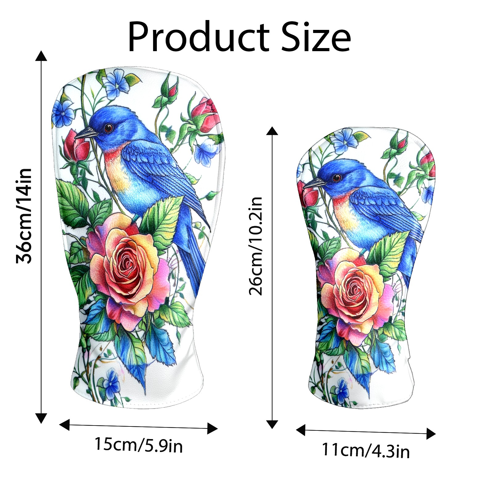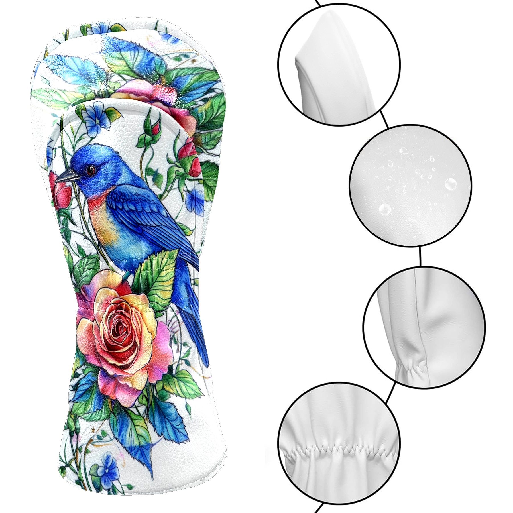 Golf Club Head Cover Premium Leather Driver Headcover, Golf Head Covers for Woods and Driver Waterproof Golf Headcovers with Anti-Scratch Lining for Men Women (Blue Bird Floral)