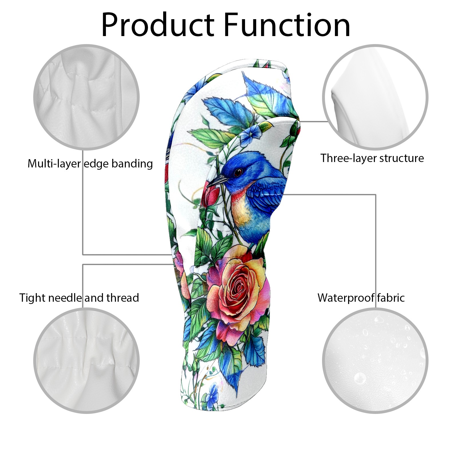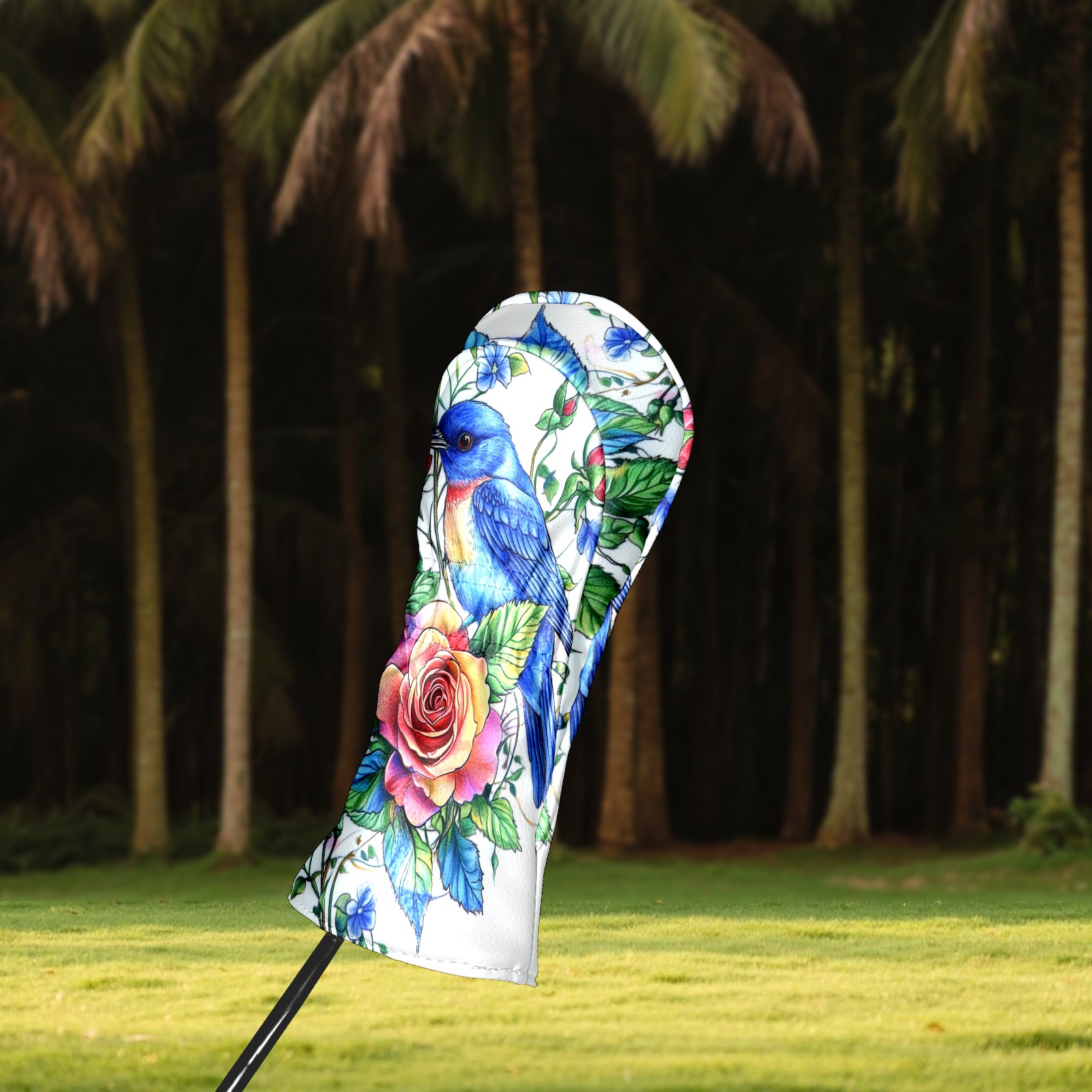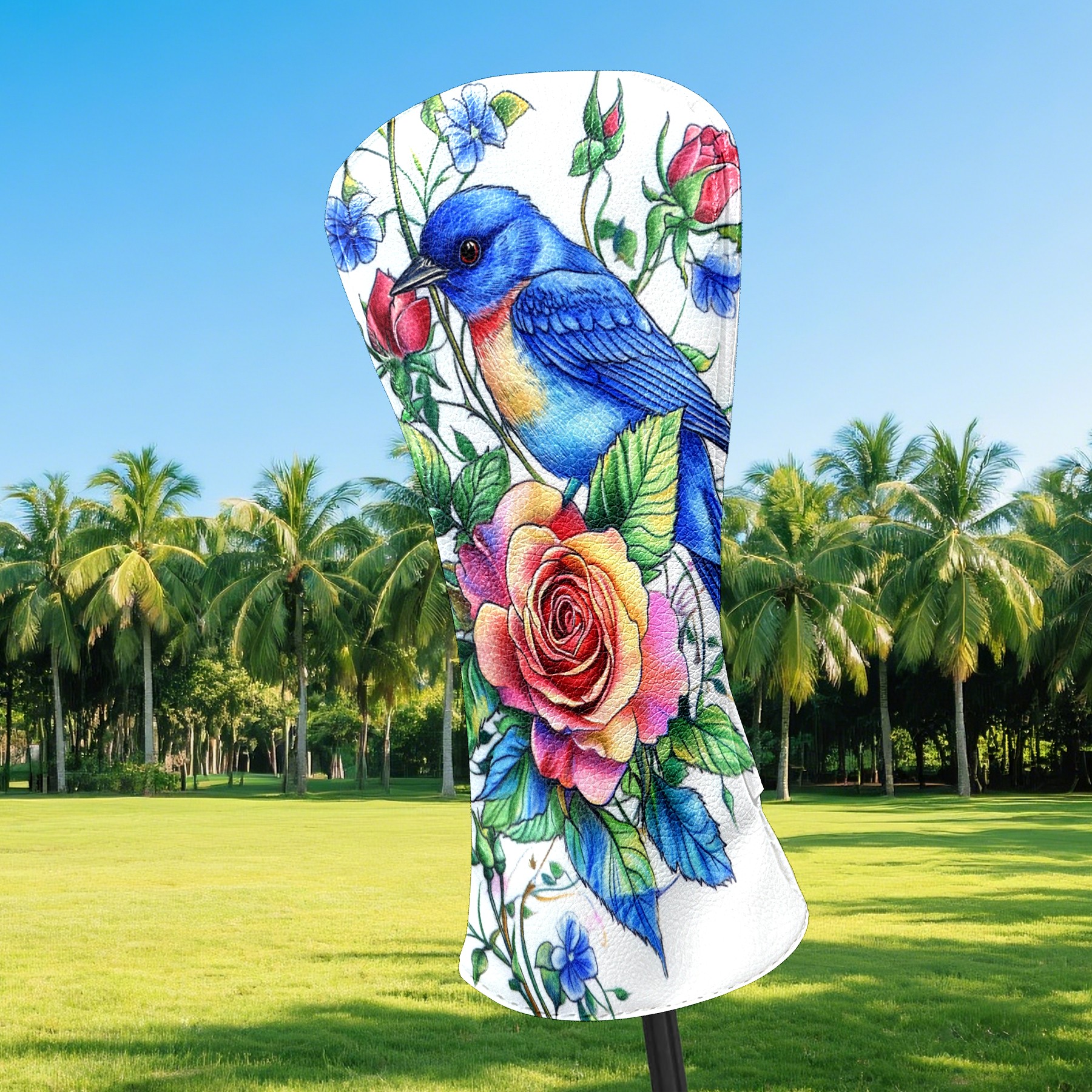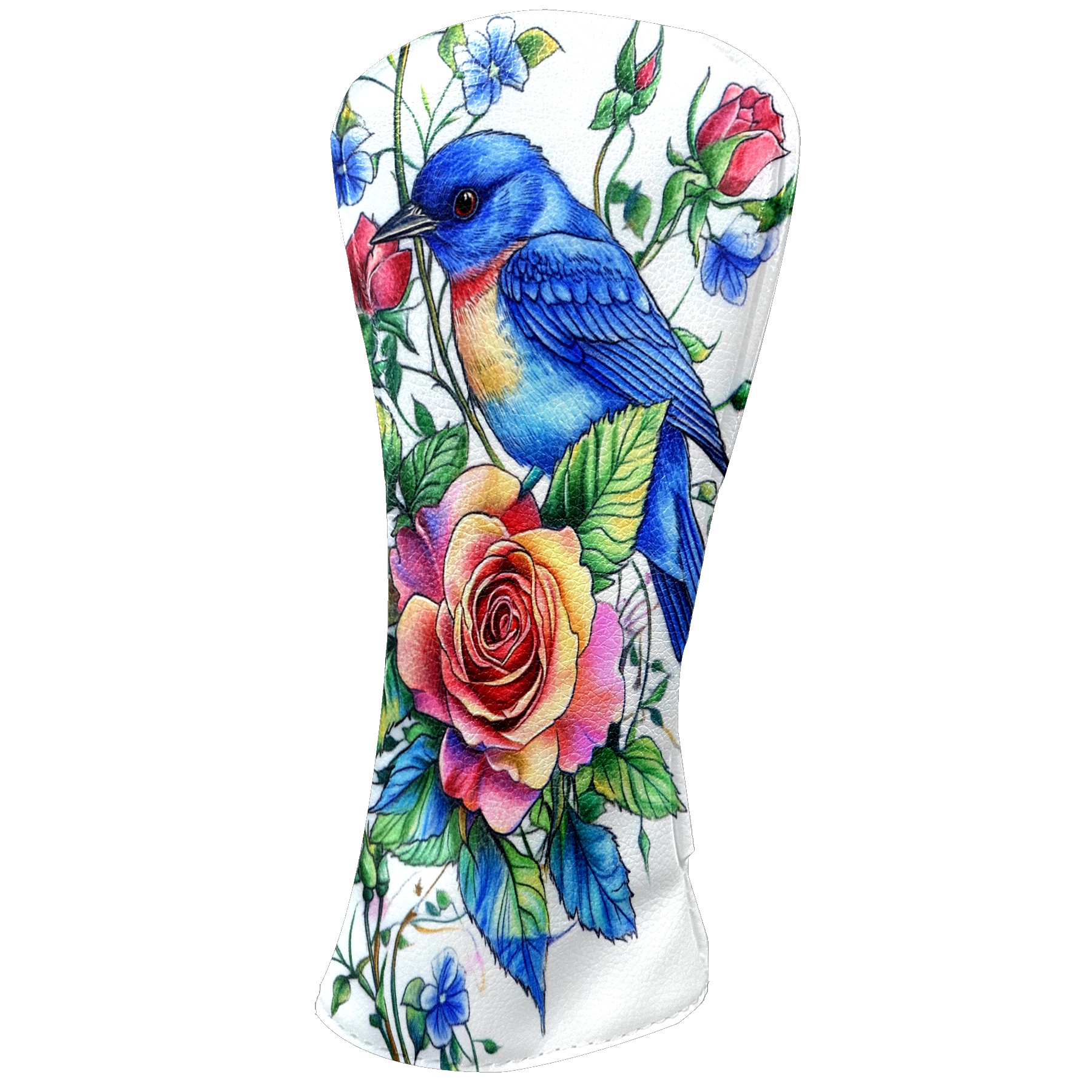 Golf Club Head Cover Premium Leather Driver Headcover, Golf Head Covers for Woods and Driver Waterproof Golf Headcovers with Anti-Scratch Lining for Men Women (Blue Bird Floral)