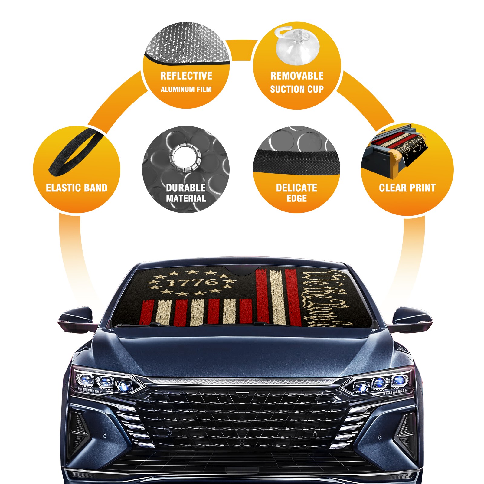 <p>This car sunshade pad is made of a high-quality combination of aluminum foil and polyester, reinforced with transparent adhesive. It measures 140x76cm (55inx30in) and is a practical choice for protecting your car. Its powerful UV protection function can effectively block harmful light, prevent the car interior from aging due to exposure to sunlight, and maintain the dashboard, steering wheel, and seats in a brand new state.<br></p>