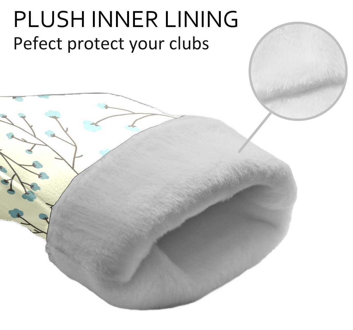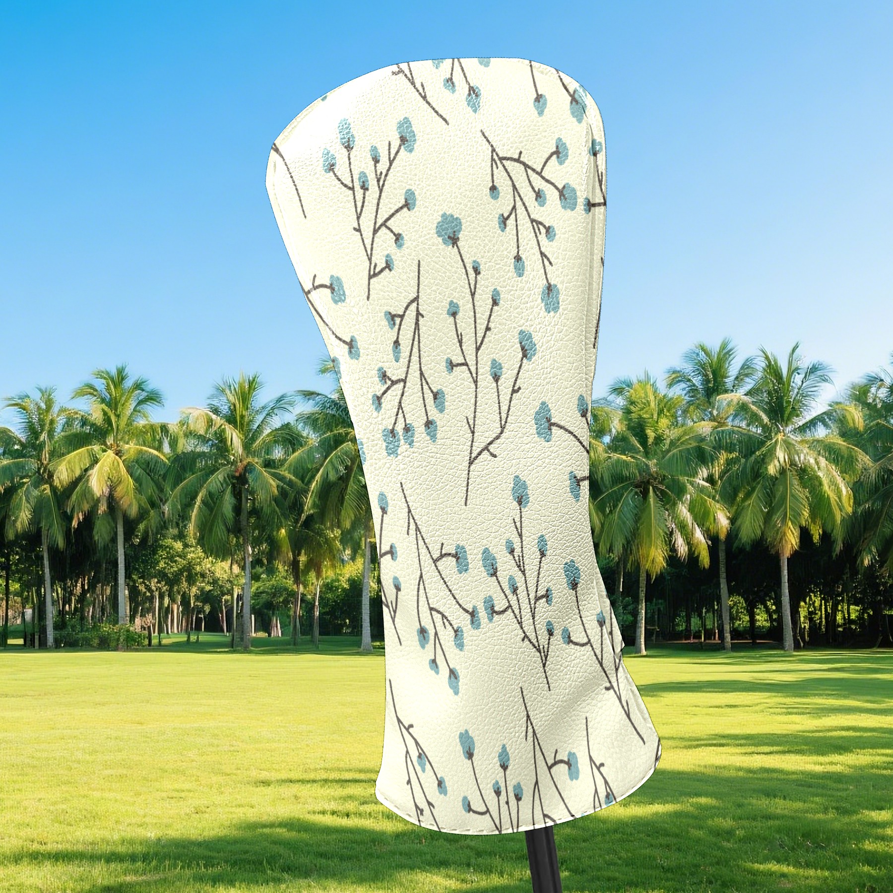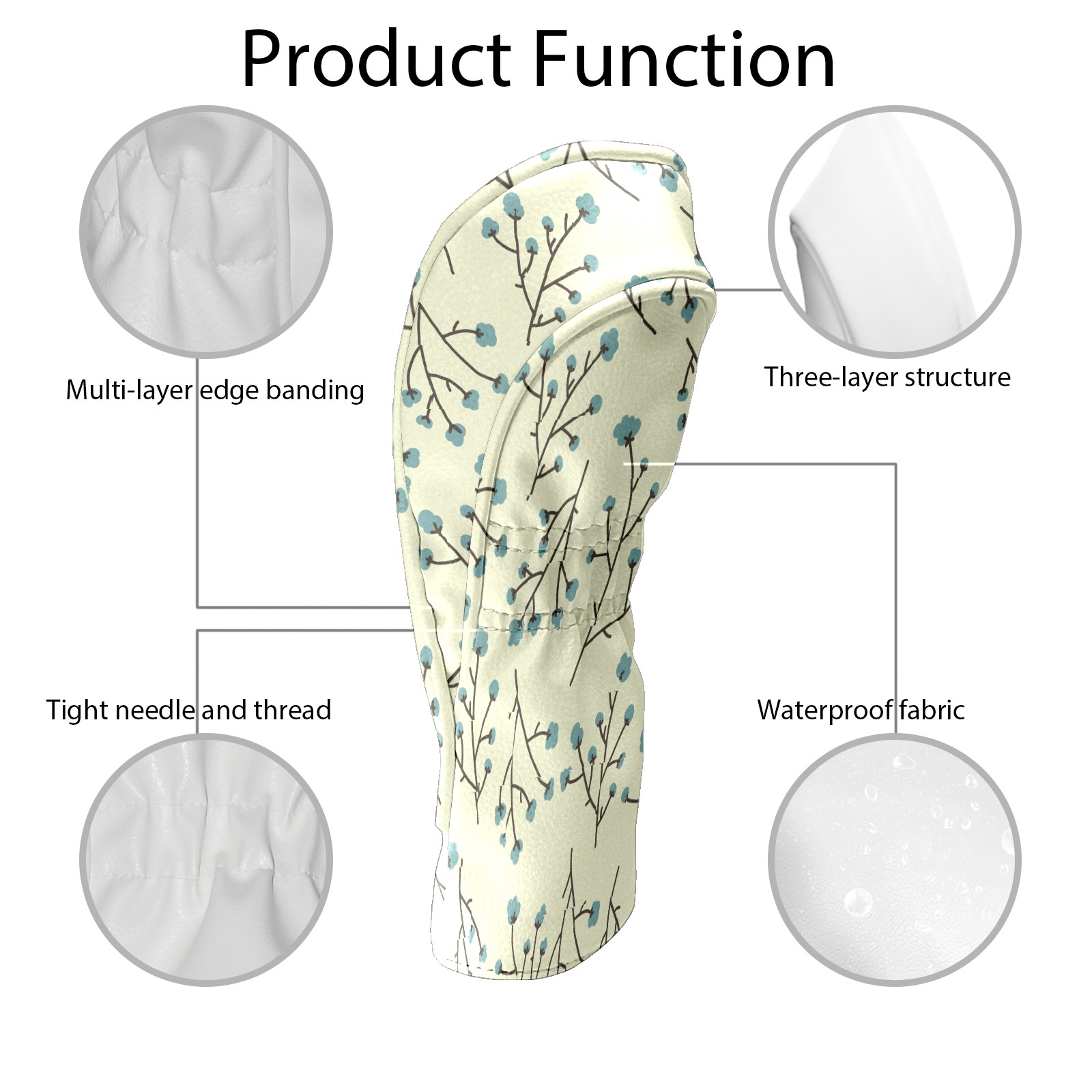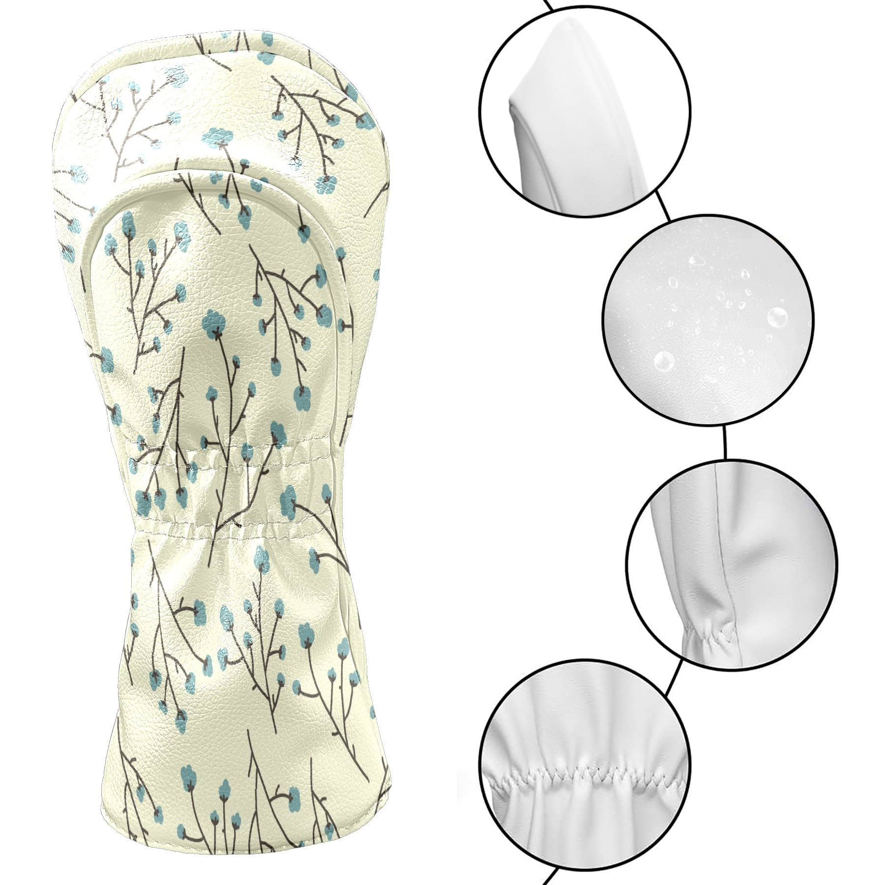 Golf Head Covers Driver Club Head Cover for Drivers Fairway Woods and Hybrid Clubs, PU Leather Golf Club Head Covers for Men and Women Blue & Beige Cotton Flower Pattern