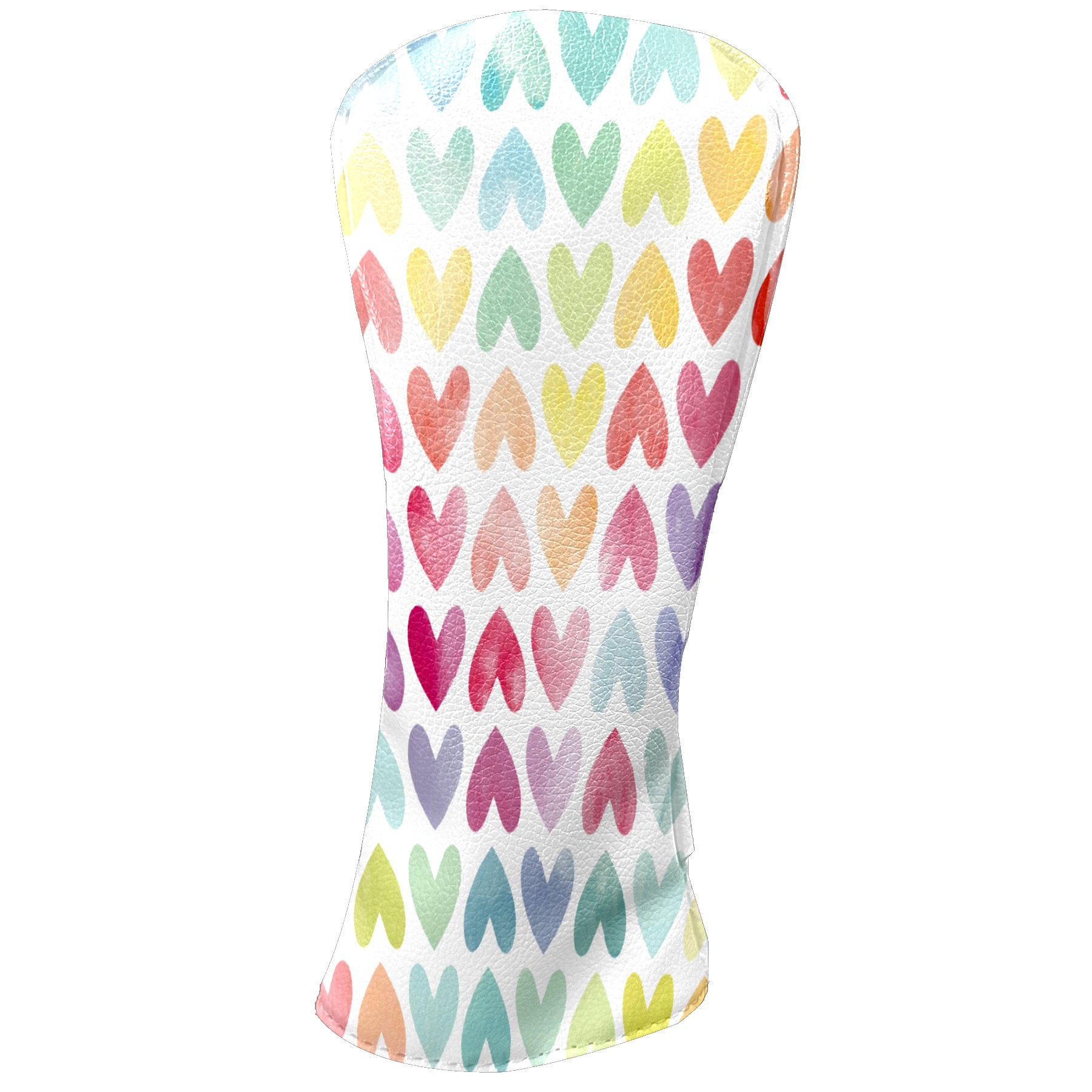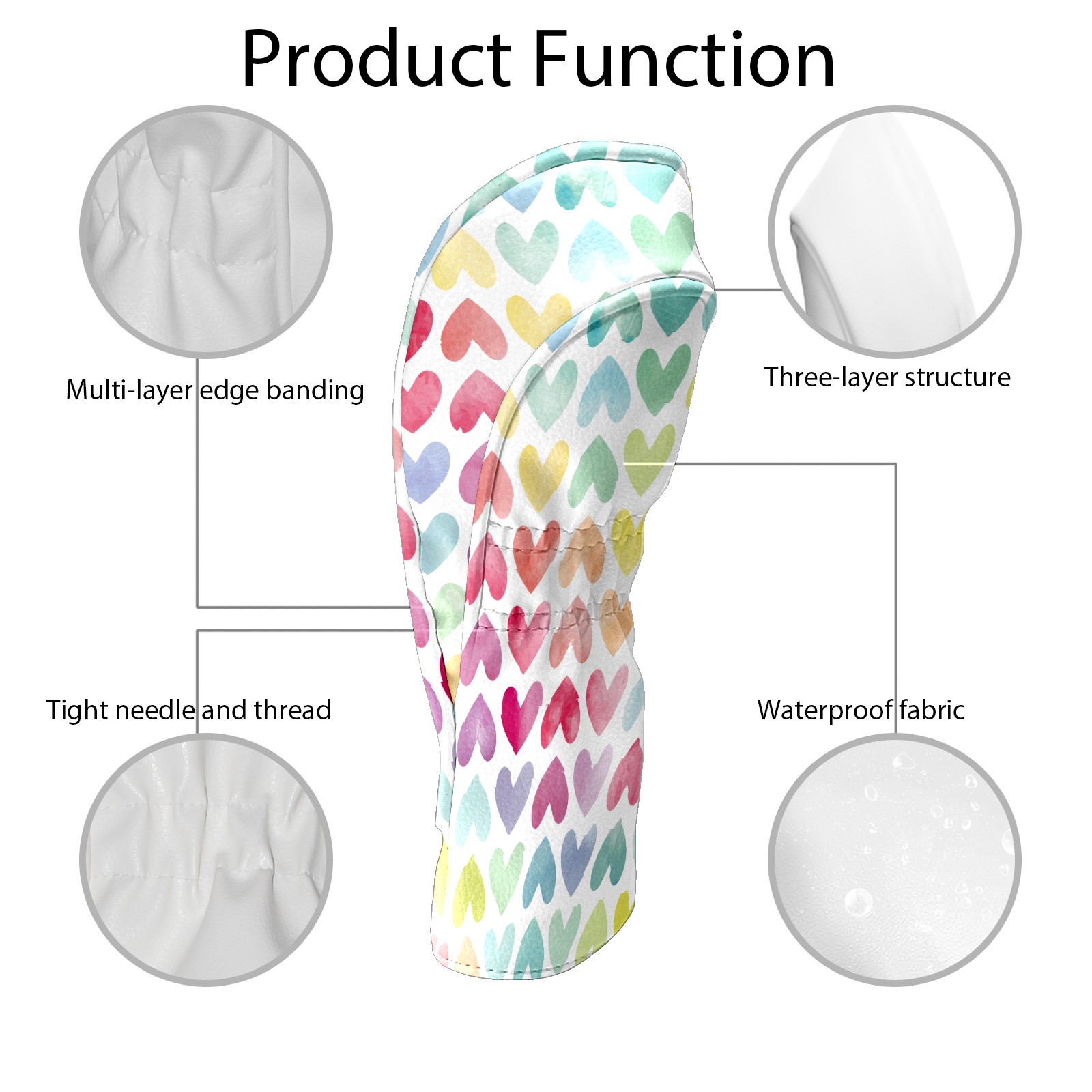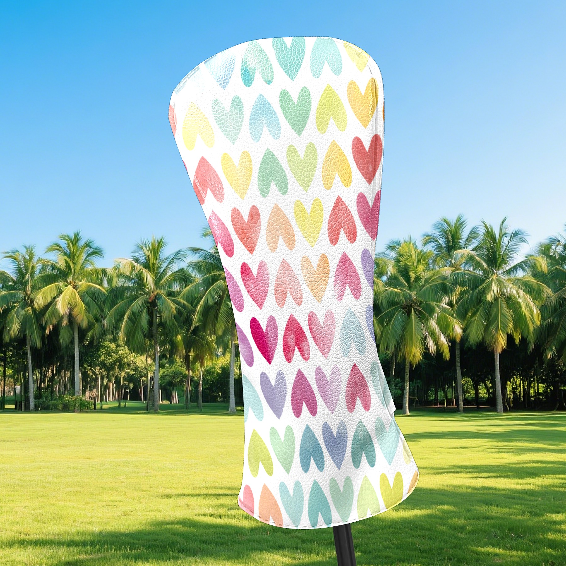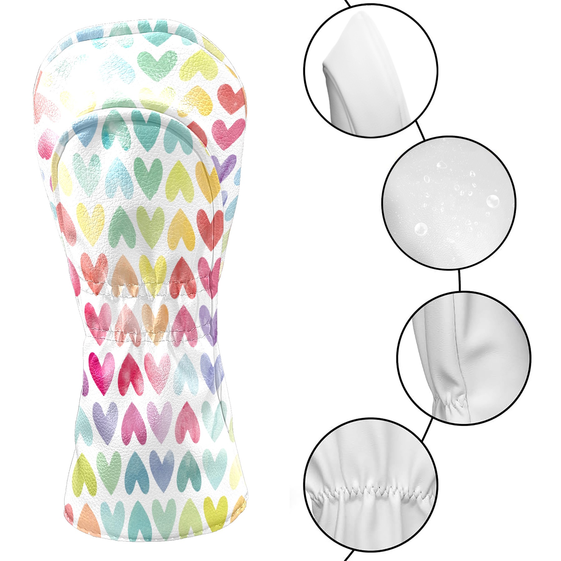 Golf Head Covers Driver Club Head Cover for Drivers Fairway Woods and Hybrid Clubs, PU Leather Golf Club Head Covers for Men and Women Watercolor Hearts Pattern