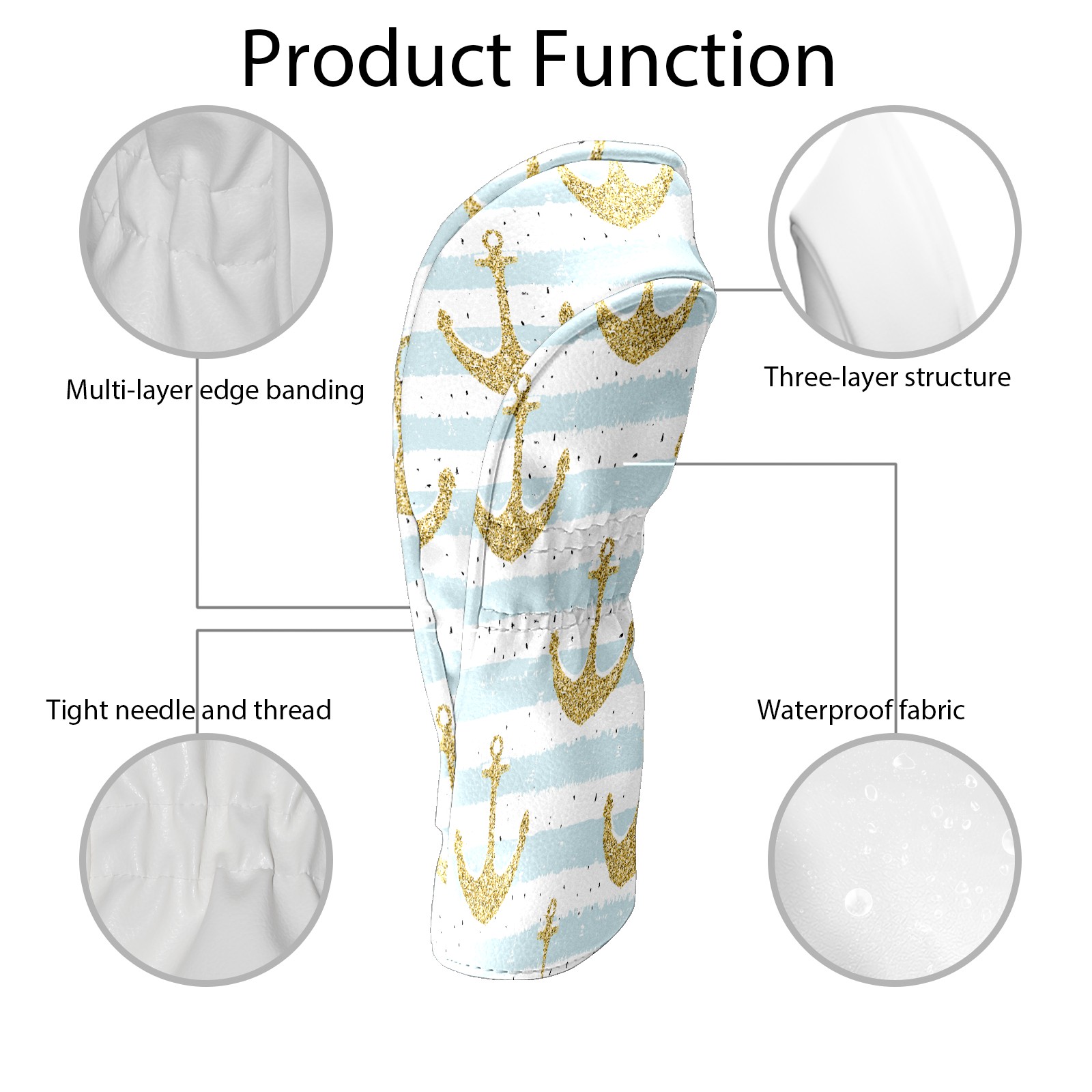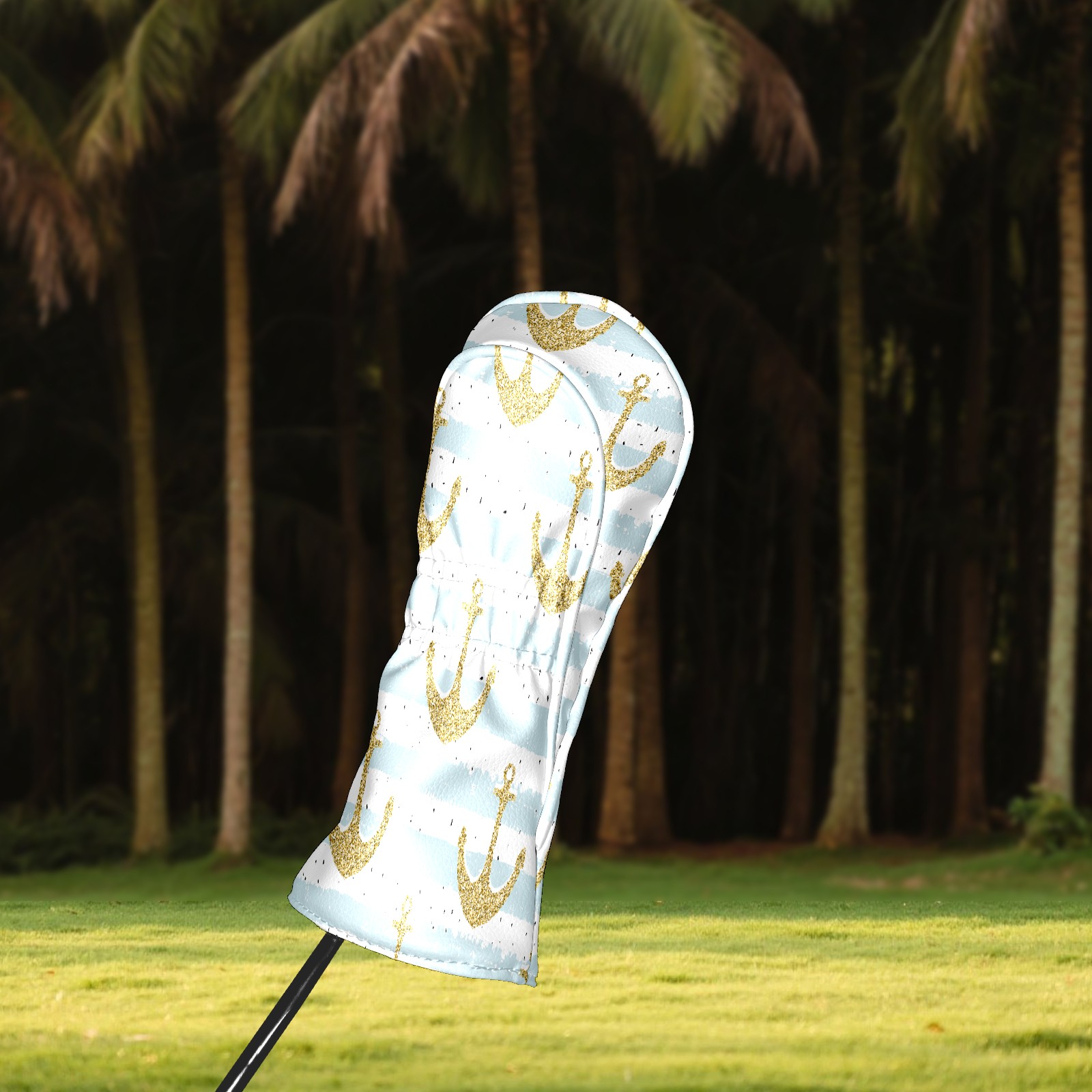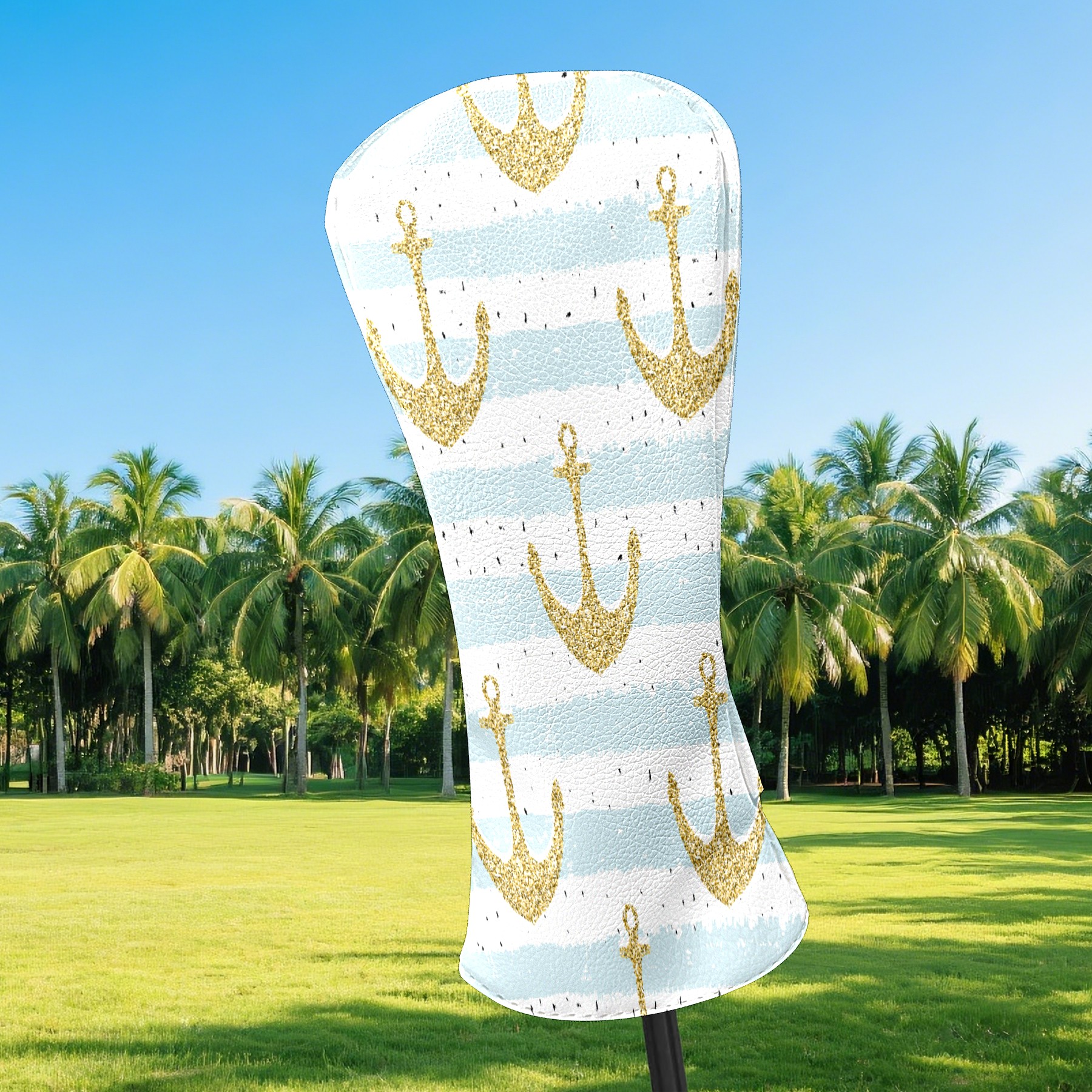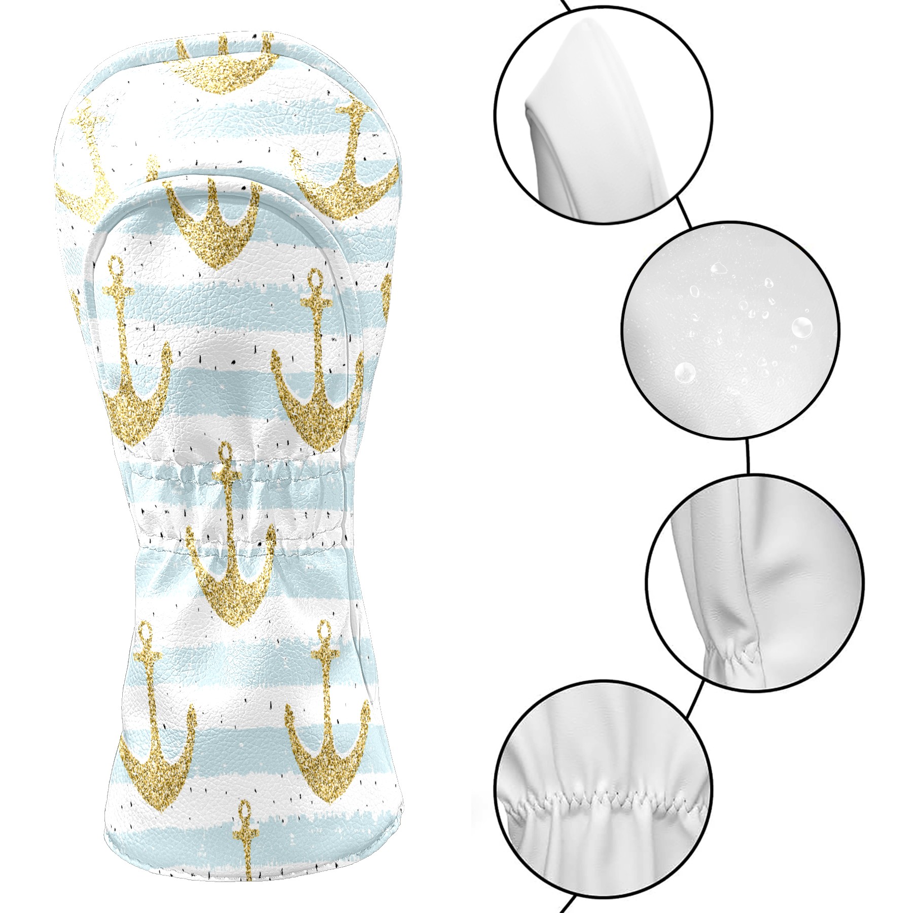 Golf Head Covers Driver Club Head Cover for Drivers Fairway Woods and Hybrid Clubs, PU Leather Golf Club Head Covers for Men and Women Gold Anchor