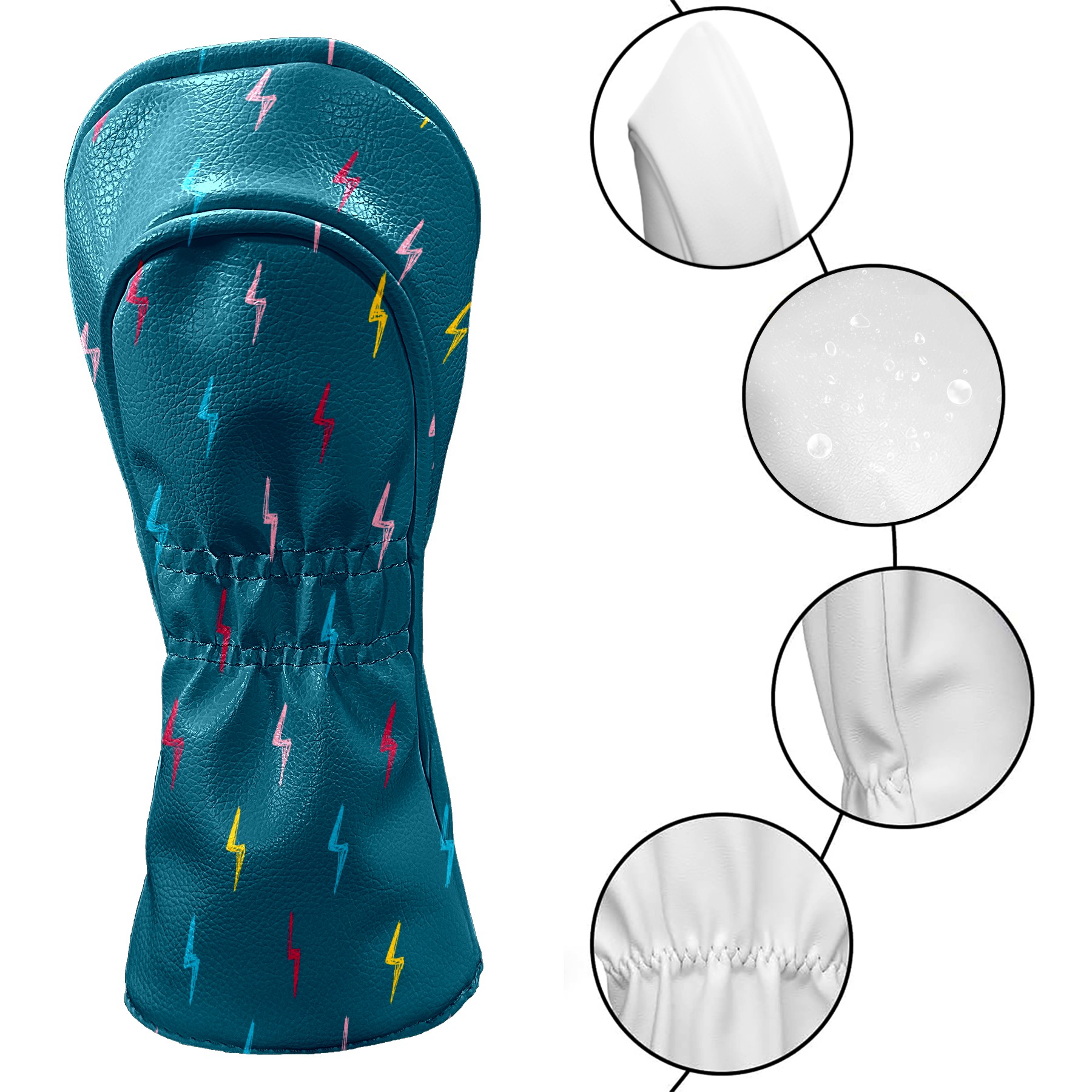 Golf Head Covers Driver Club Head Cover for Drivers Fairway Woods and Hybrid Clubs, PU Leather Golf Club Head Covers for Men and Women Colorful Lightning Pattern