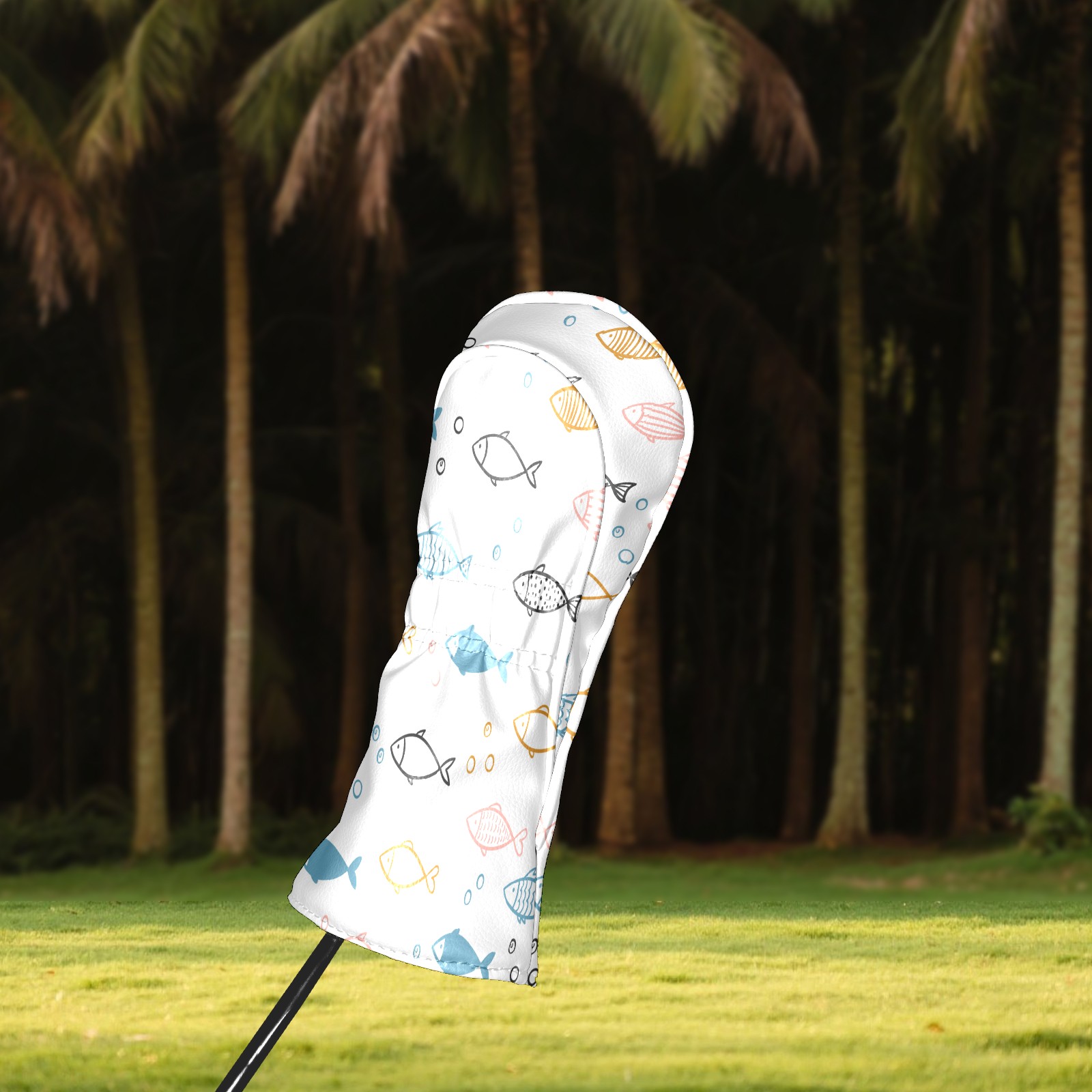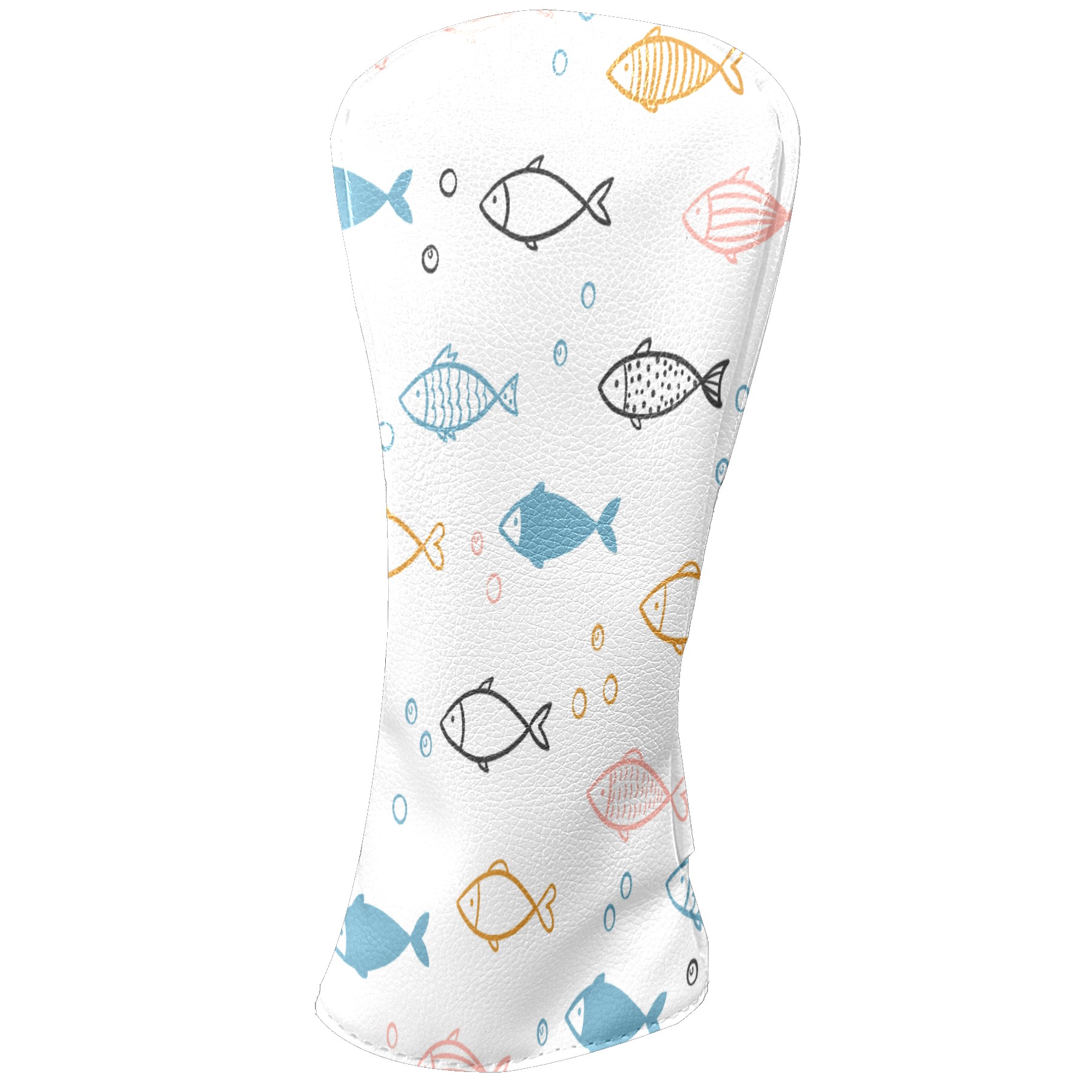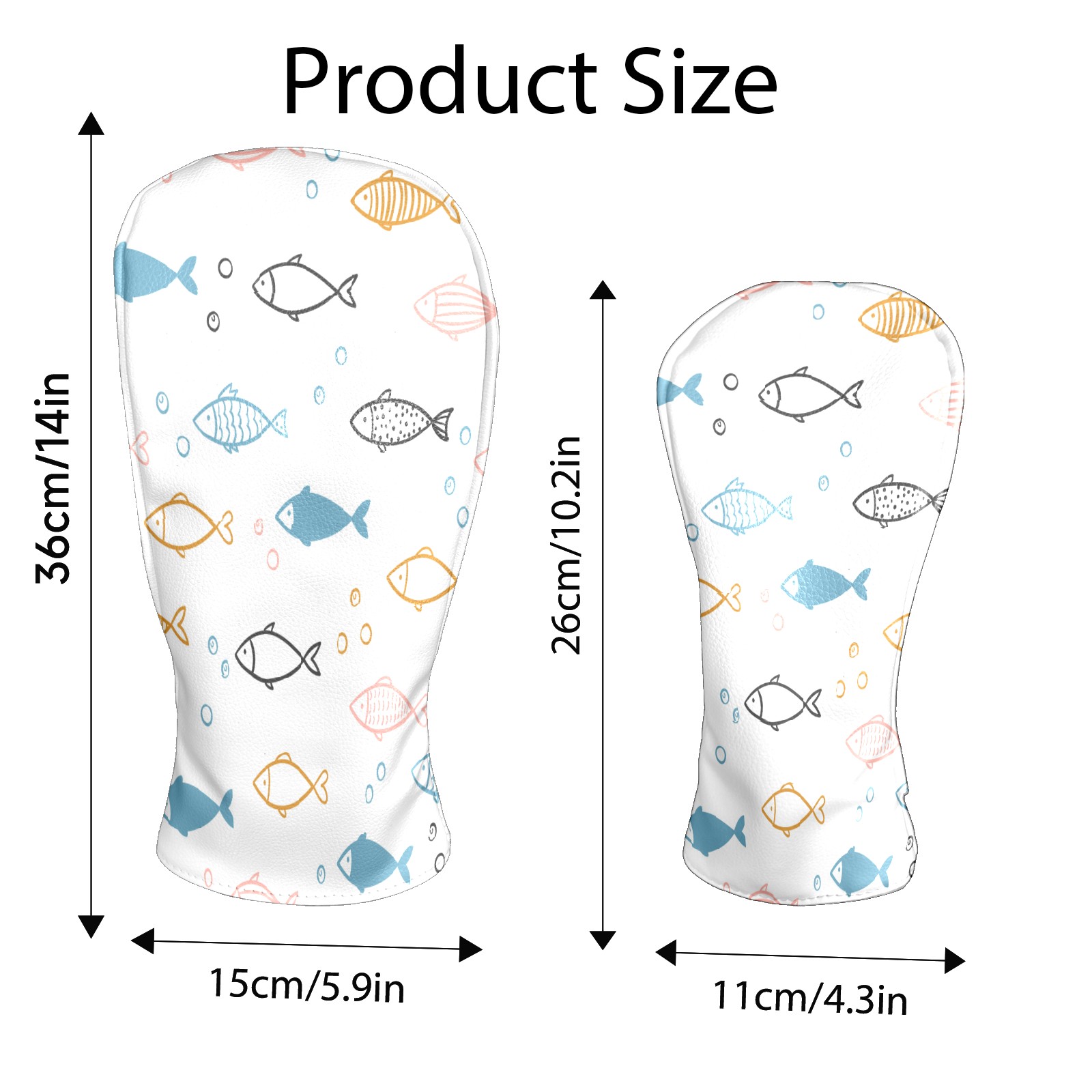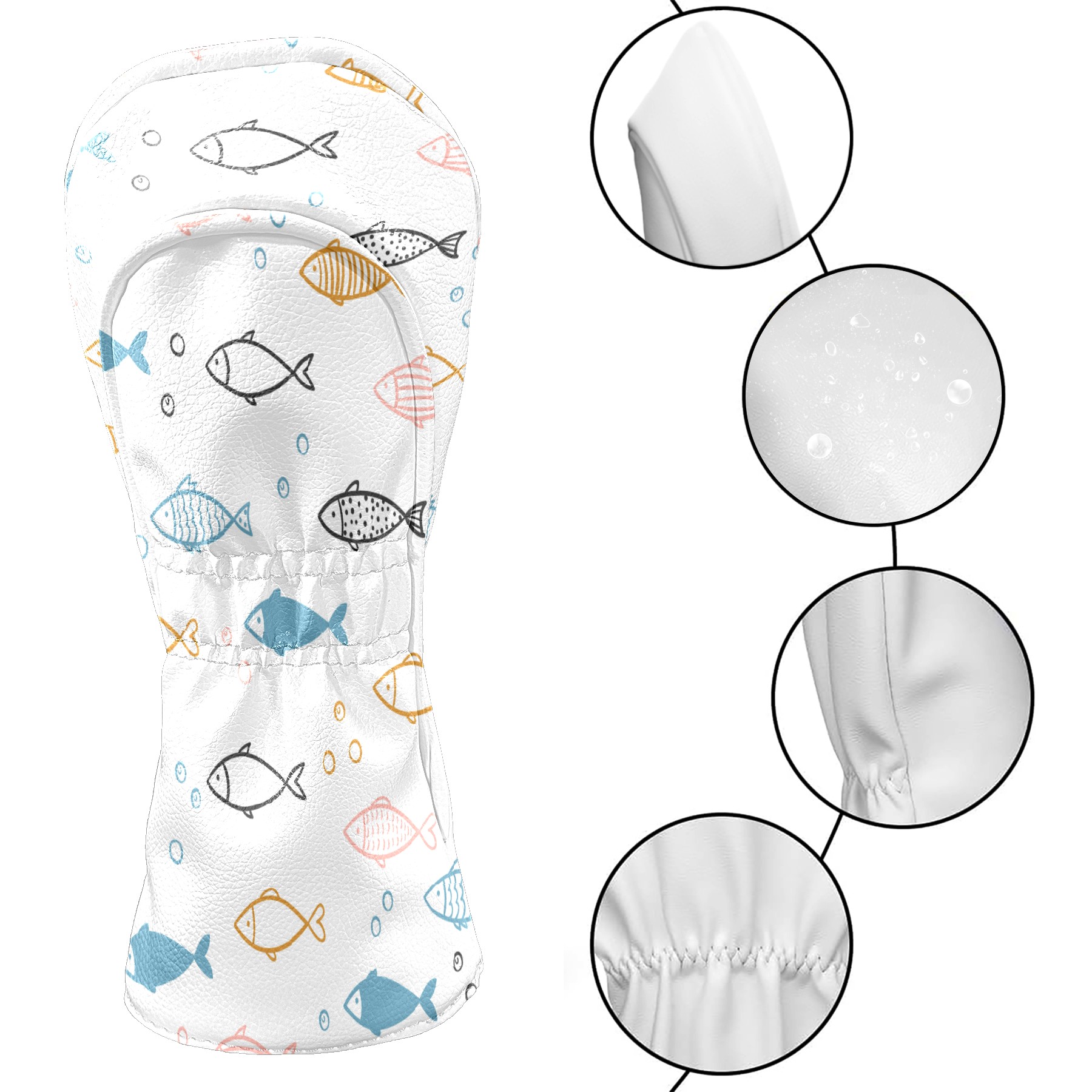 Golf Head Covers Driver Club Head Cover for Drivers Fairway Woods and Hybrid Clubs, PU Leather Golf Club Head Covers for Men and Women Colorful Hand Drawn Fish Pattern