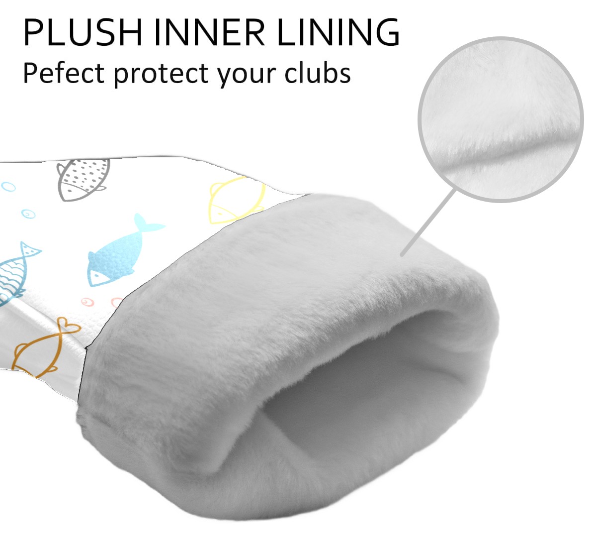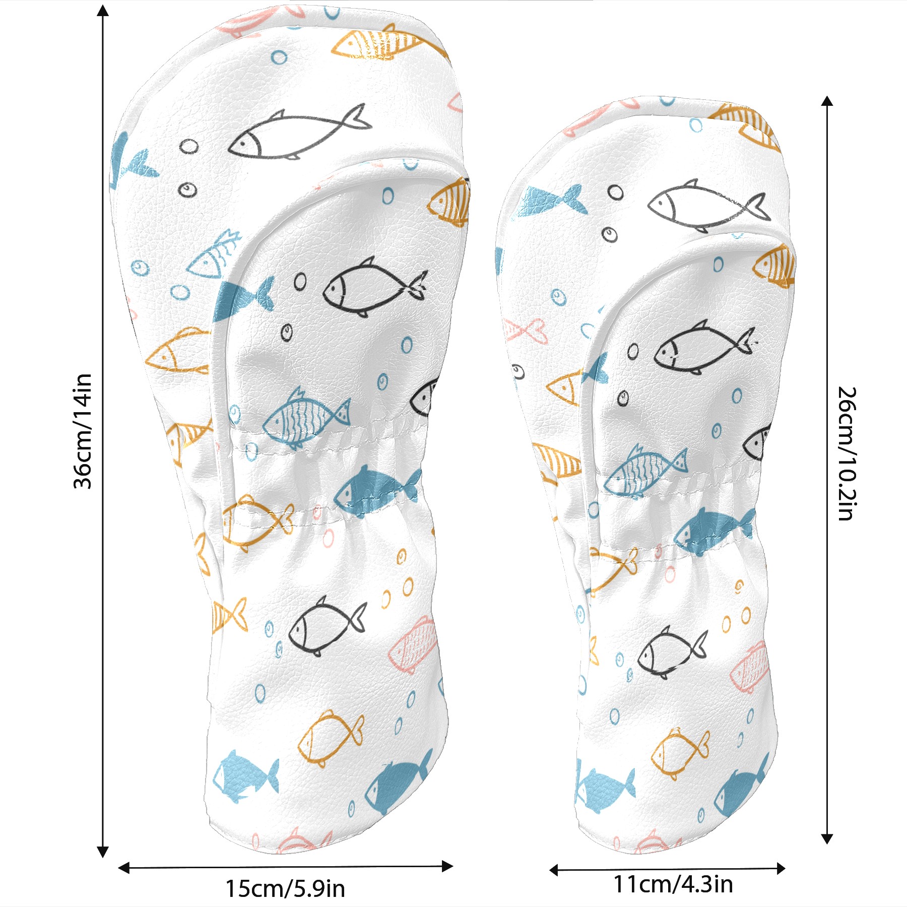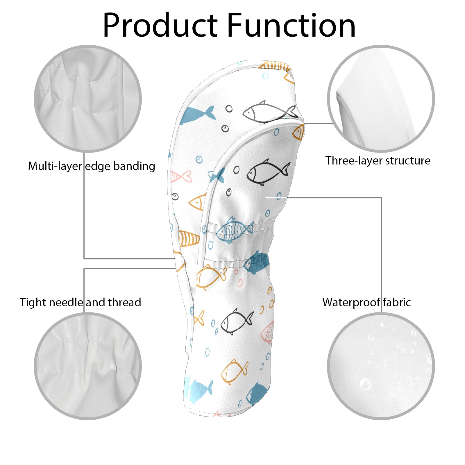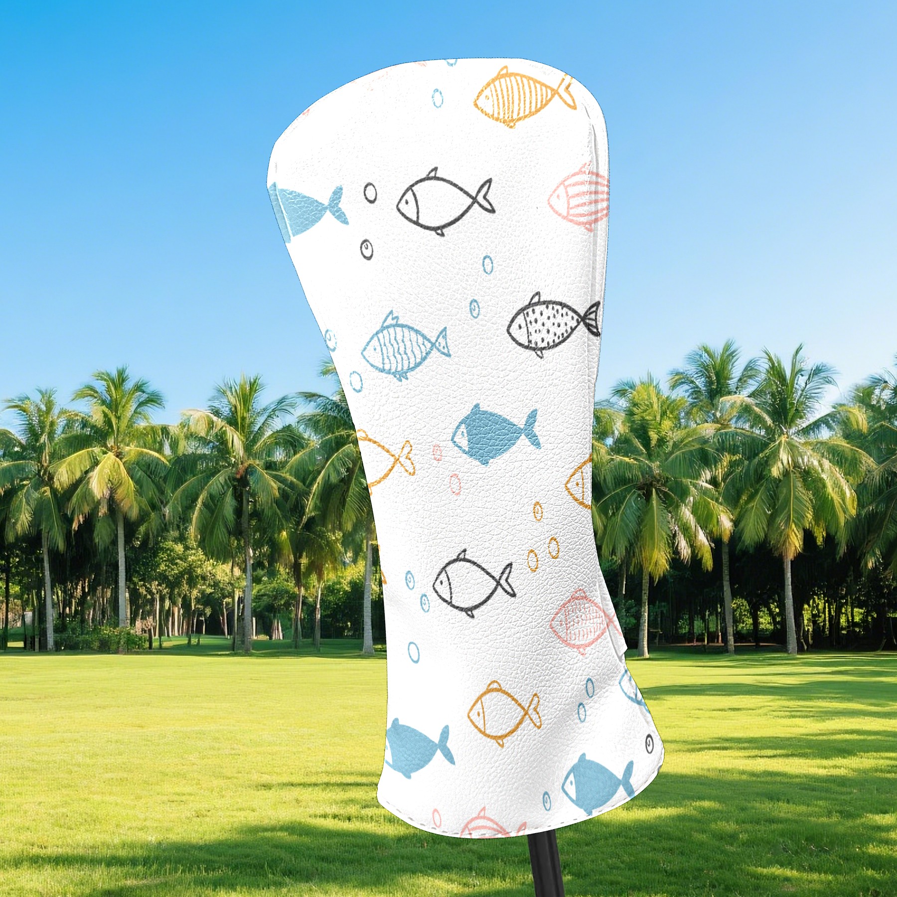 Golf Head Covers Driver Club Head Cover for Drivers Fairway Woods and Hybrid Clubs, PU Leather Golf Club Head Covers for Men and Women Colorful Hand Drawn Fish Pattern