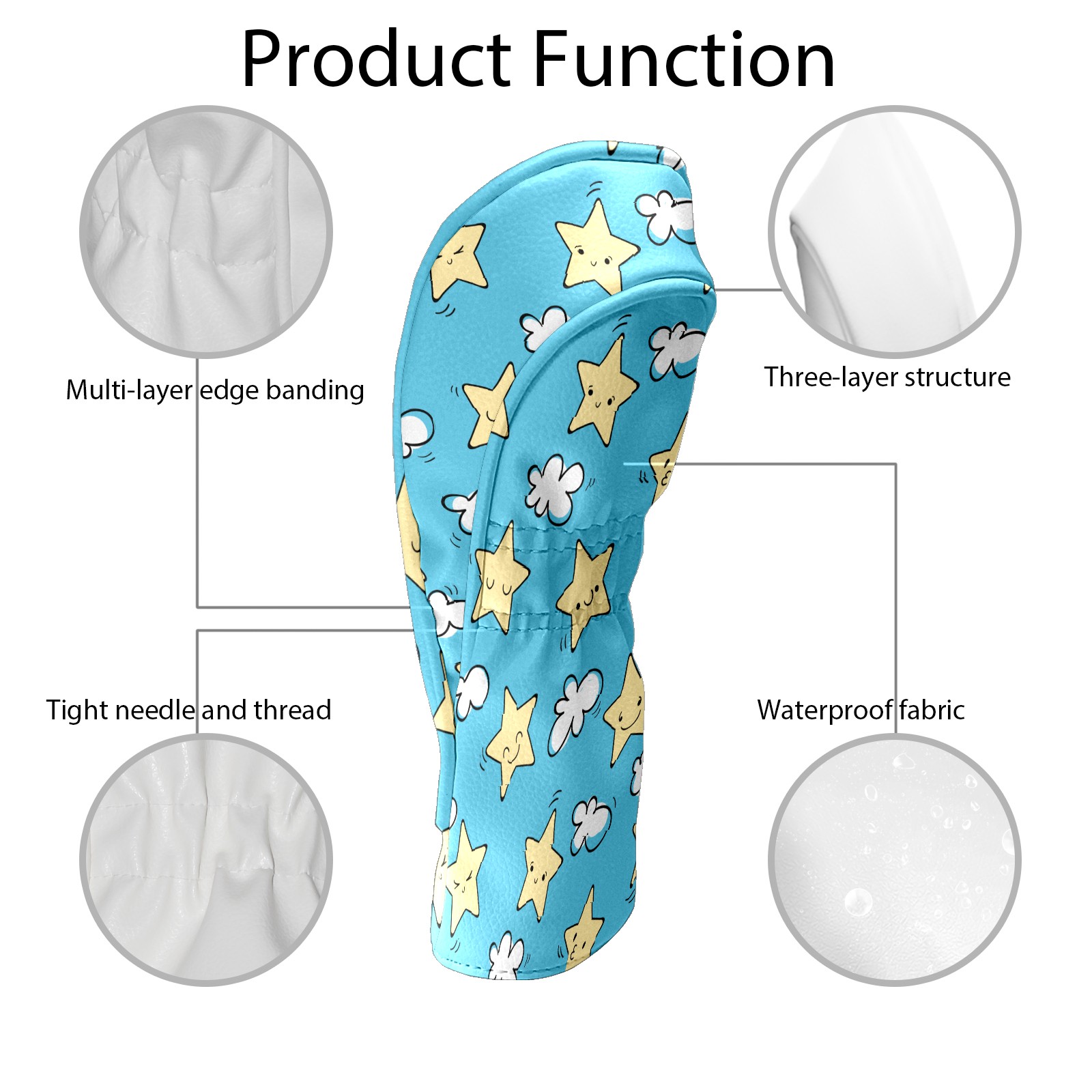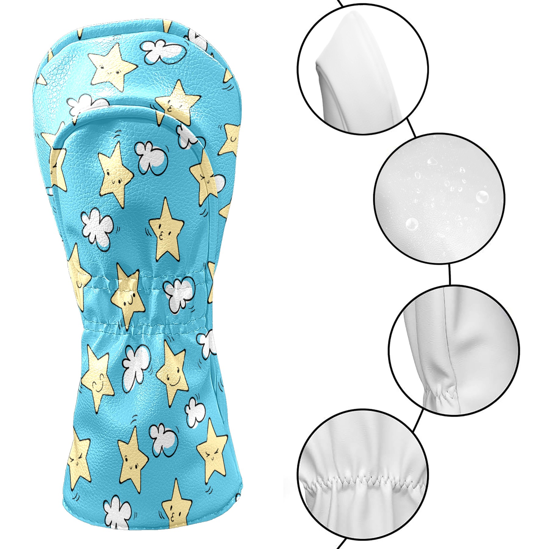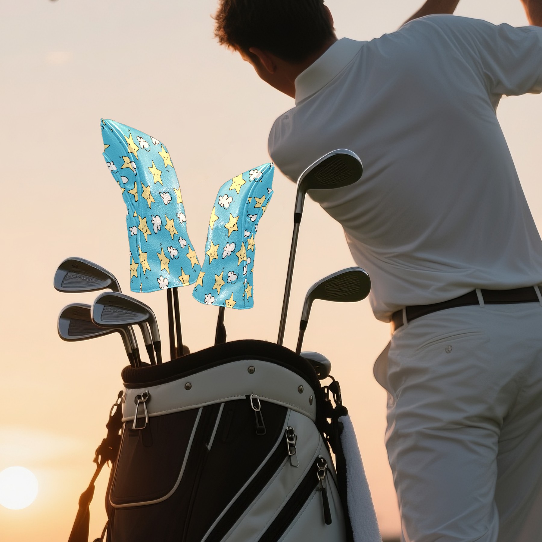 Golf Head Covers Driver Club Head Cover for Drivers Fairway Woods and Hybrid Clubs, PU Leather Golf Club Head Covers for Men and Women 星 雲 空 かわいい