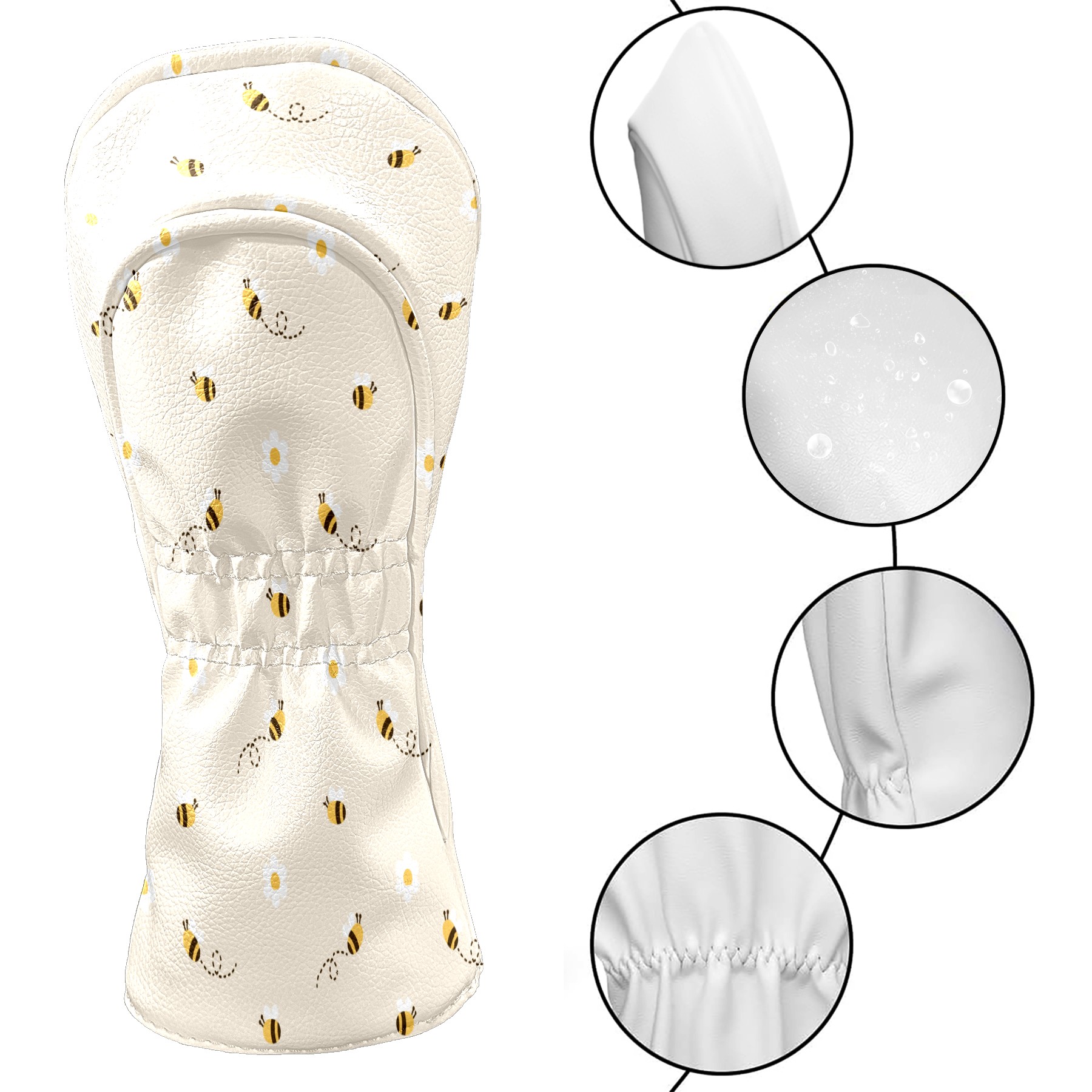 Golf Head Covers Driver Club Head Cover for Drivers Fairway Woods and Hybrid Clubs, PU Leather Golf Club Head Covers for Men and Women Bee Flora