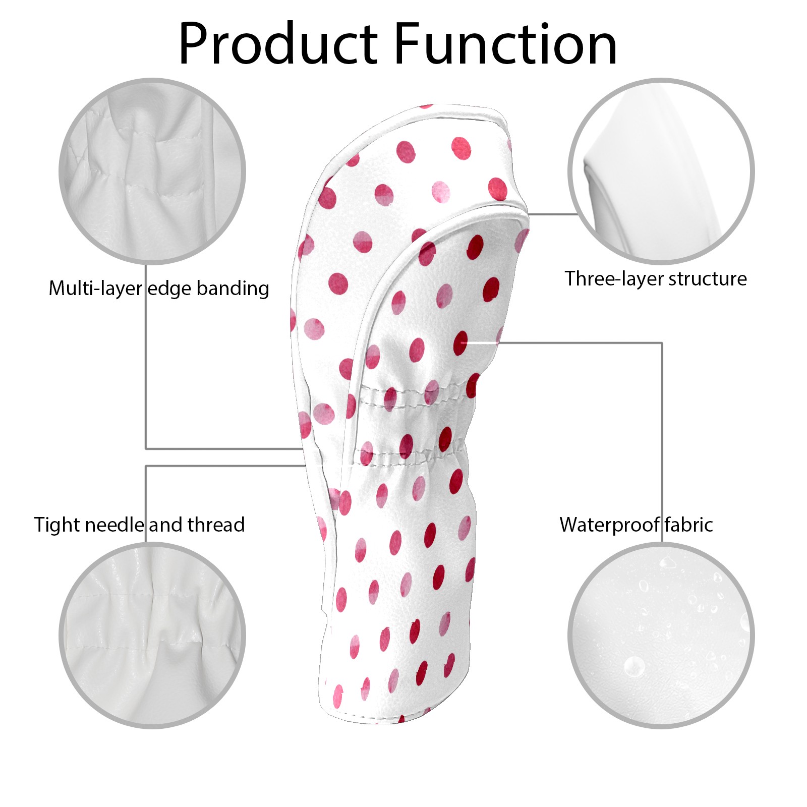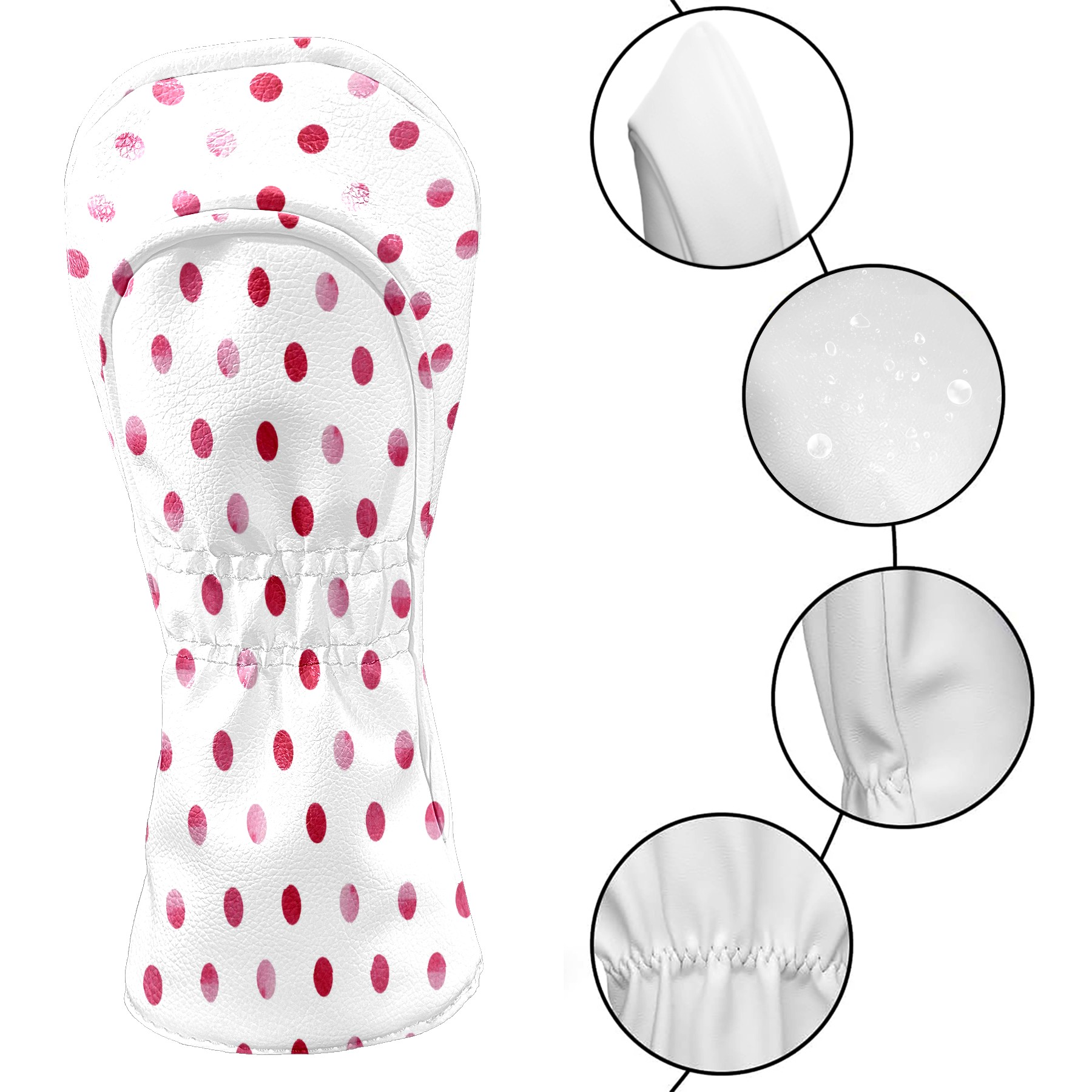 Golf Head Covers Driver Club Head Cover for Drivers Fairway Woods and Hybrid Clubs, PU Leather Golf Club Head Covers for Men and Women Watercolor Polka Dot Pink Red