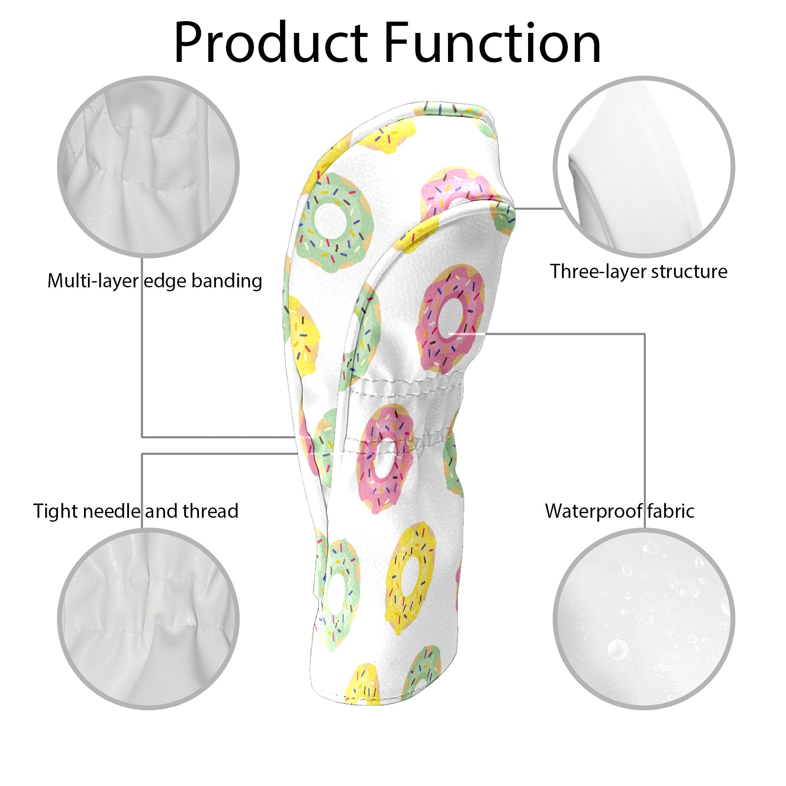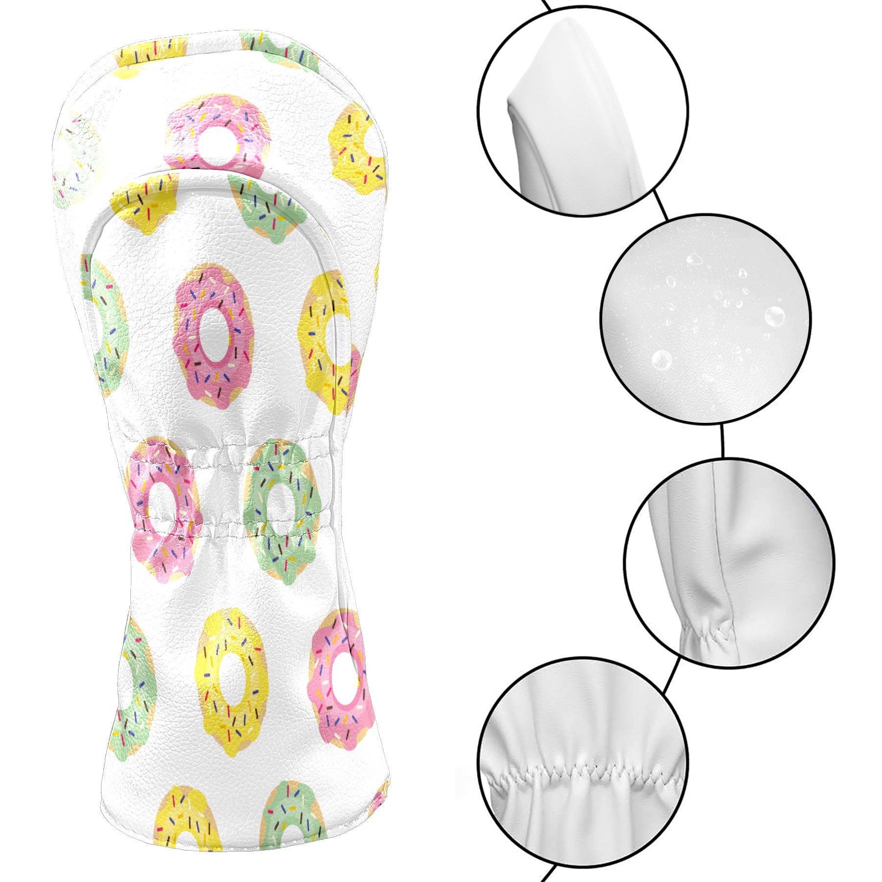 Golf Head Covers Driver Club Head Cover for Drivers Fairway Woods and Hybrid Clubs, PU Leather Golf Club Head Covers for Men and Women Yellow Pink Green Donut Pattern